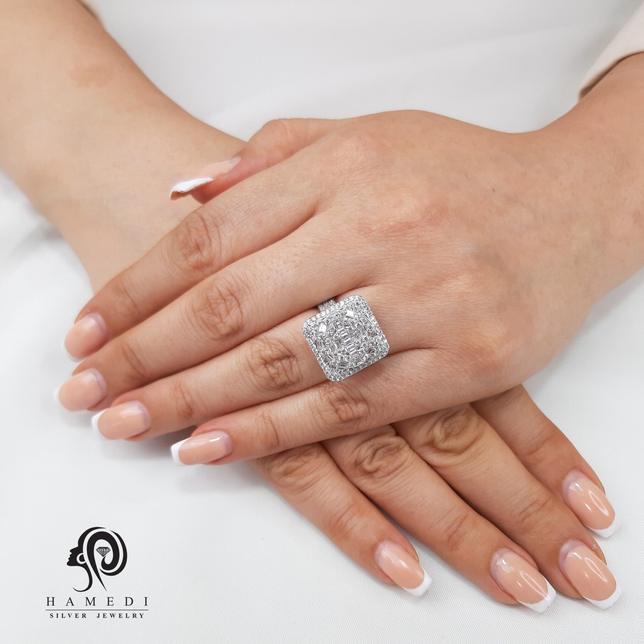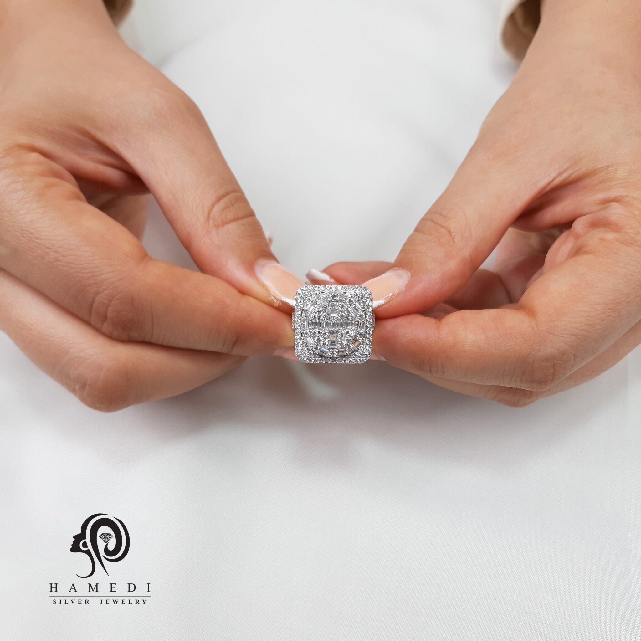 انگشتر نقره زنانه لوکس جدید مدل RIL E33 یکی از لوکس ترین و پرطرفدار ترین انگشتر های مجلسی گالری حامدی است.