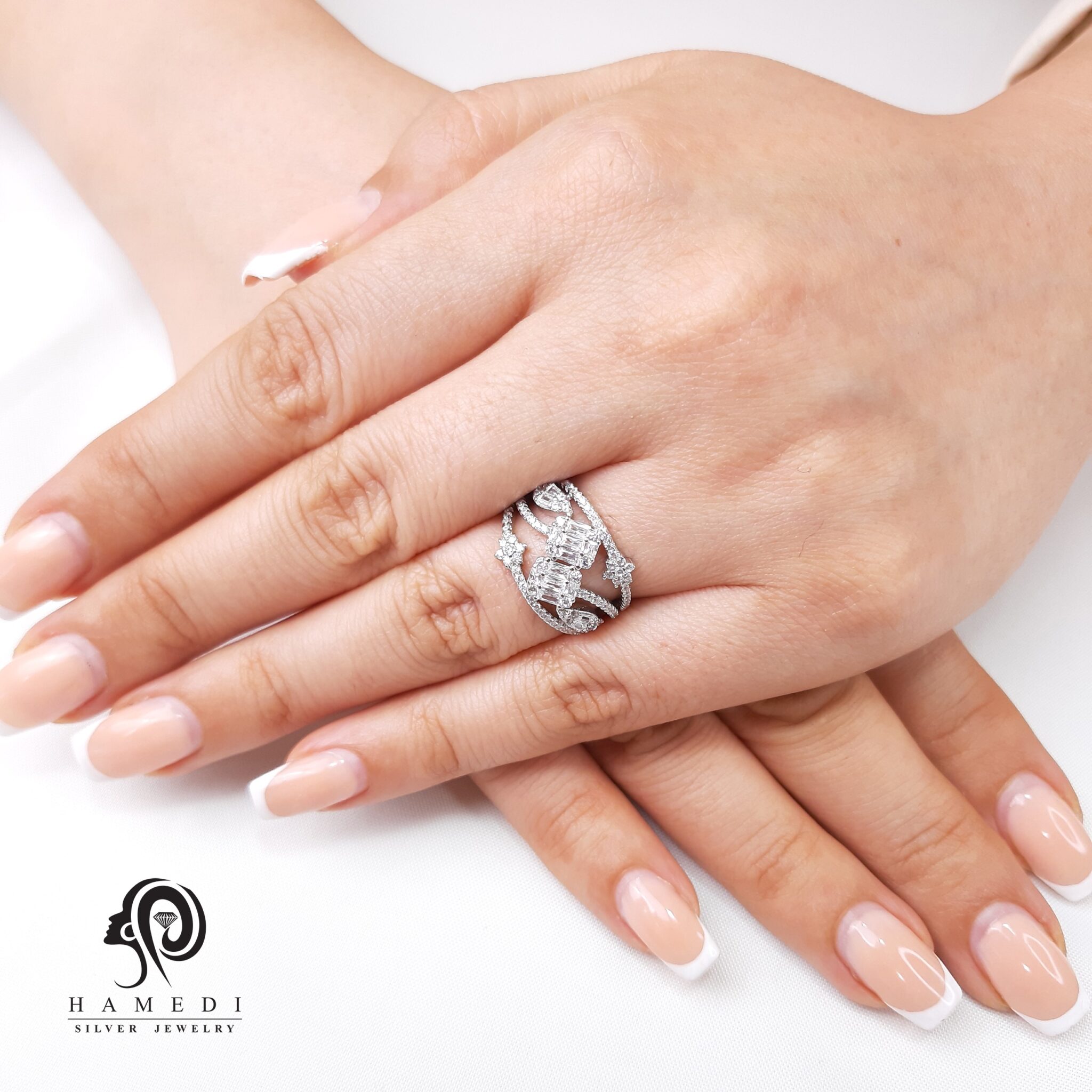 انگشتر نقره زنانه شیک و ظریف مدل RE S24 یکی از لوکس ترین و پرطرفدار ترین انگشتر های مجلسی گالری حامدی است.