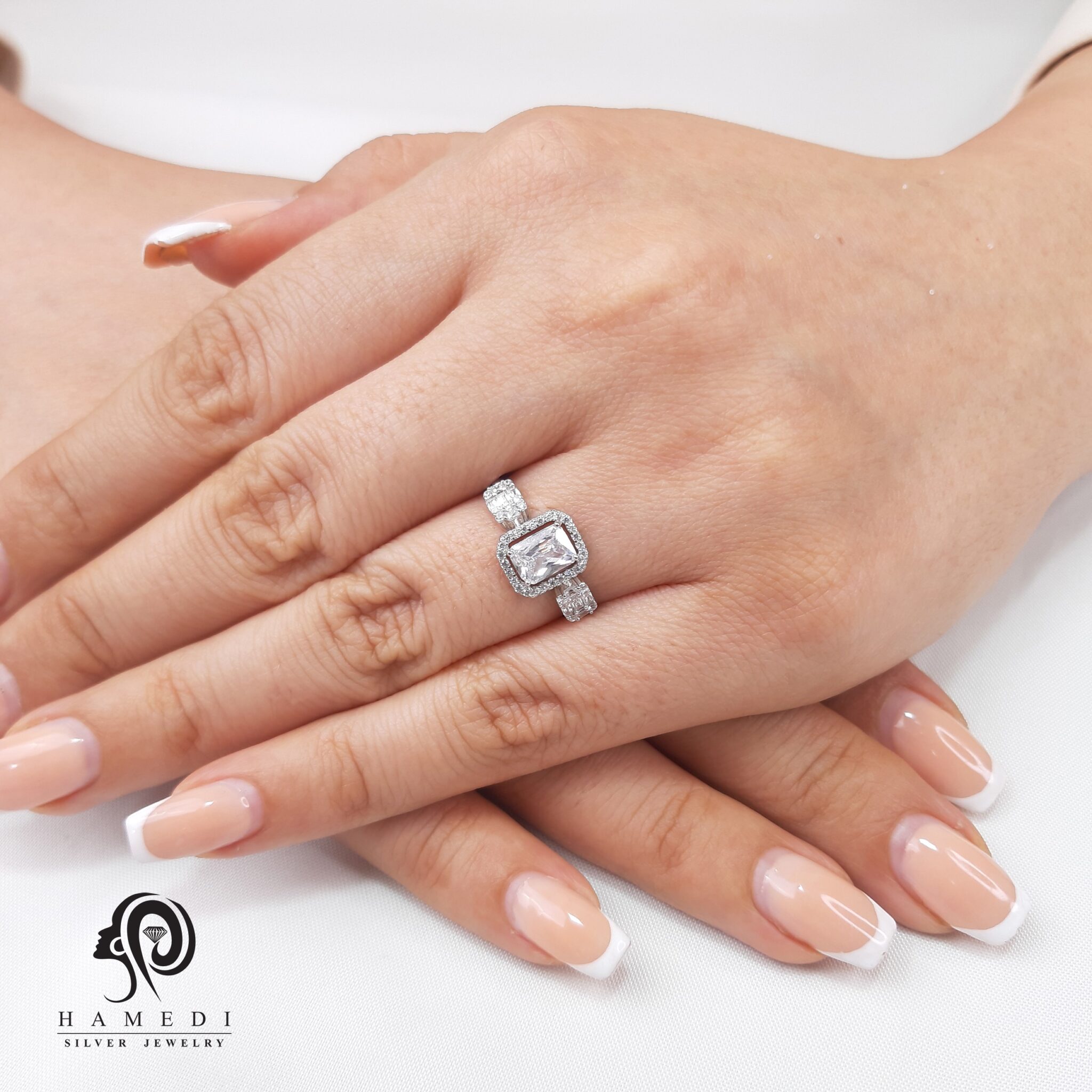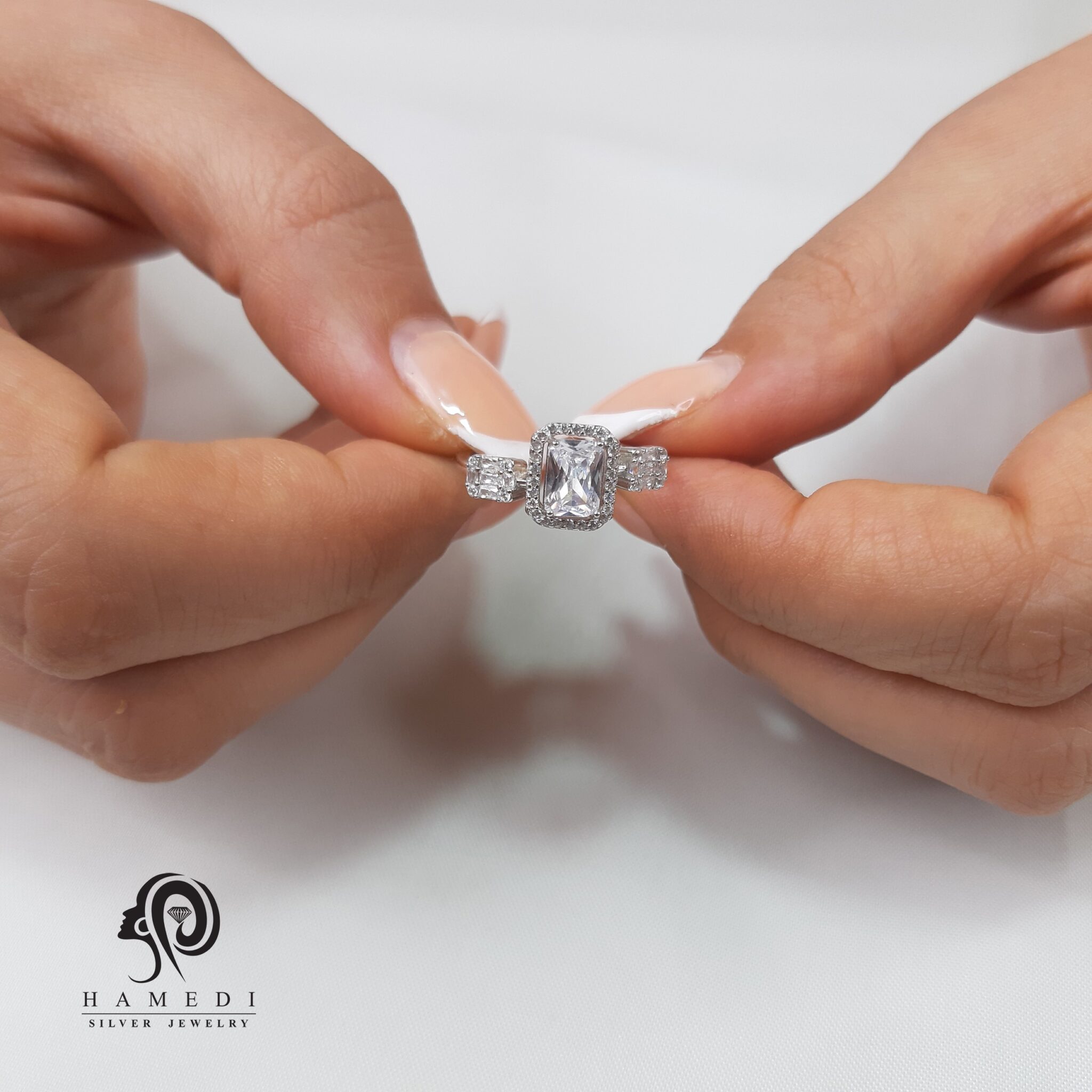 انگشتر نقره زنانه جواهری فری سایز مدل RE R24 یکی از لوکس ترین و پرطرفدار ترین انگشتر های مجلسی گالری حامدی است.