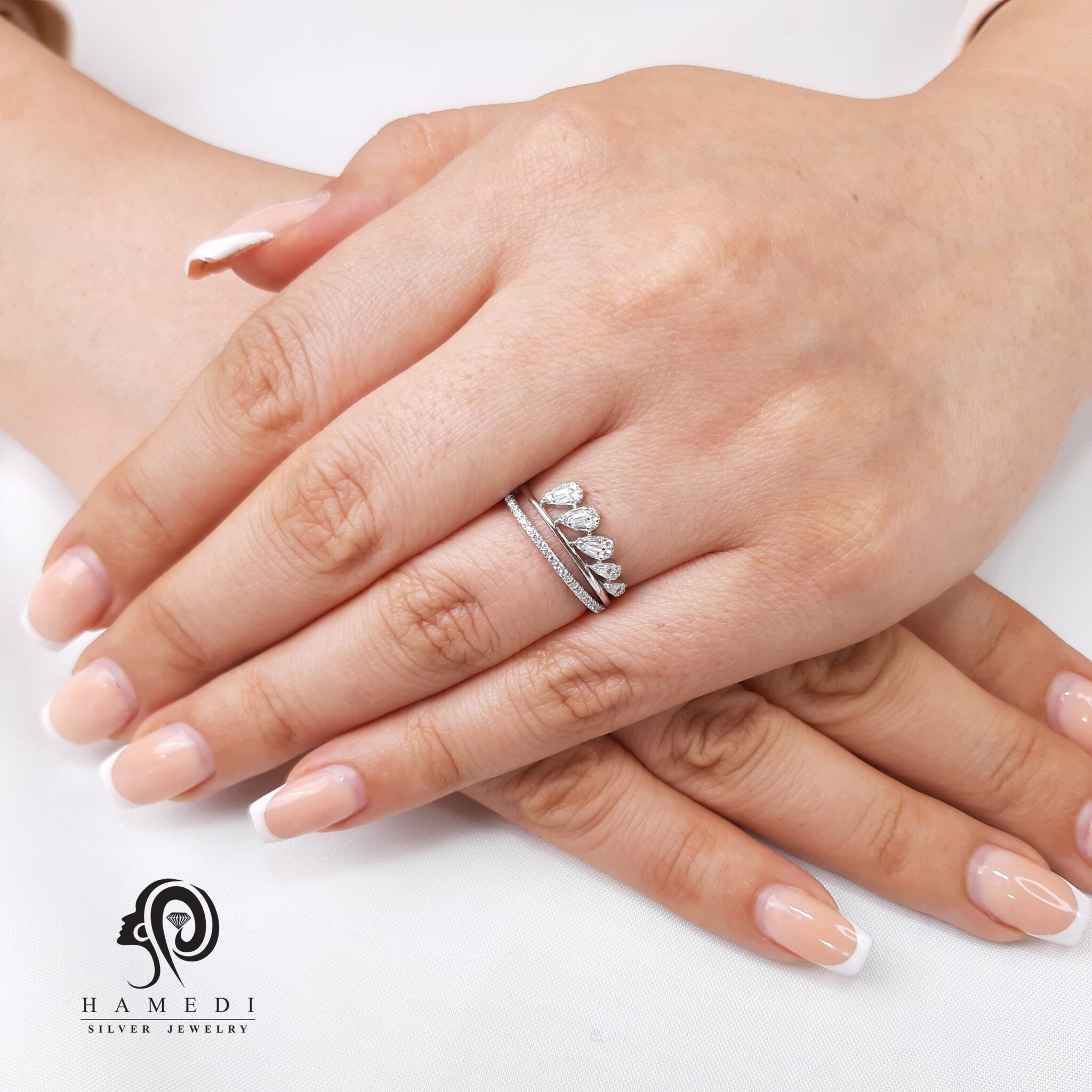 انگشتر نقره زنانه و دخترانه ظریف مدل RE S29 یکی از لوکس ترین و پرطرفدار ترین انگشتر های مجلسی گالری نقره حامدی است.