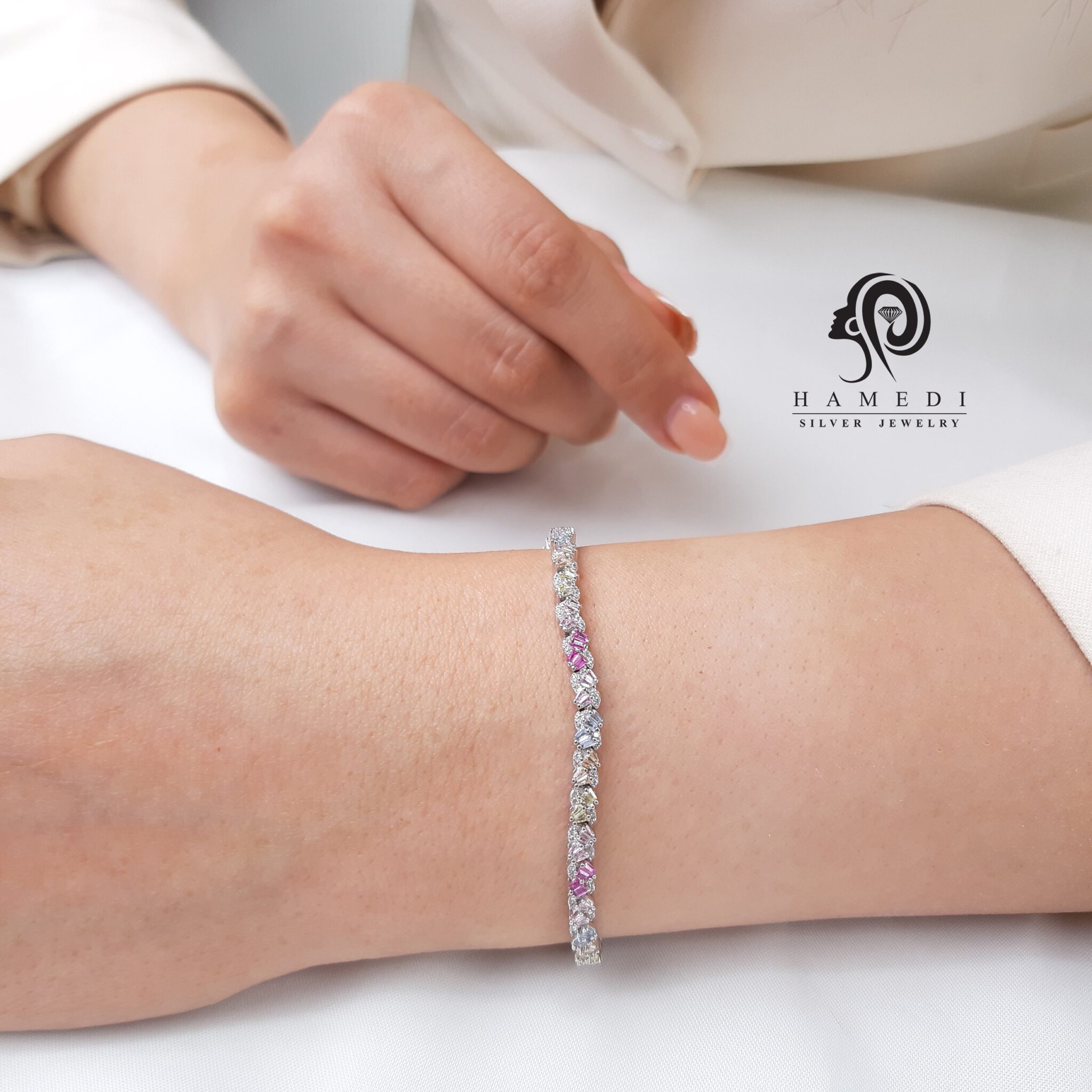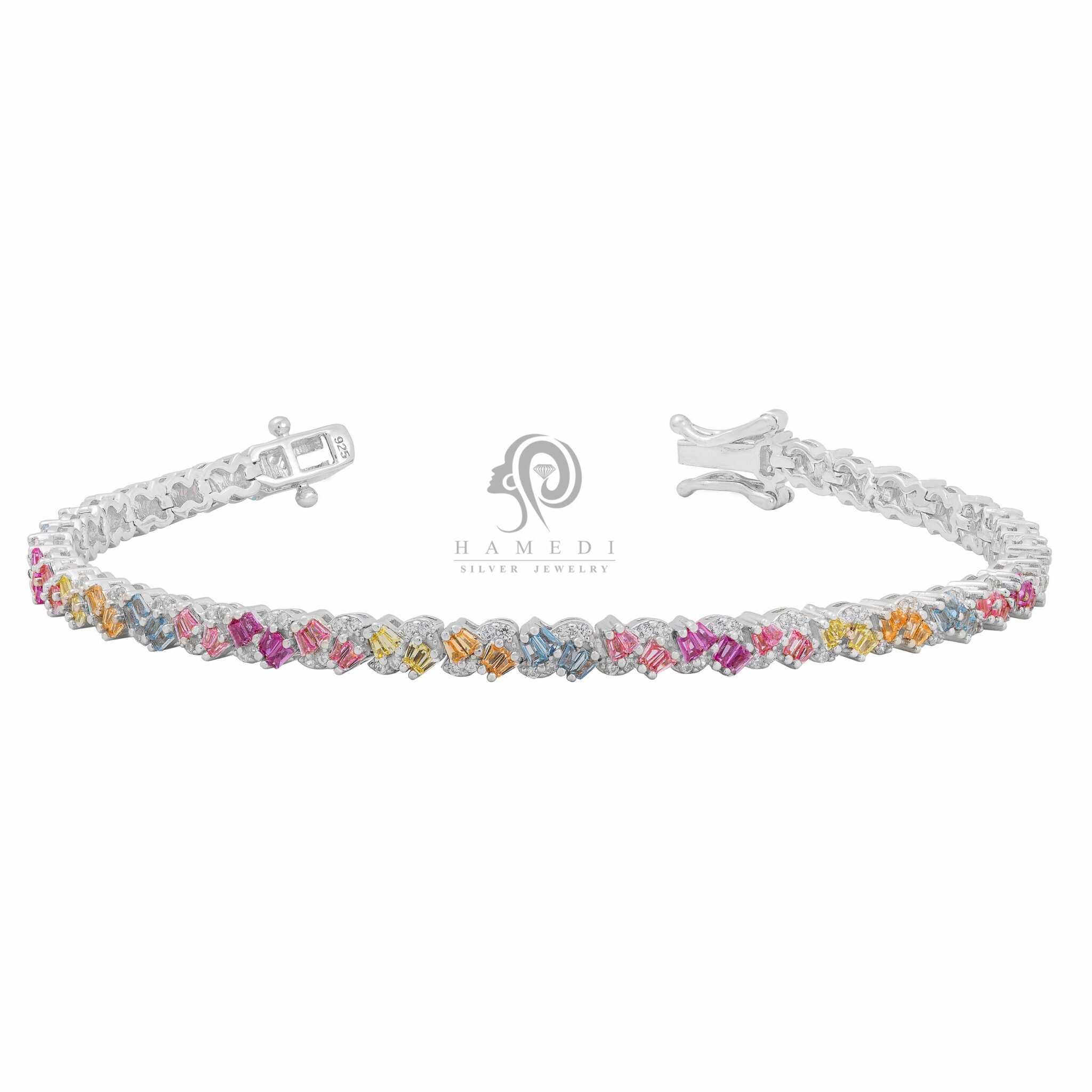دستبند نقره زنانه جواهری نگین رنگی مدل BE S4 از زیباترین و شیکترین دستبند های جواهری گالری حامدی است.