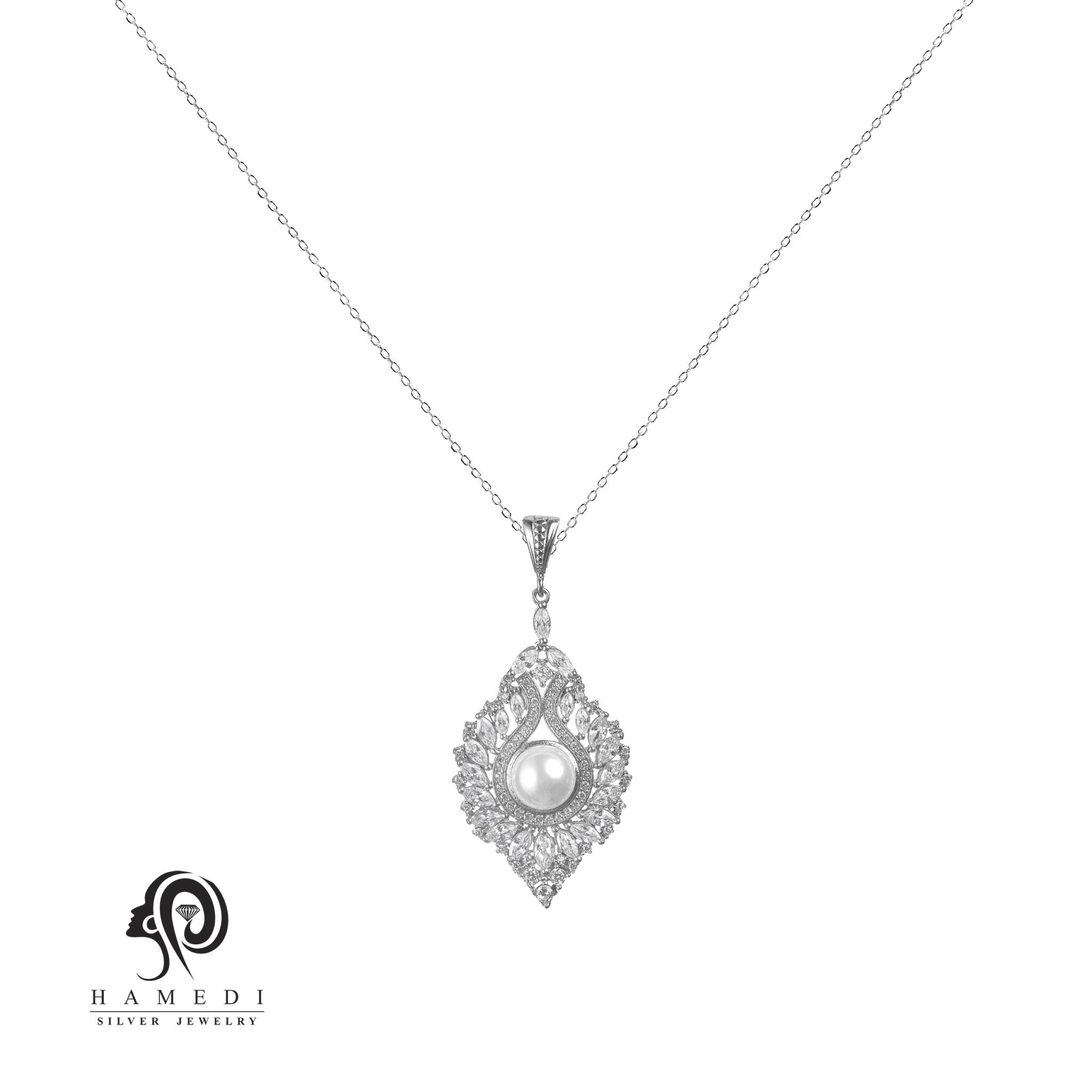 مدال زنانه مروارید خور نقره جواهری مدل MI Y2 یکی از زیباترین ترین و پرطرفدار ترین مدال های مجلسی گالری نقره حامدی است.