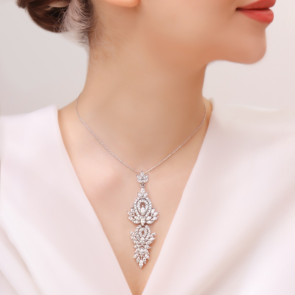 مدال زنانه نقره جواهری مجلسی مدل MI K2 یکی از زیباترین و پرطرفدار ترین مدال های مجلسی گالری حامدی است.