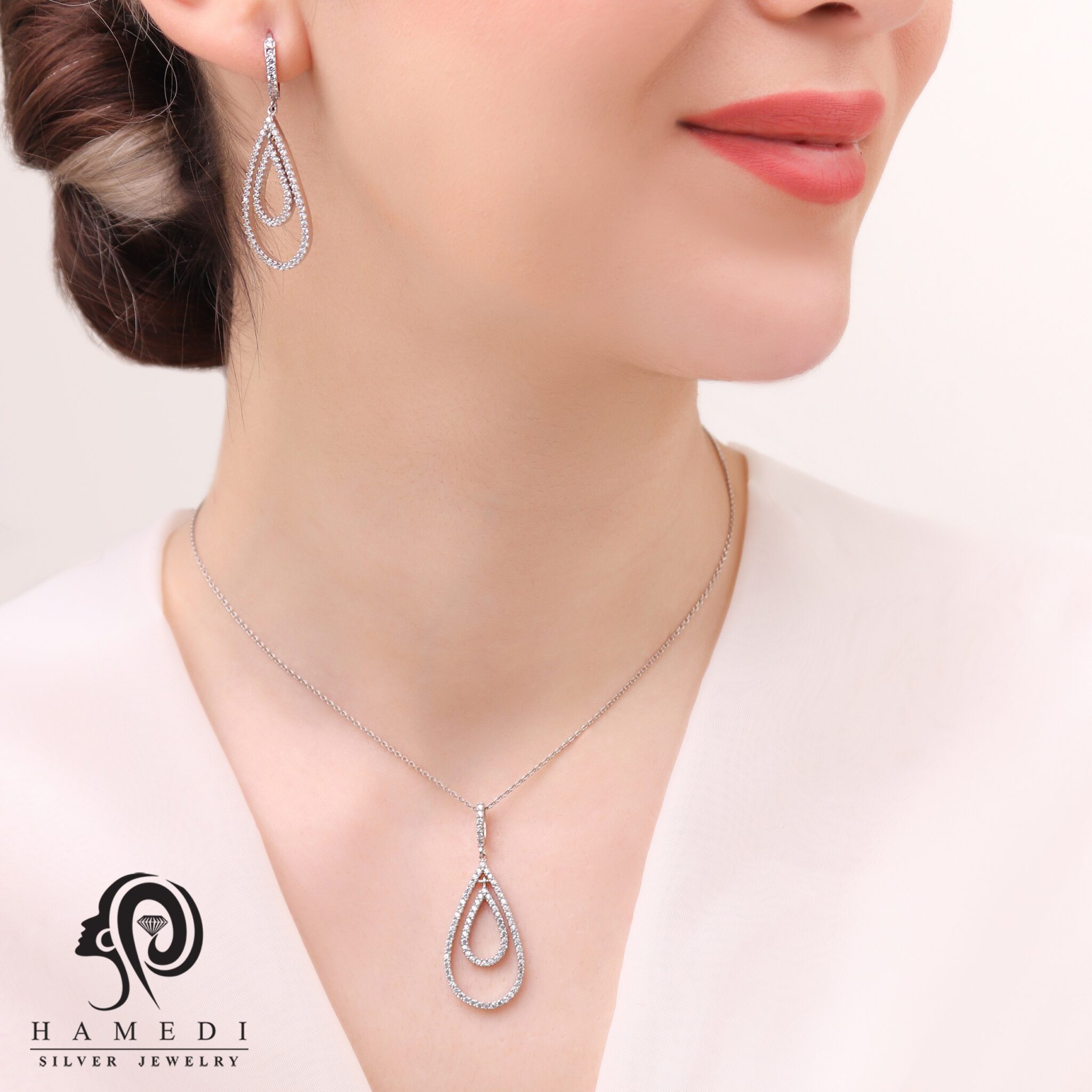 نیم ست نقره زنانه مجلسی جواهری مدل NI B14 یکی از زیباترین و پرطرفدارترین نیم ست های مجلسی گالری حامدی است.