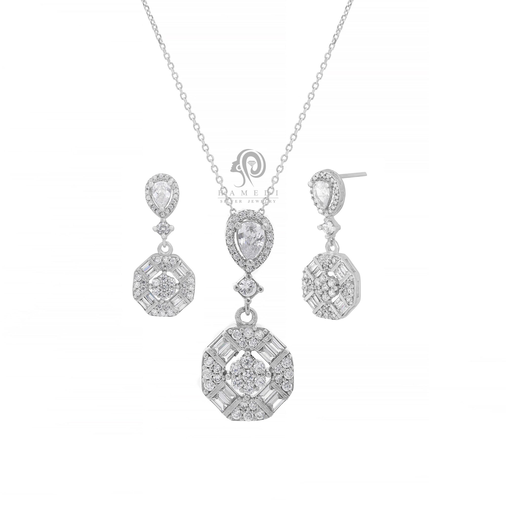 نیم ست نقره زنانه مجلسی مدل NI F1 یکی از زیبا ترین و پرطرفدار ترین نیم ست های مجلسی گالری حامدی است.