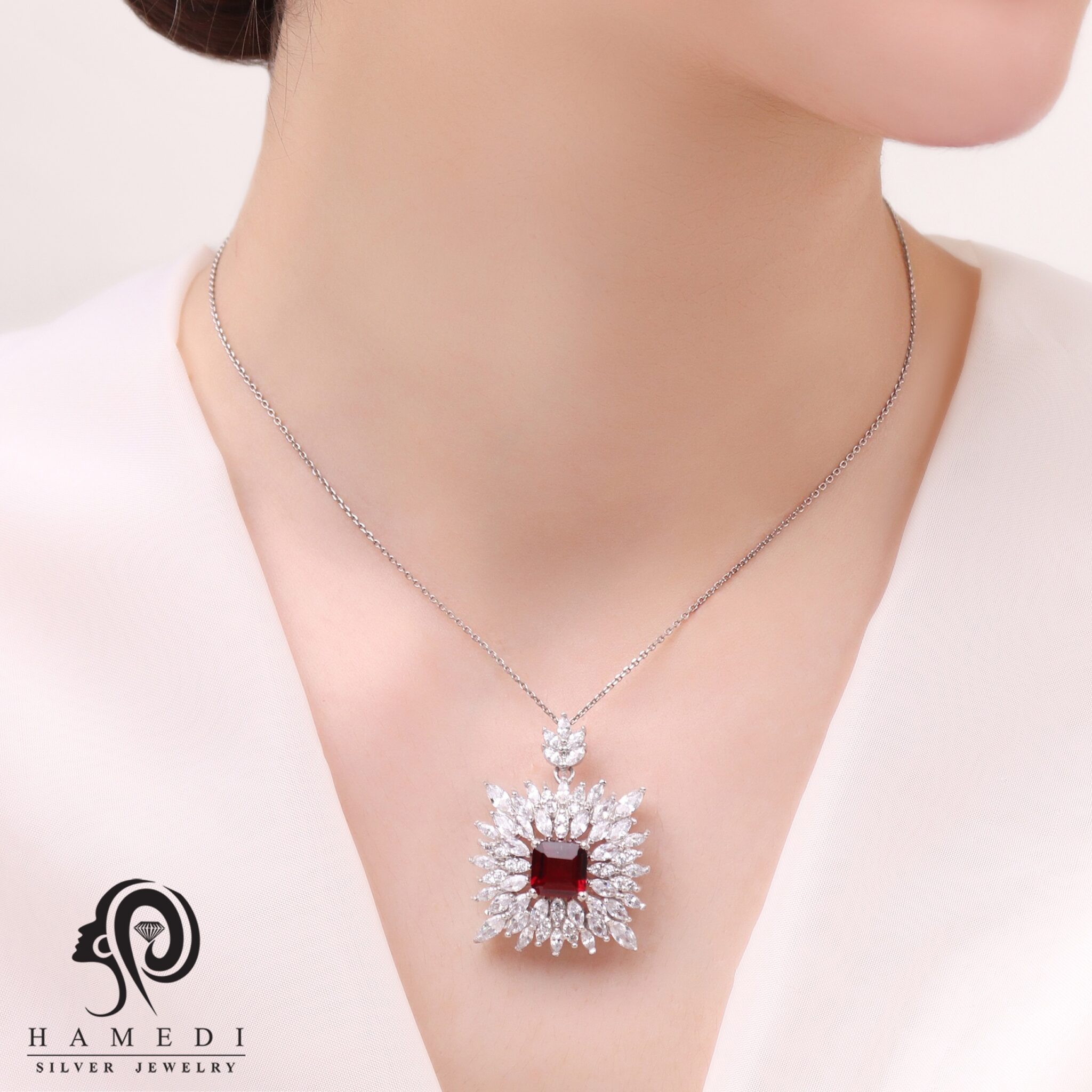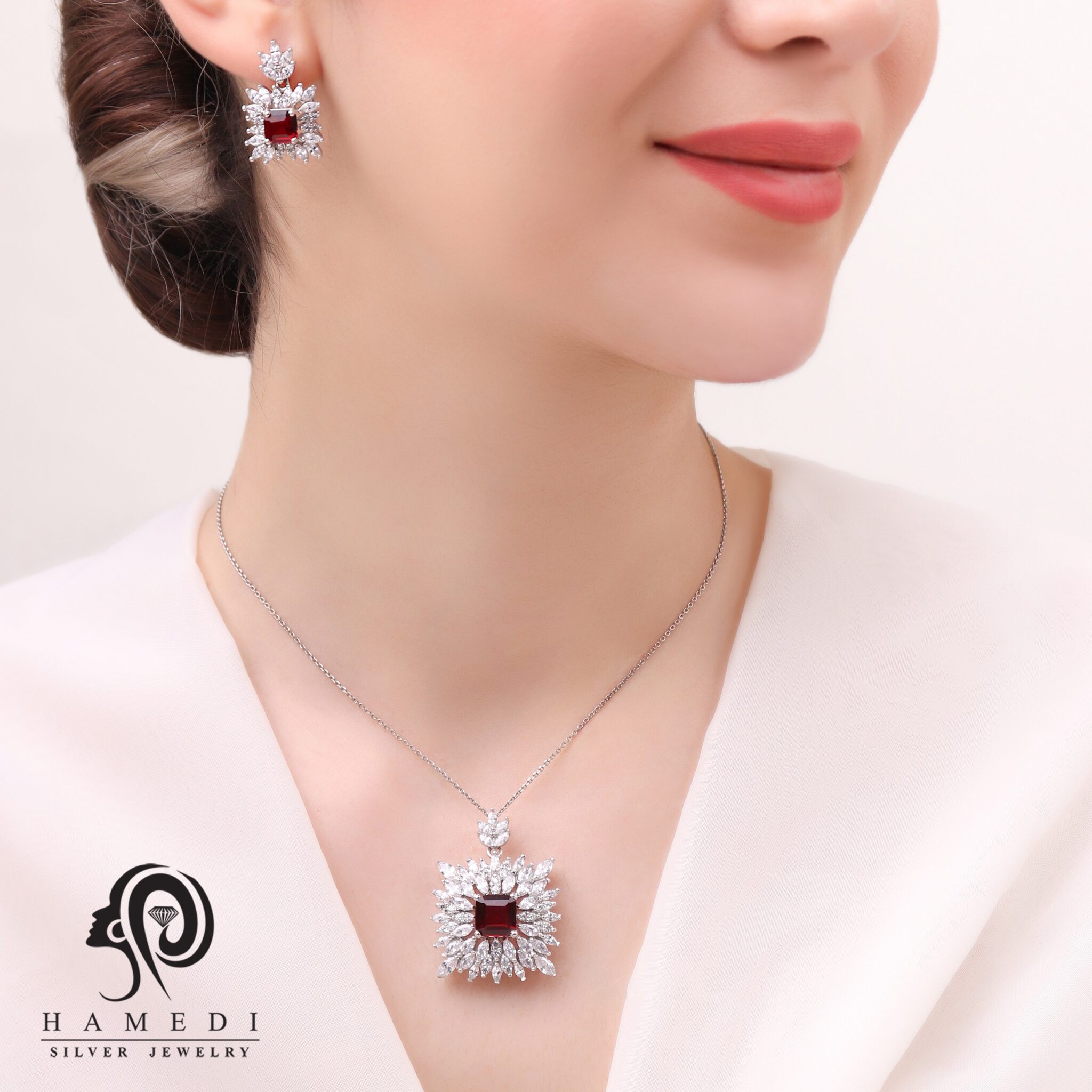 نیم ست نقره زنانه با نگیم های رنگی مدل NI R13 یکی از زیباترین و پرطرفدارترین نیم ست های مجلسی گالری حامدی است.