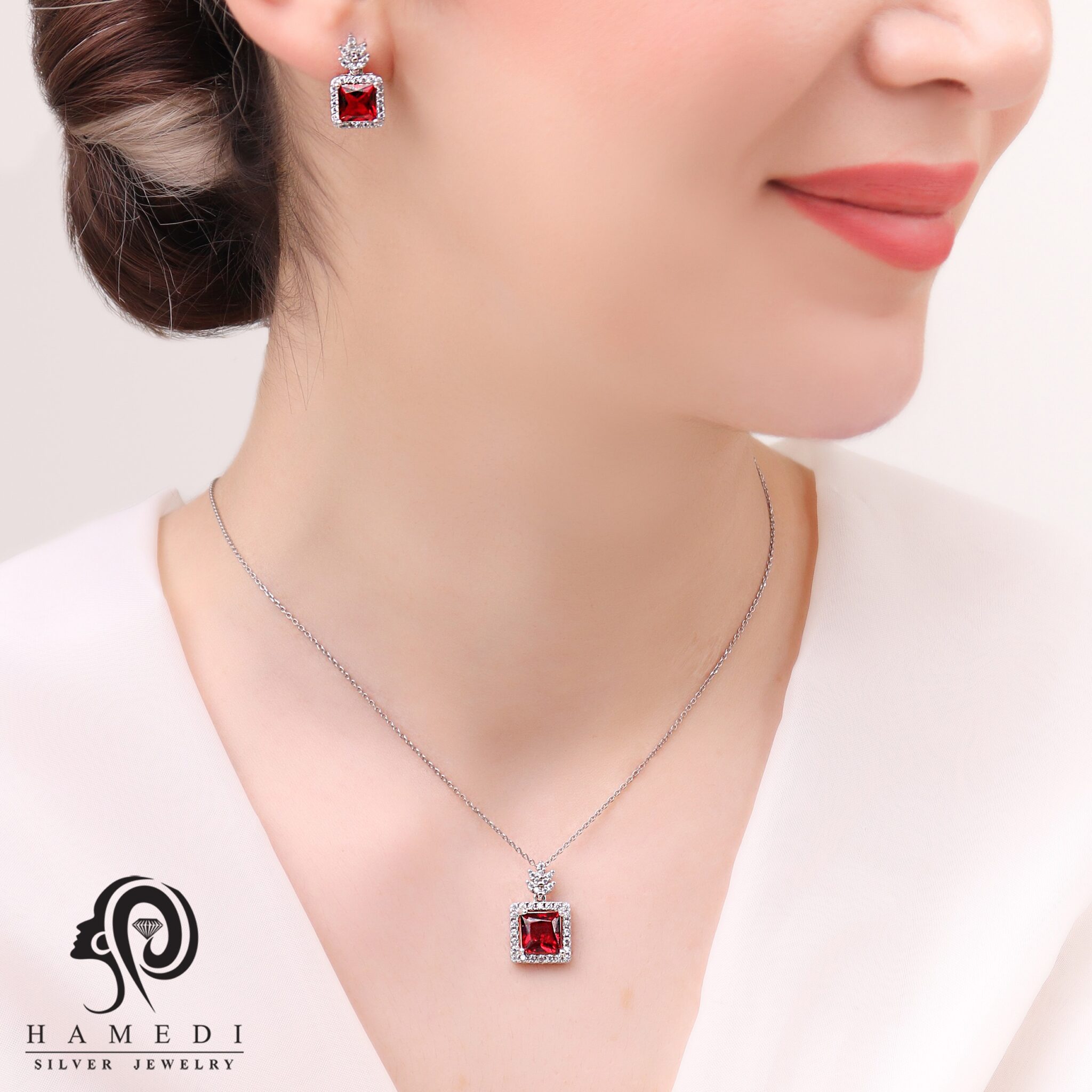 نیم ست نقره زنانه با نگین های رنگی مدل NI R2 یکی از زیبا ترین و پرطرفدار ترین نیم ست های مجلسی گالری حامدی است.