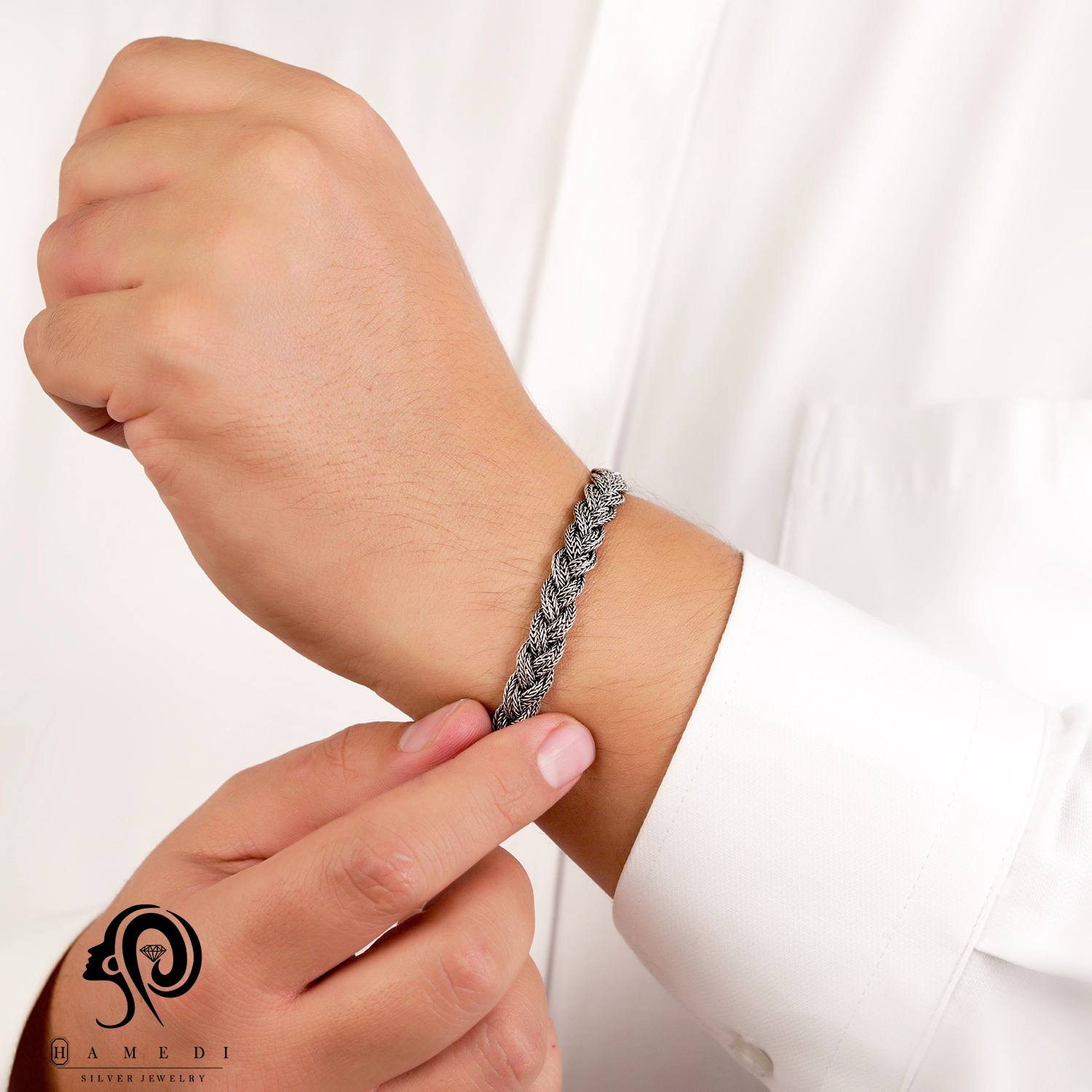 دستبند نقره مردانه بافت ترک مدل BEM T110 T یکی از لوکسترین و پرطرفدارترین دستبند مردانه نقره حامدی است.