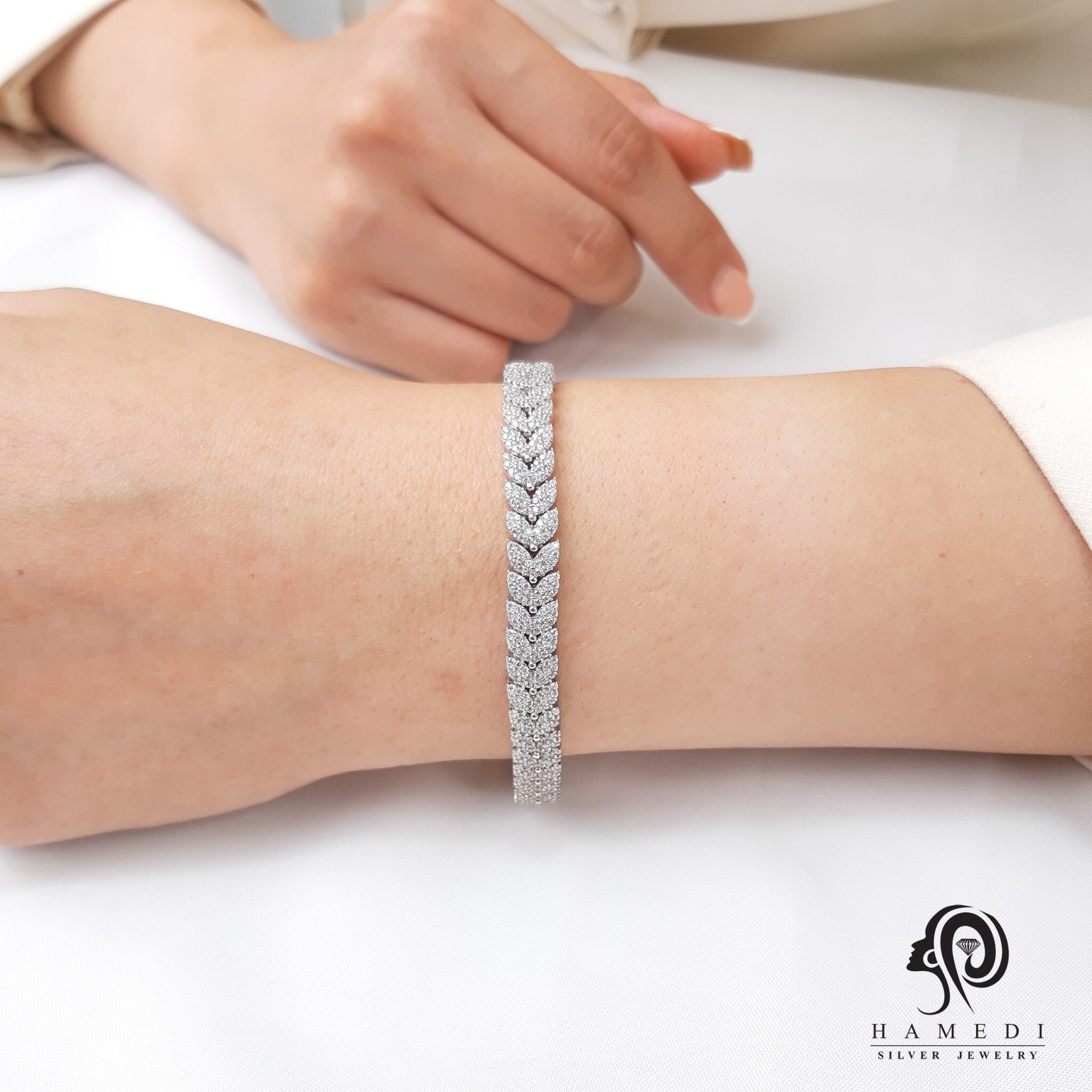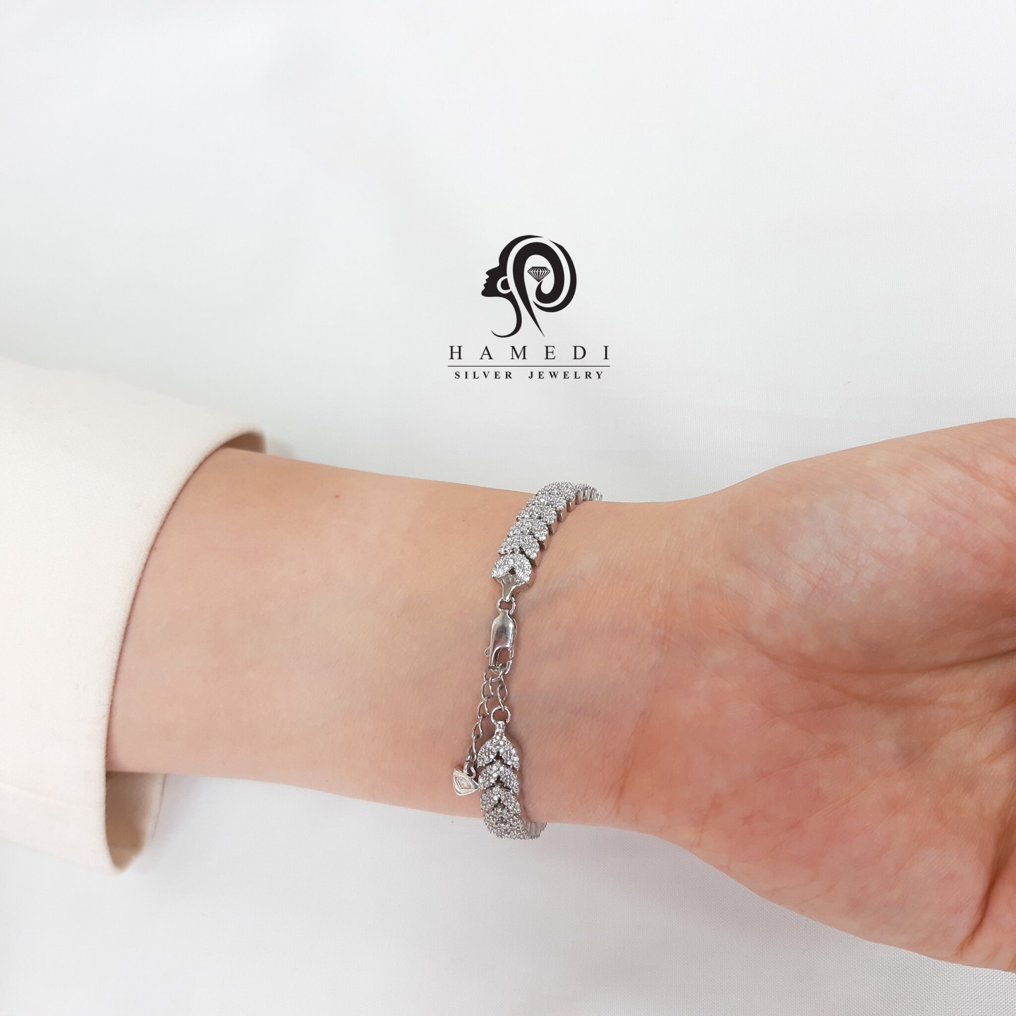 دستبند نقره زنانه طرح جواهری شیک مدل BI B21 از ظریف ترین و پرطرفدار ترین دستبند های جواهری گالری نقره حامدی است.