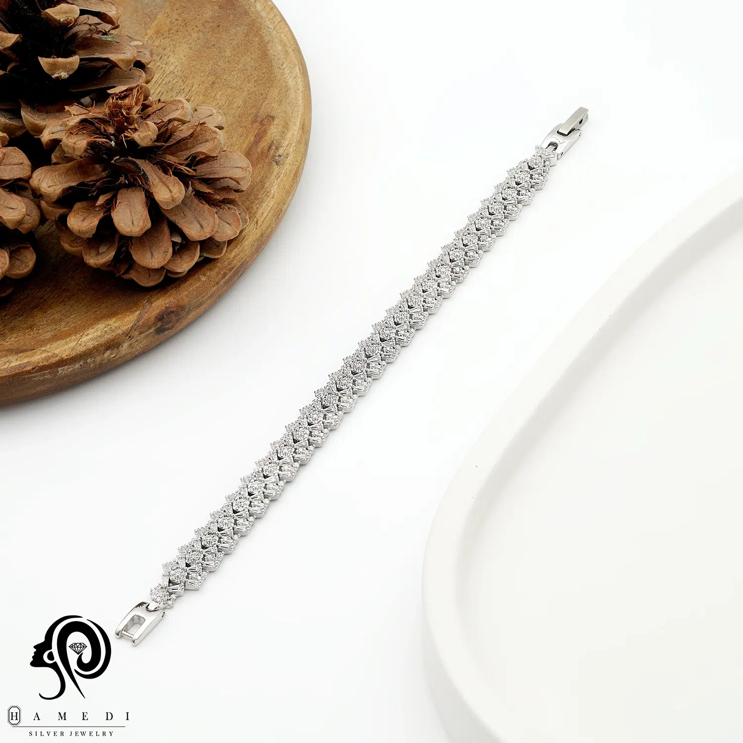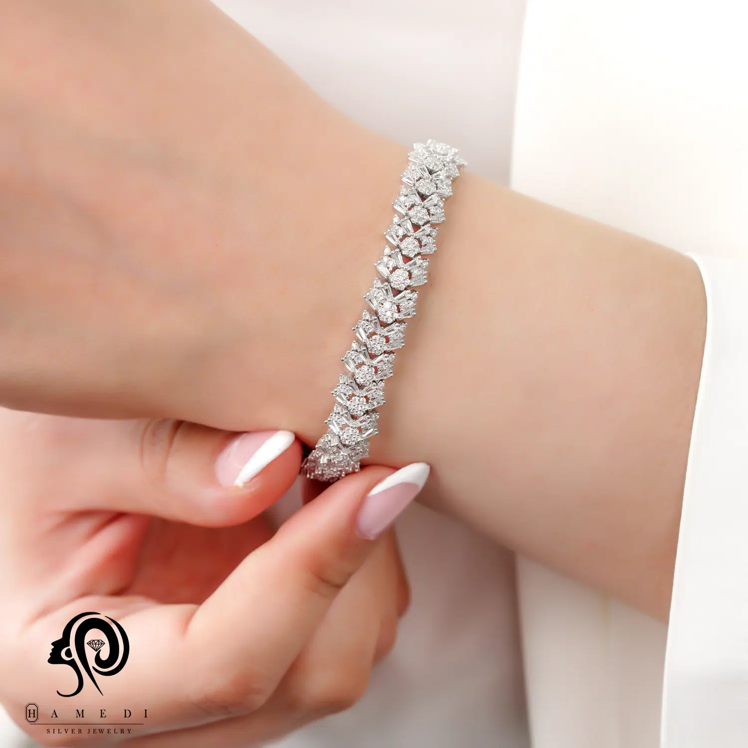 دستبند نقره زنانه مجلسی جواهری مدل BI F39 از ظریفترین و پرطرفدارترین دستبند های مجلسی گالری حامدی است.