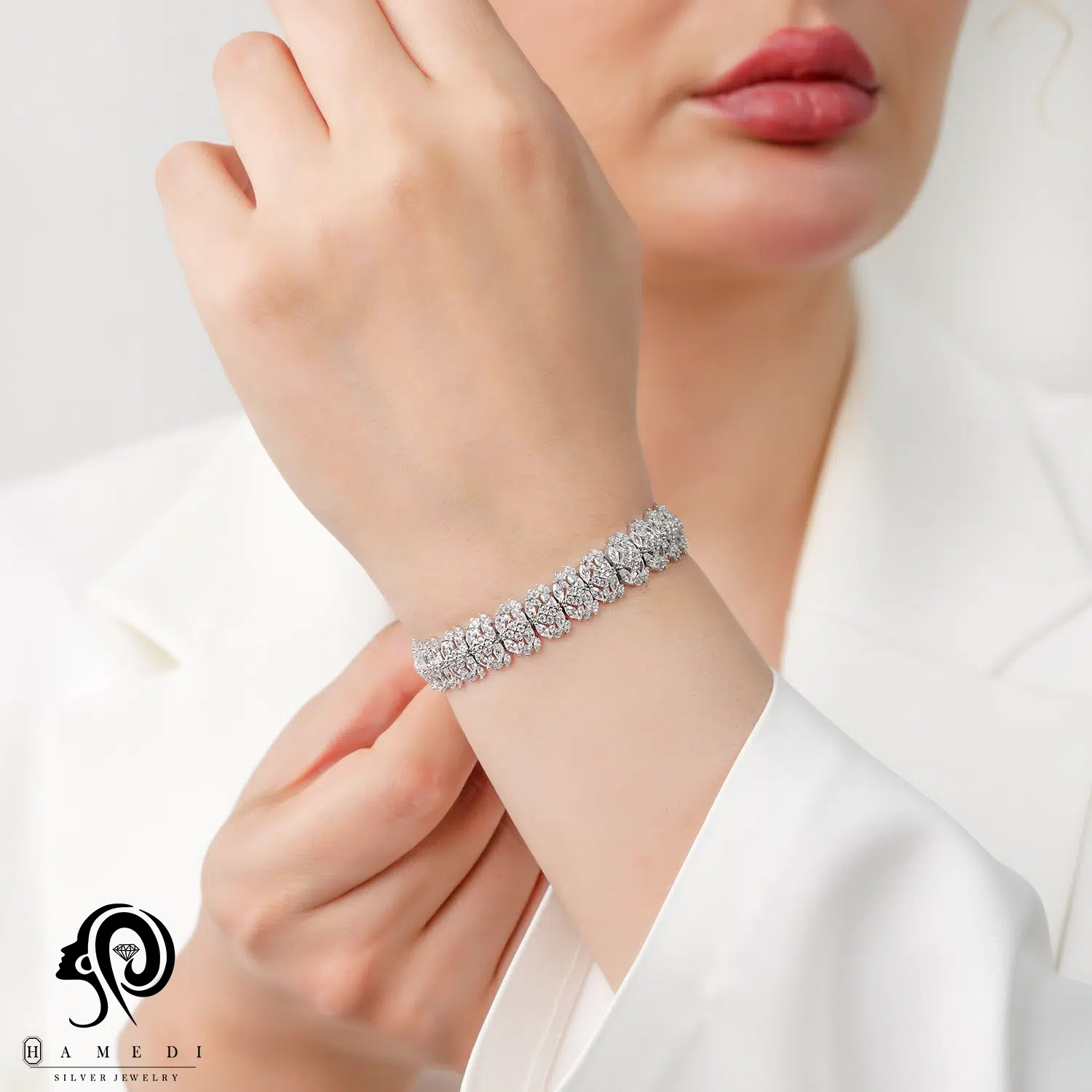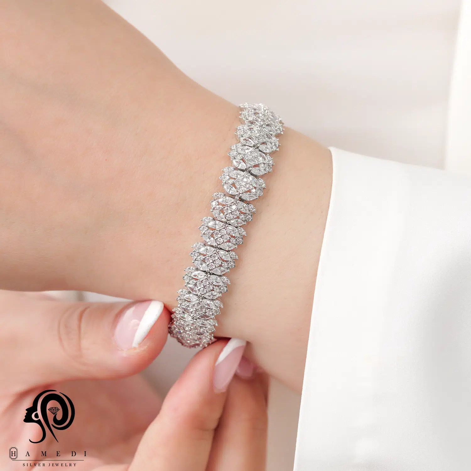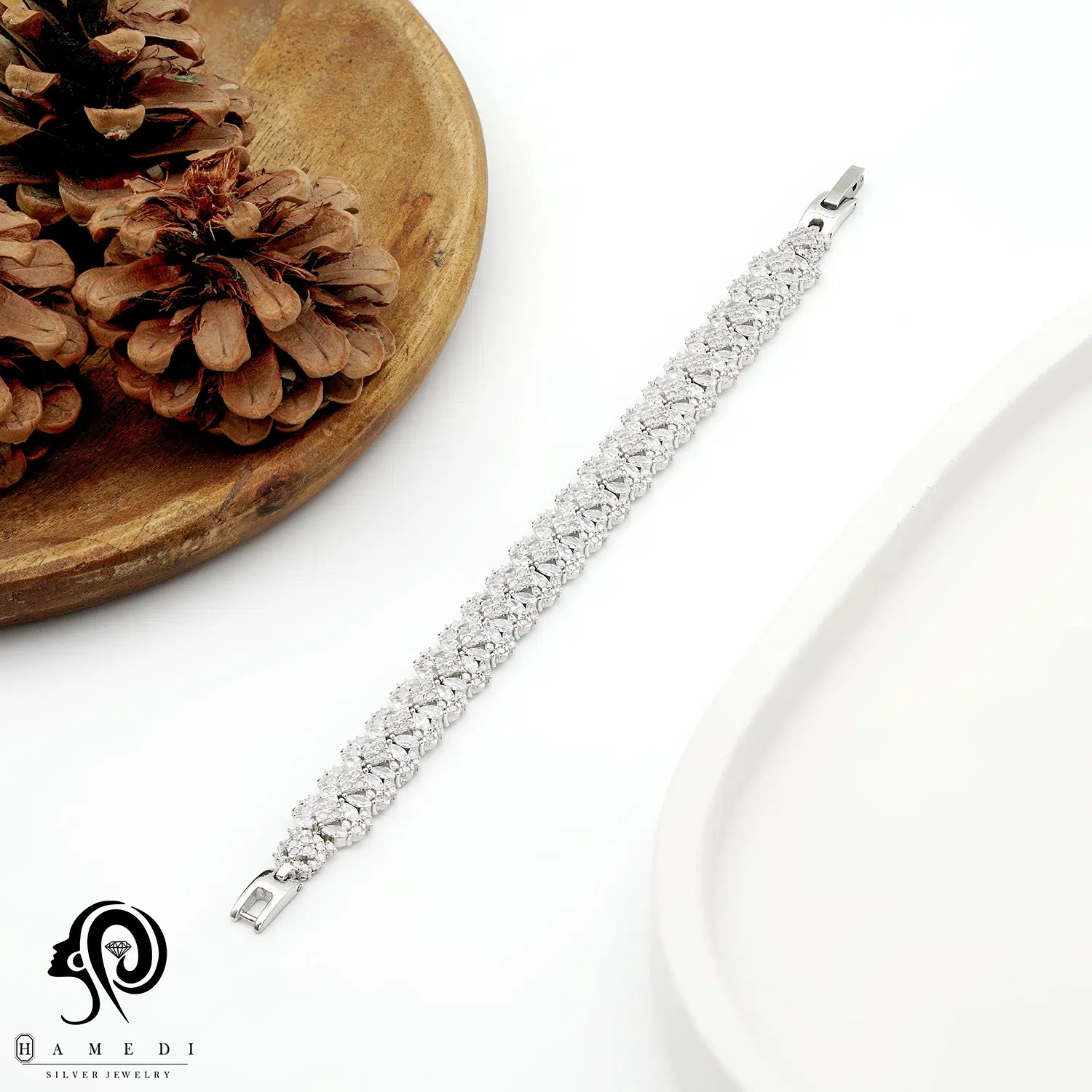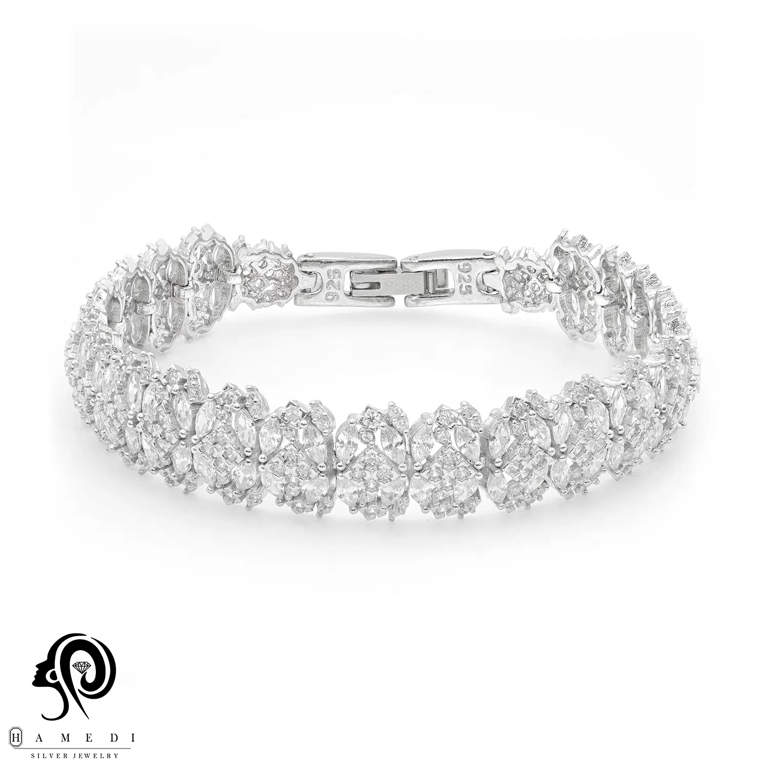 دستبند نقره زنانه مجلسی جواهری مدل BI K30 از ظریفترین و پرطرفدارترین دستبند های مجلسی گالری حامدی است.