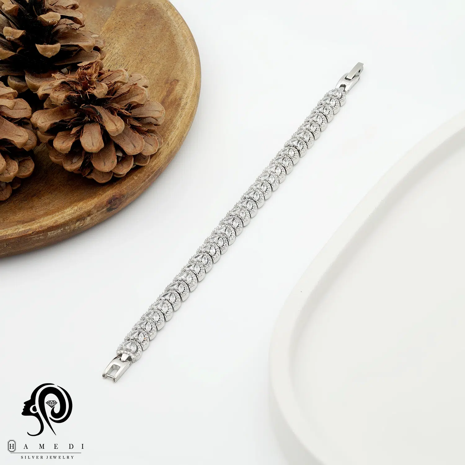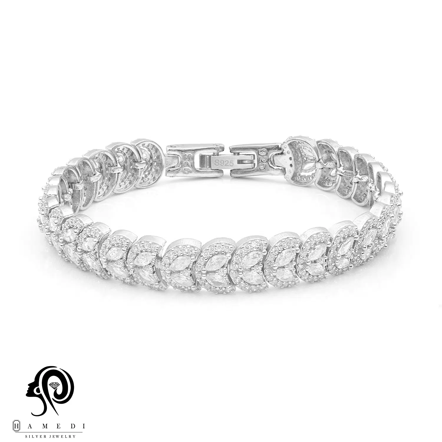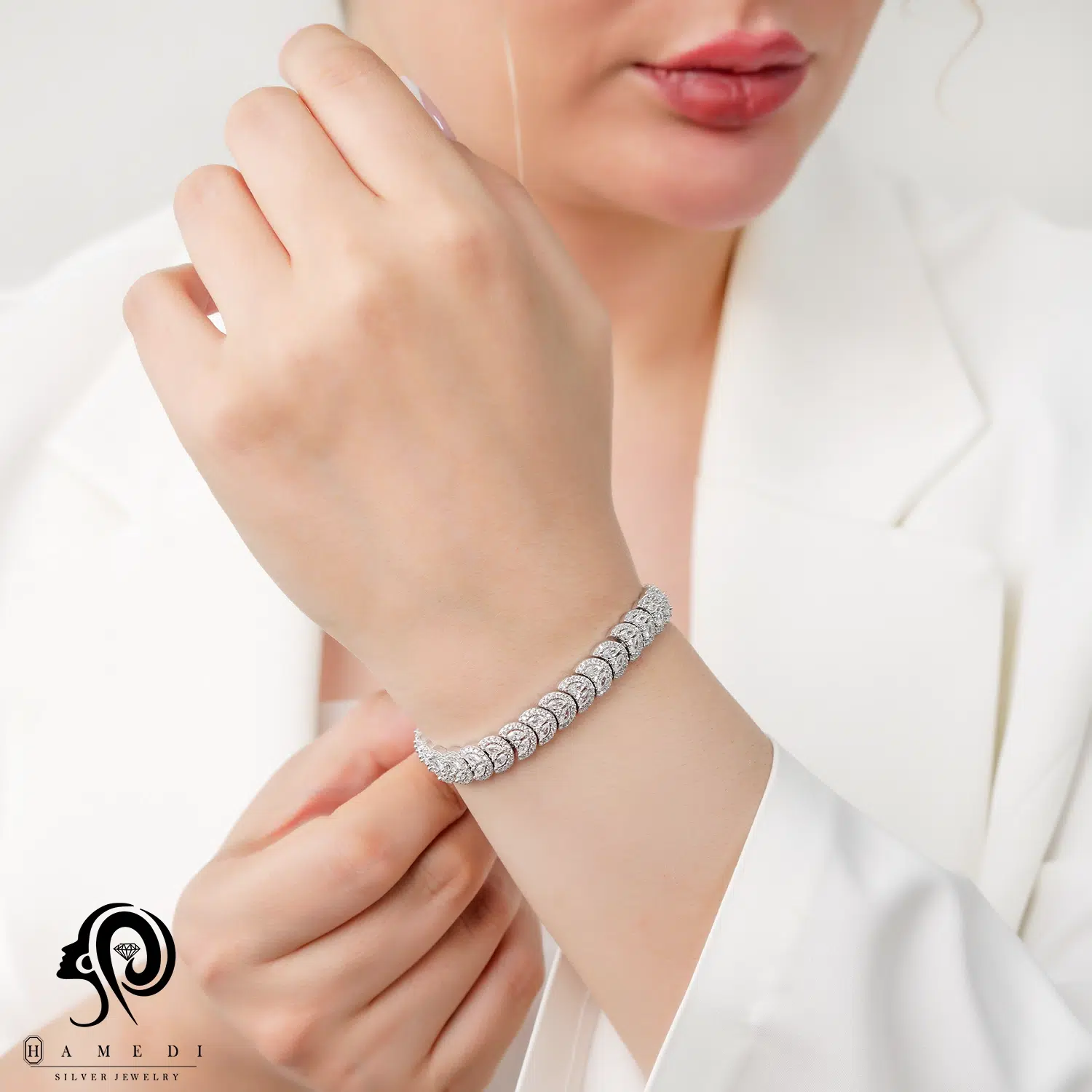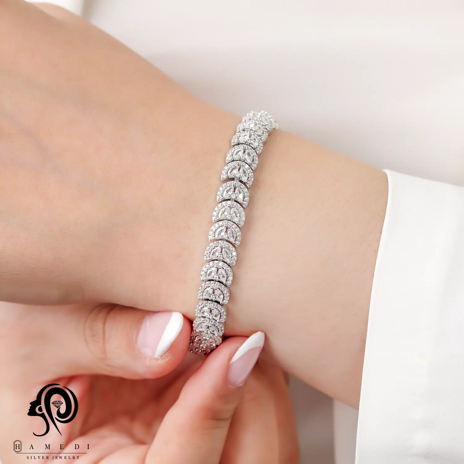 دستبند نقره زنانه مجلسی جواهری مدل BI K8 از ظریفترین و پرطرفدارترین دستبند های مجلسی گالری حامدی است.