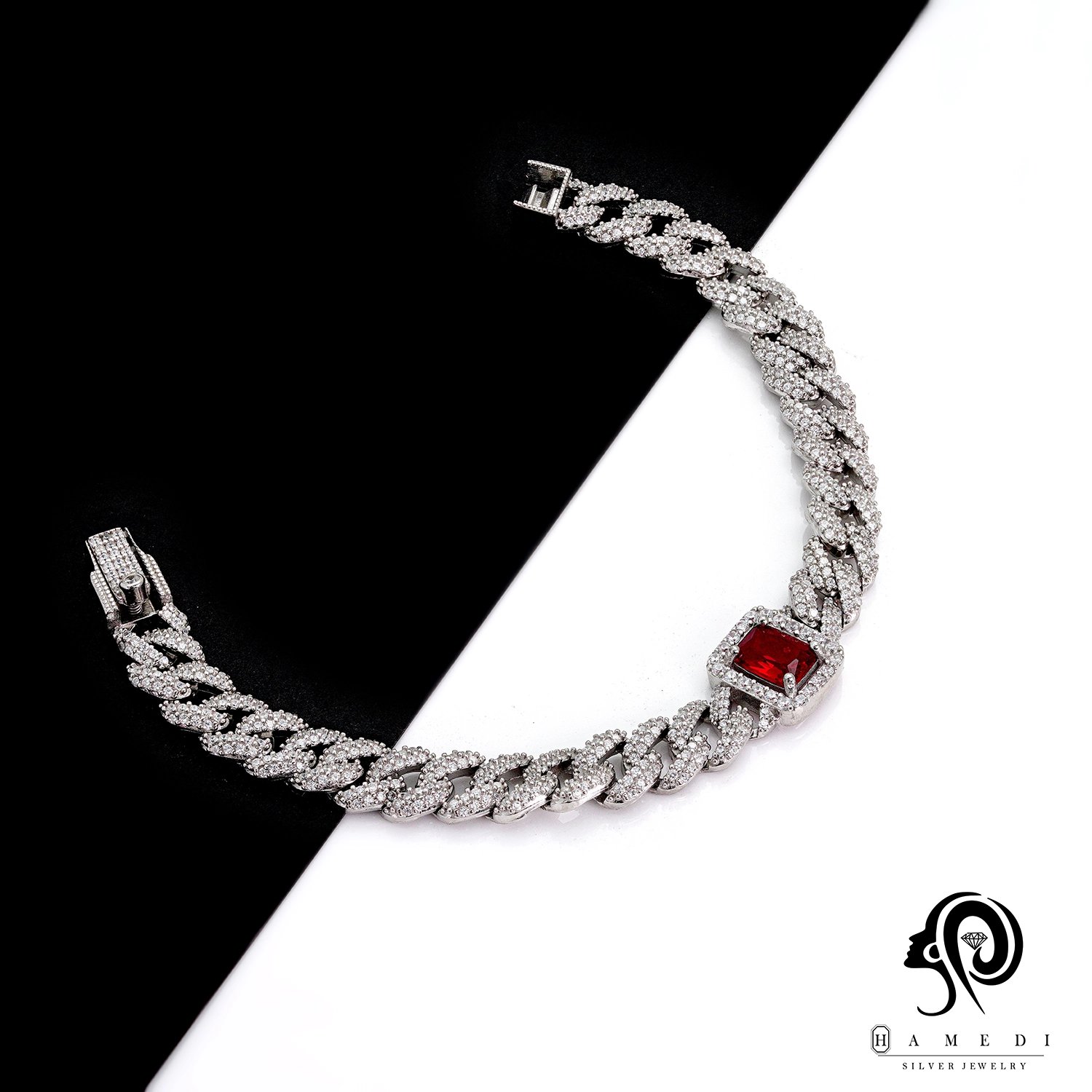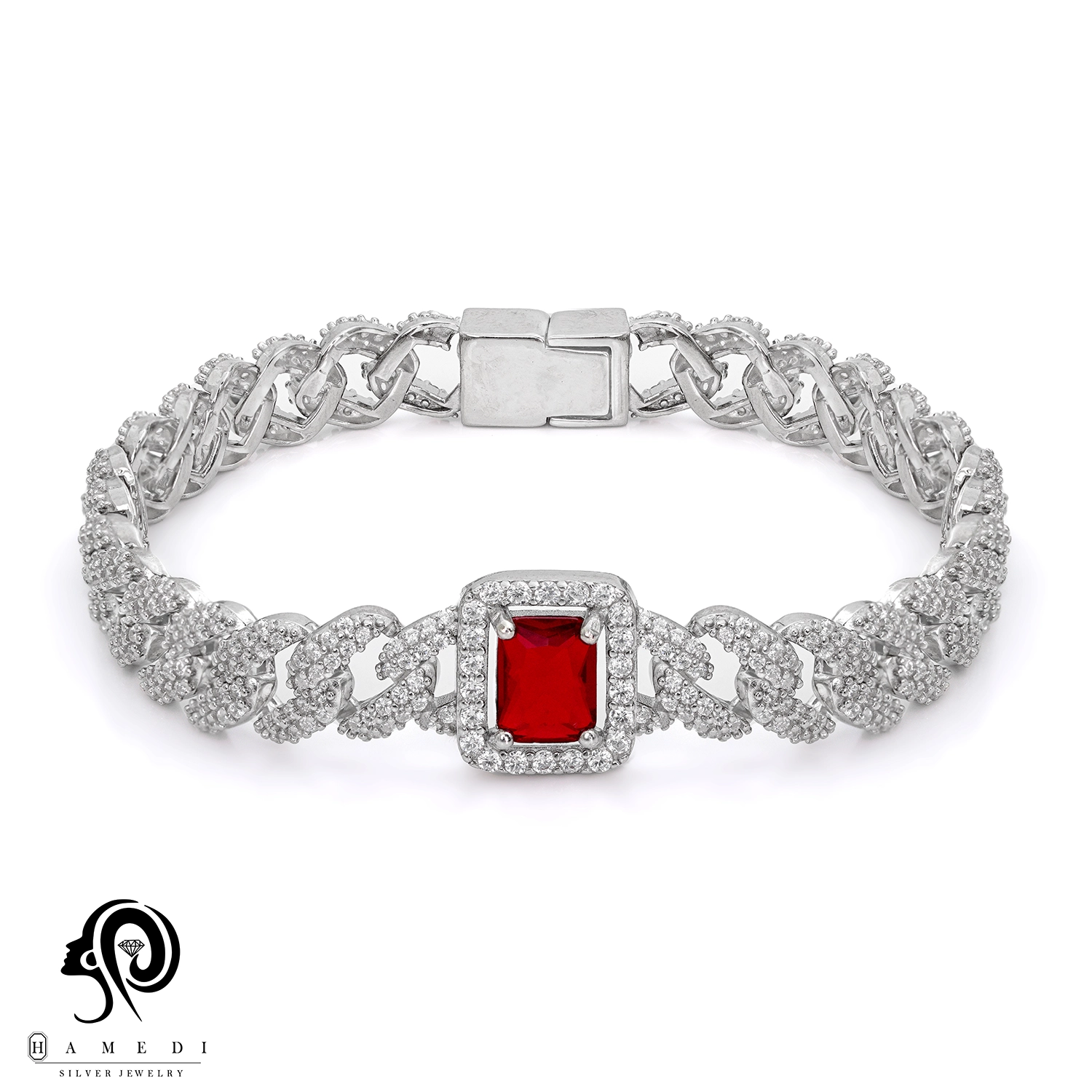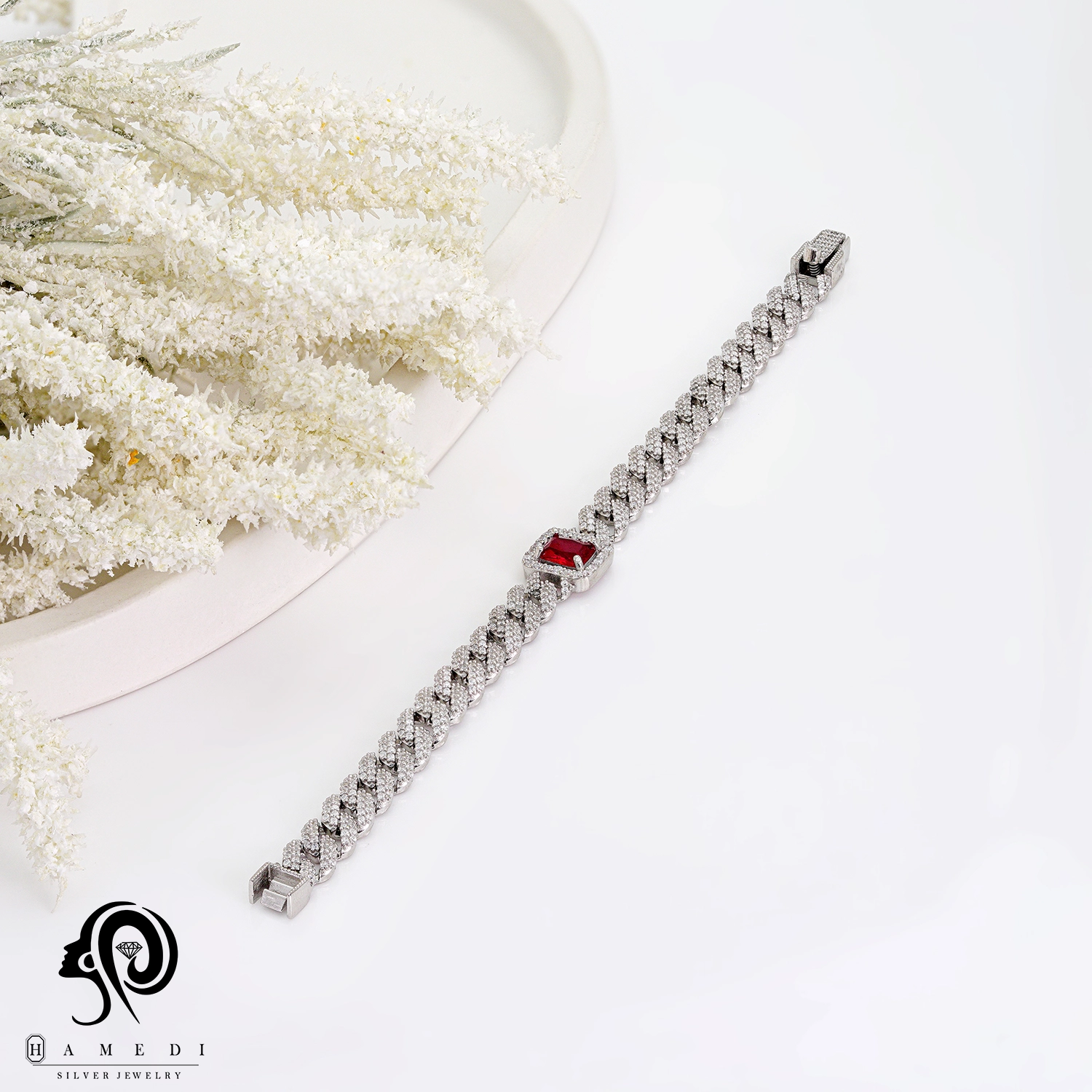 نگین های این محصول 90% شبیه به جواهر می باشد و قفل دستبند جواهری است.