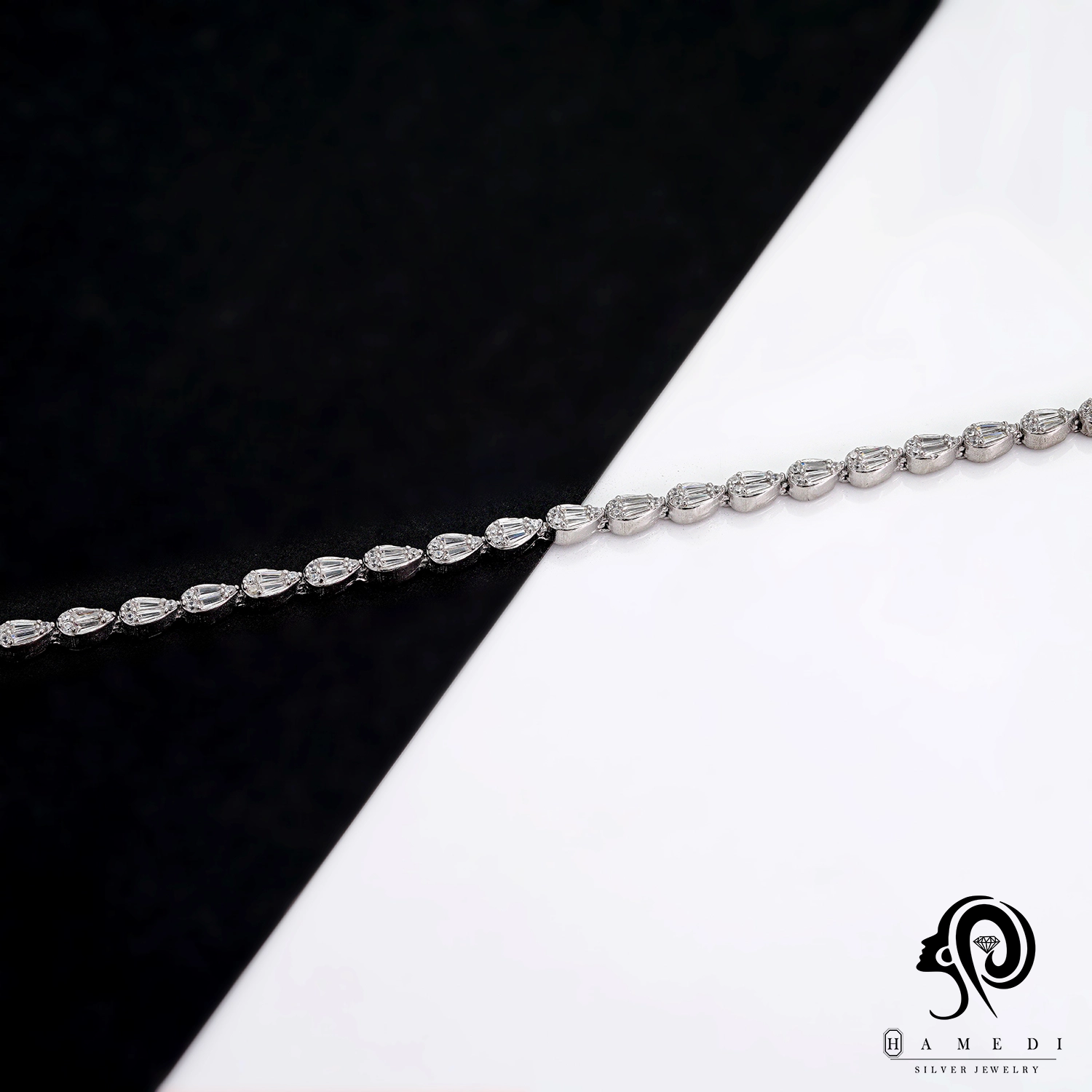 دستبند نقره زنانه مجلسی جواهری مدل BI S22 از ظریفترین و پرطرفدارترین دستبند های مجلسی گالری حامدی است.