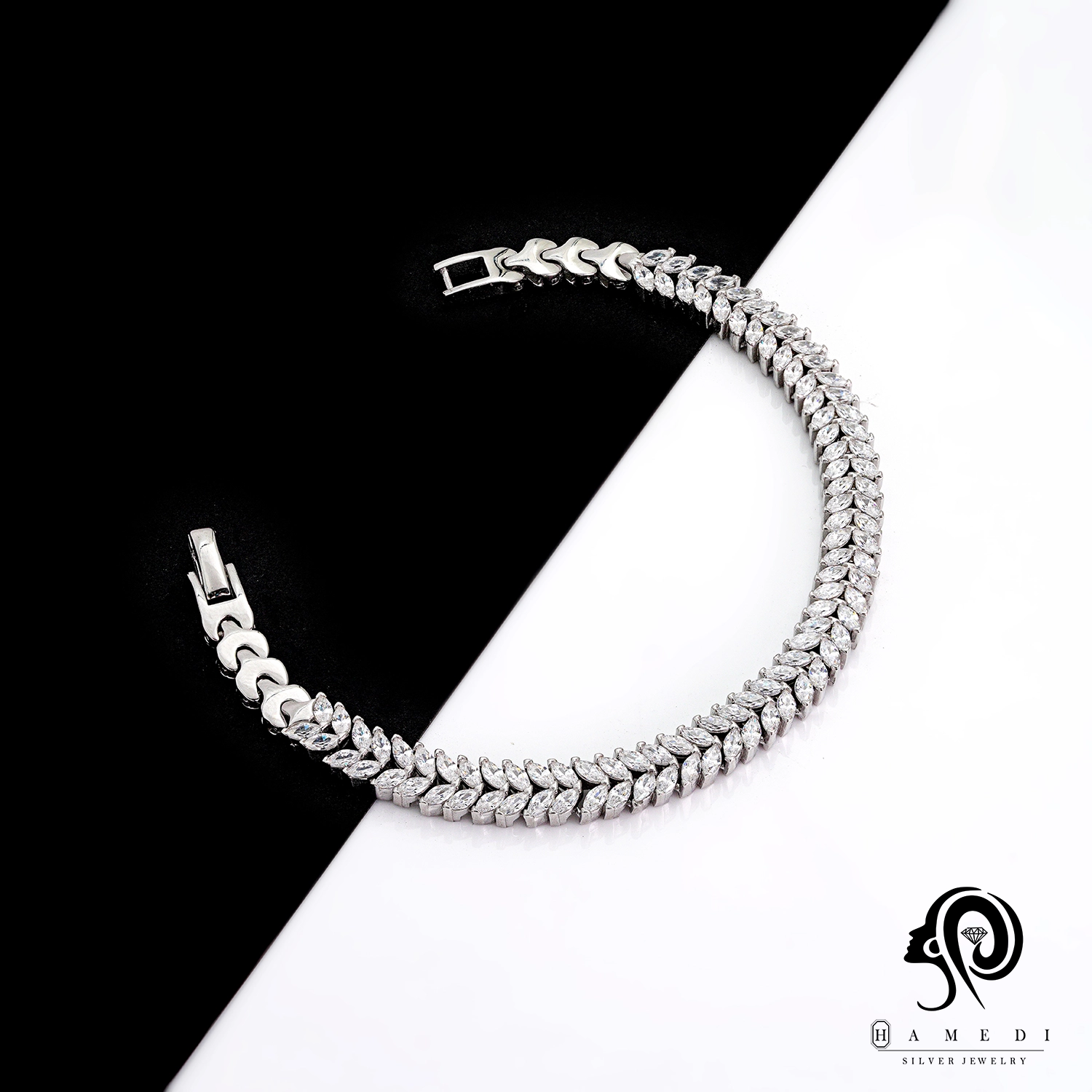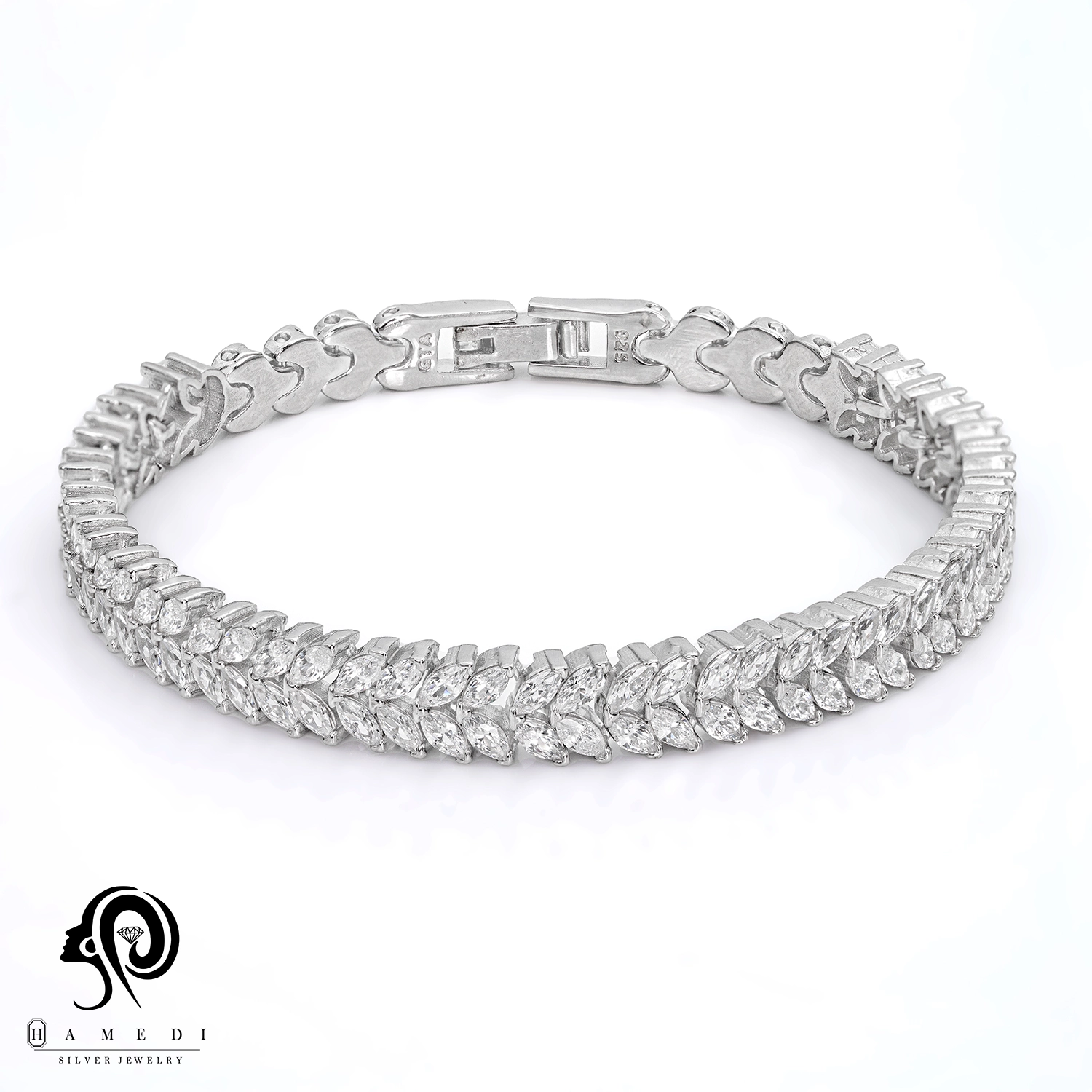 دستبند نقره زنانه مجلسی جواهری مدل BI Z6 از ظریفترین و پرطرفدارترین دستبند های مجلسی گالری حامدی است.