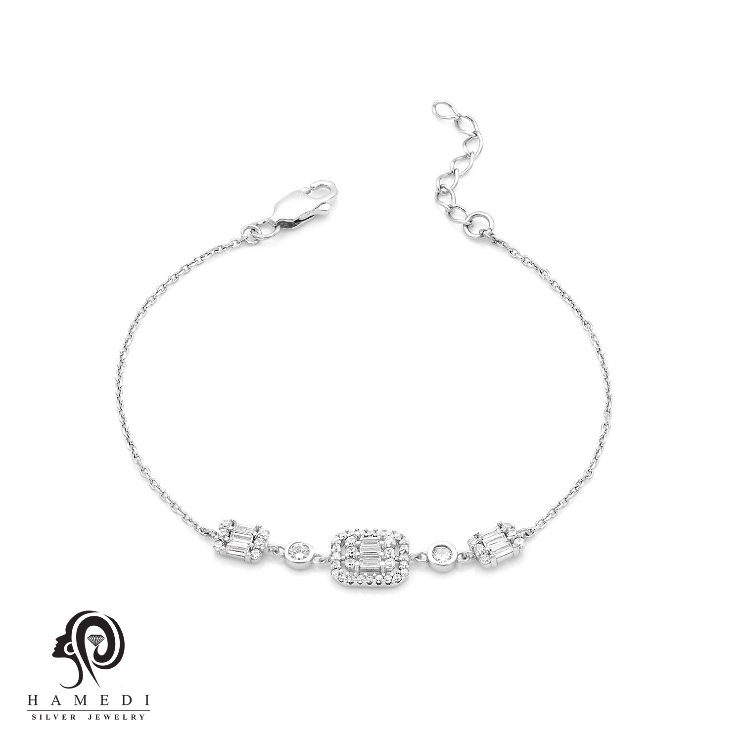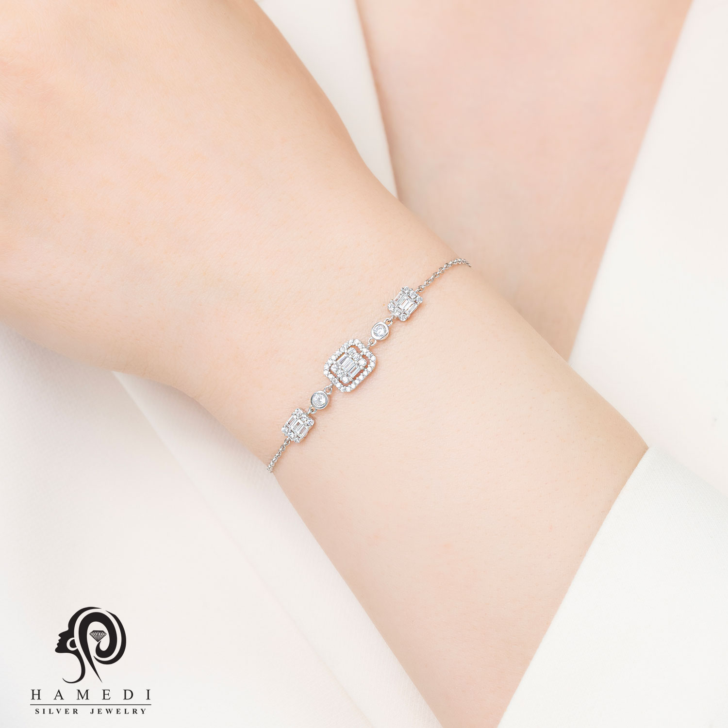 دستبند نقره زنانه امرالد کات مدل BIC E18 از ظریفترین و پرطرفدارترین دستبند های مجلسی گالری حامدی است.