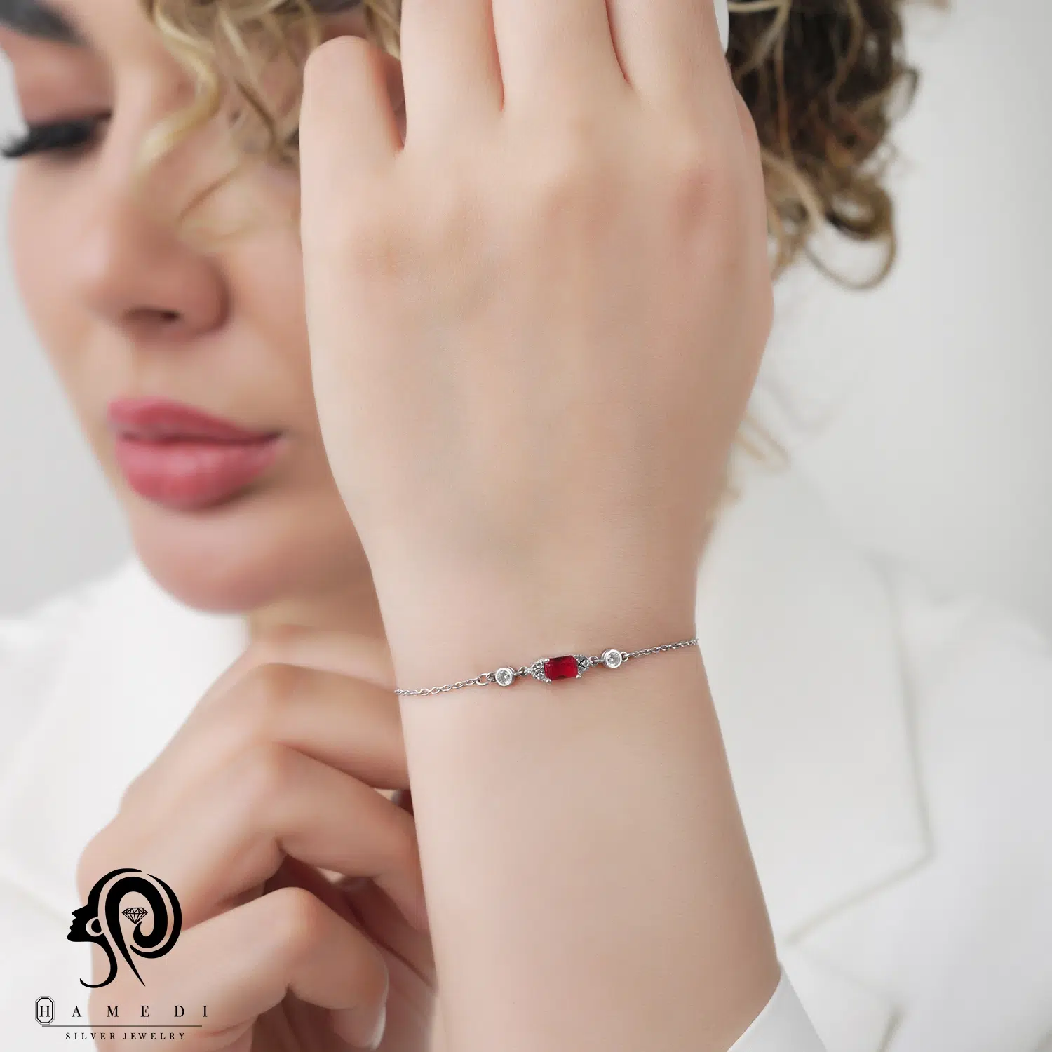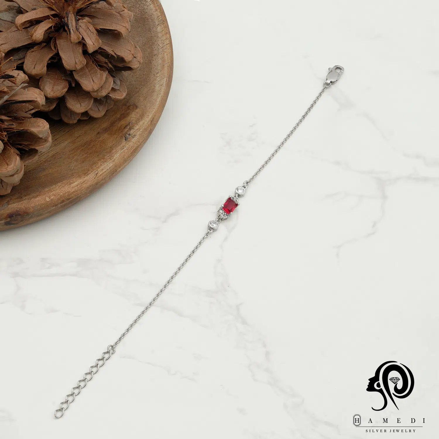 دستبند نقره زنانه نگین رنگی مدل BIC R25 از ظریفترین و پرطرفدارترین دستبند های مجلسی گالری حامدی است.