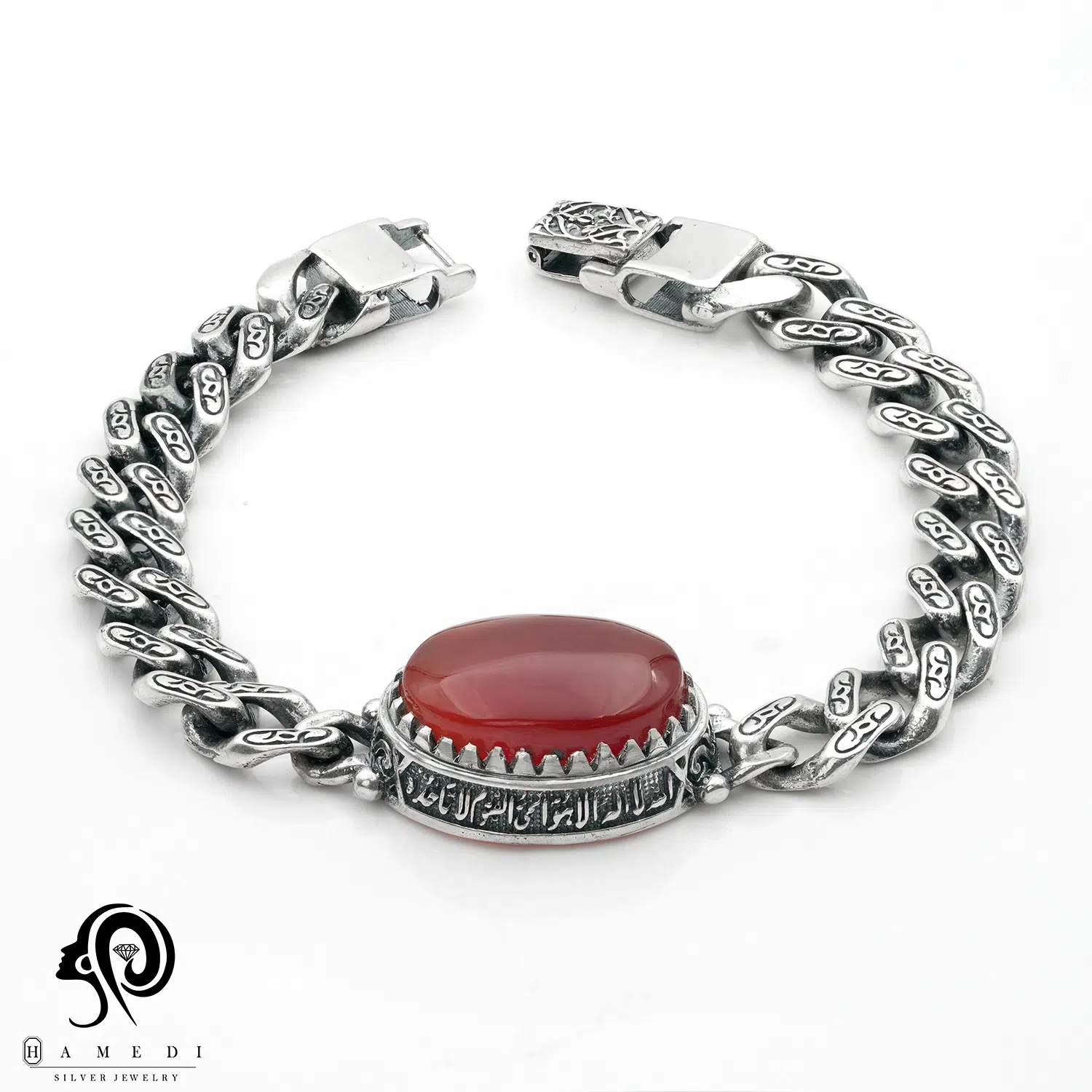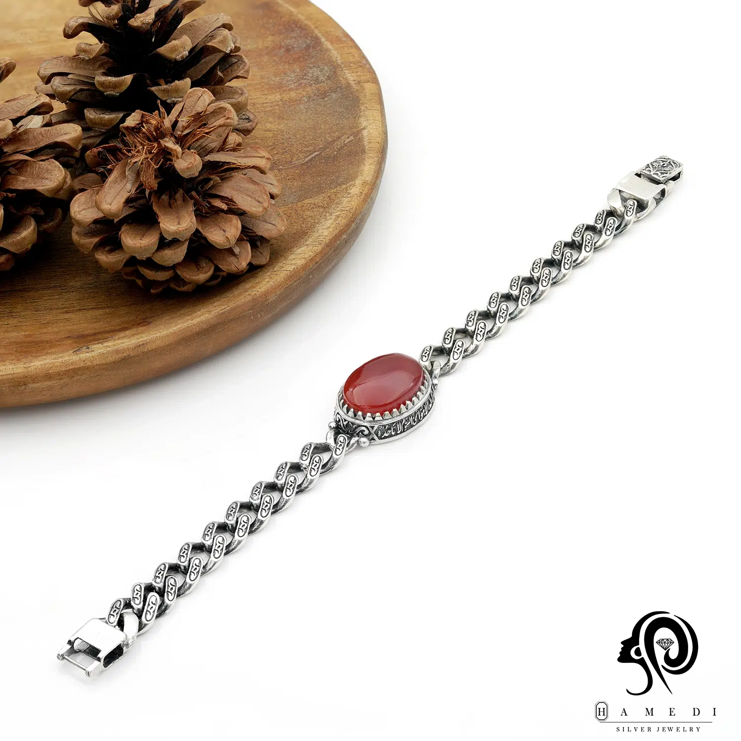 دستبند نقره مردانه سنگ عقیق مدل BIM AG1 یکی از لوکسترین و پرطرفدارترین دستبند مردانه نقره حامدی است.