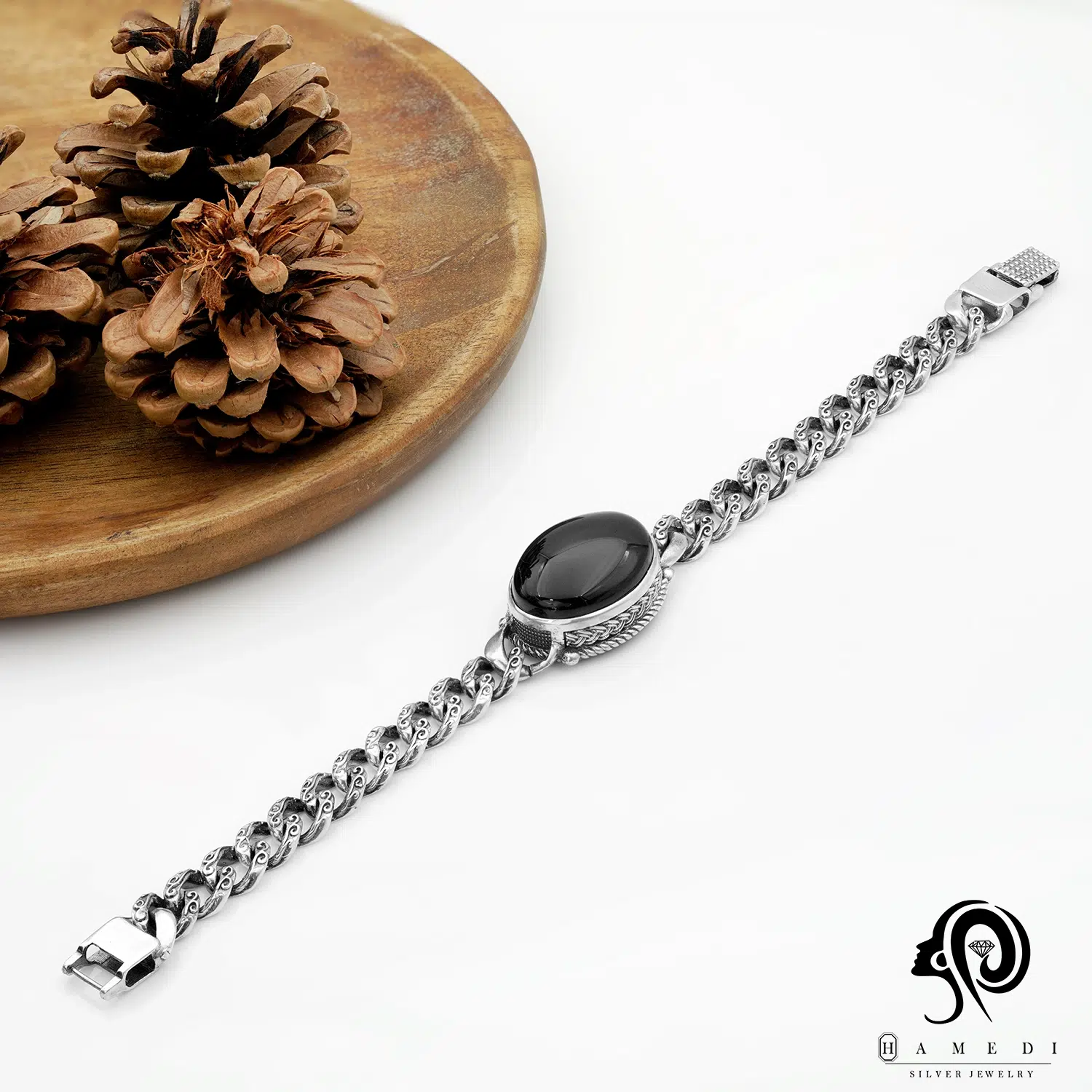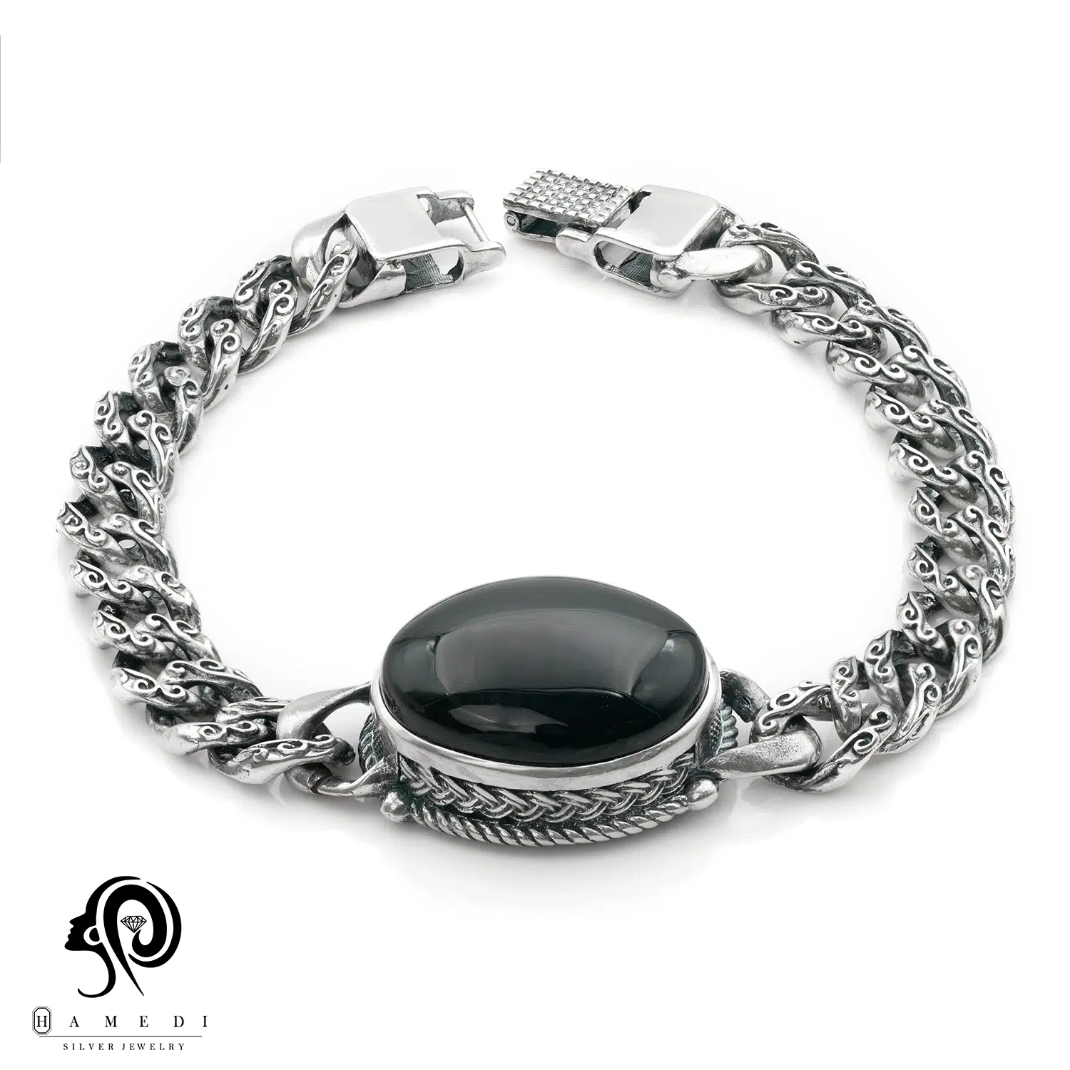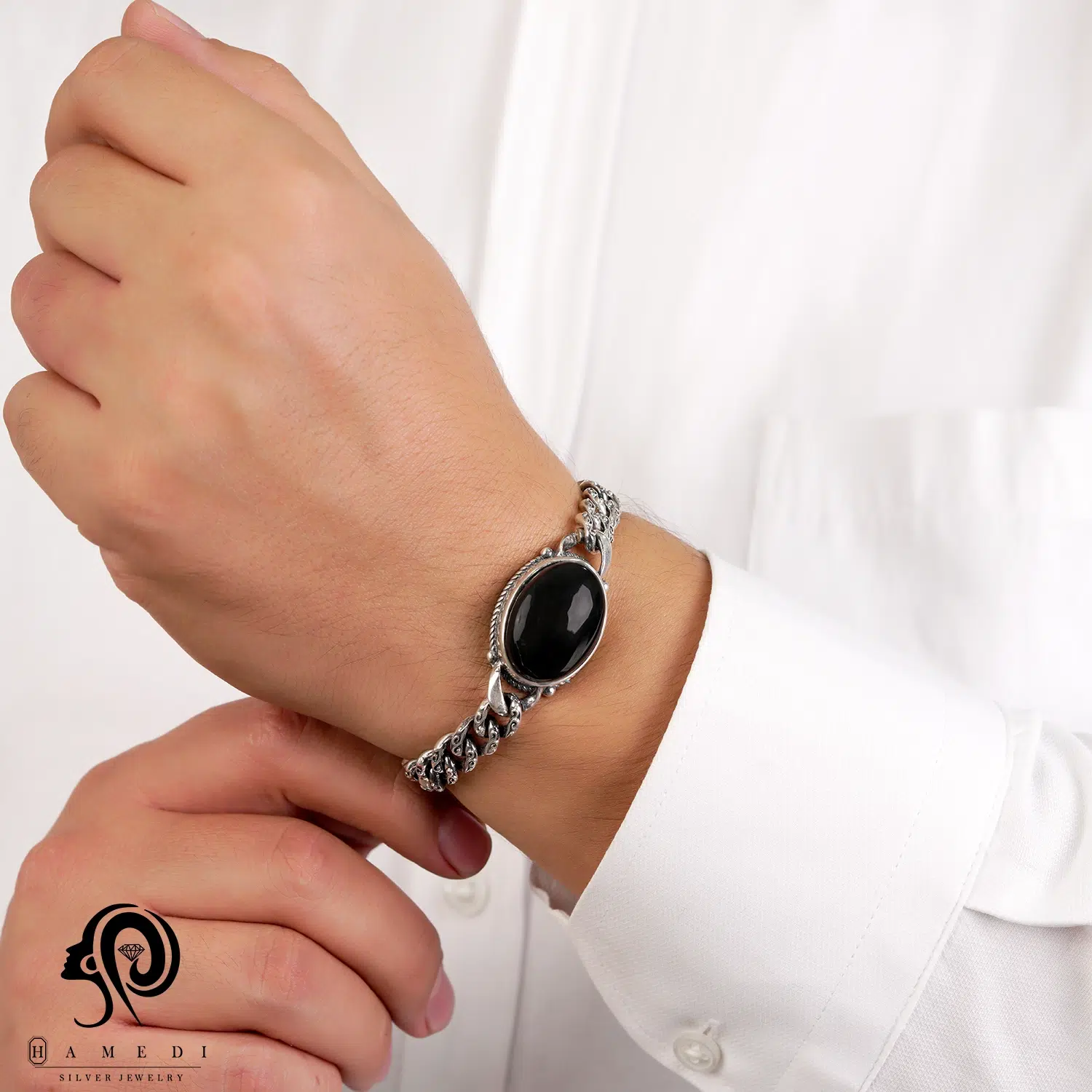 دستبند نقره مردانه سنگ عقیق مدل BIM AY1 یکی از لوکسترین و پرطرفدارترین دستبند مردانه نقره حامدی است.