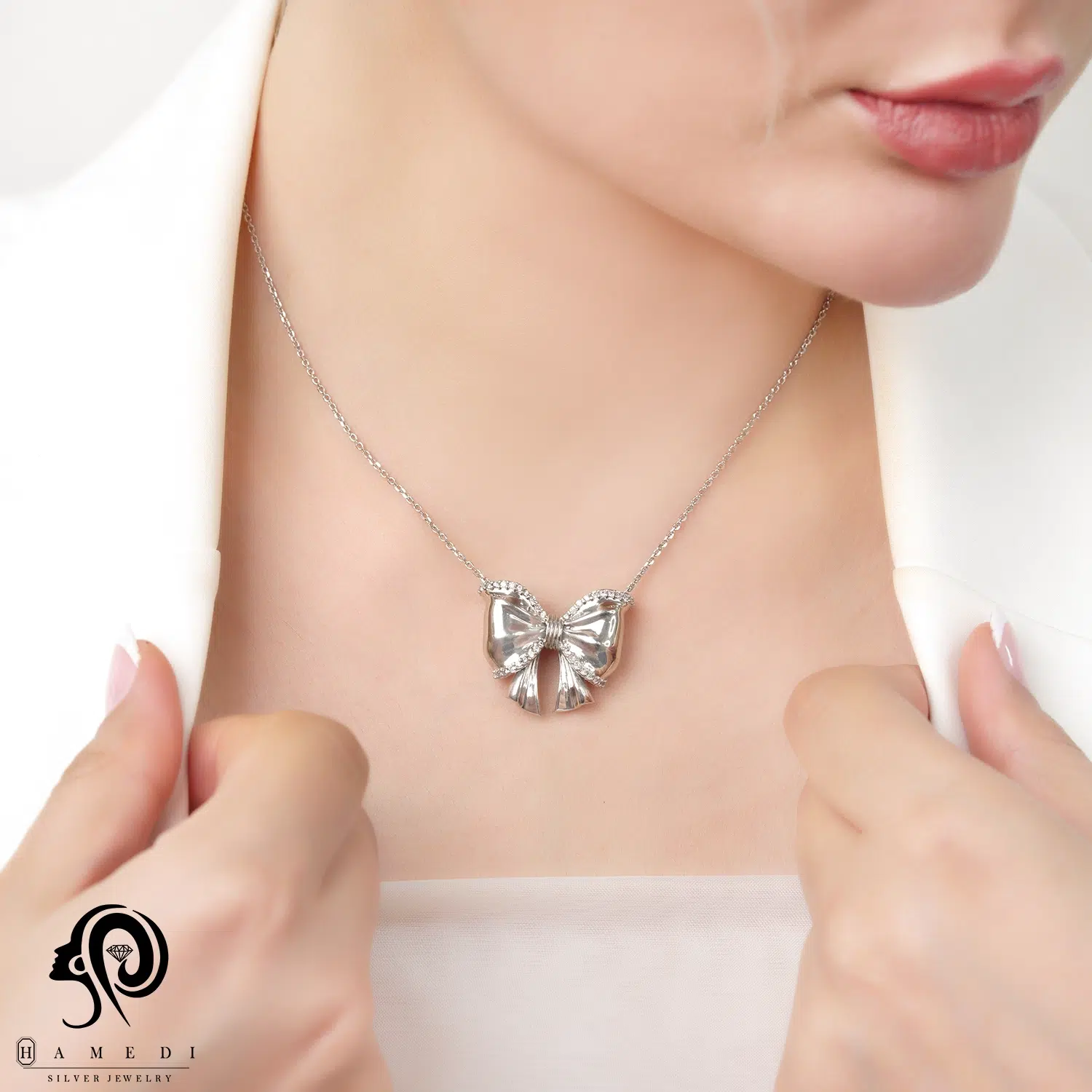 گردنبند نقره زنانه پاپیون نقره ای مدل KICR B1 به دلیل ظاهری زیبا و خاص، برای استفاده در مجموعه های مختلف از جمله مهمانی ها، مراسم عروسی، جشن تولد و حتی در روزهای عادی بسیار مناسب هستند.