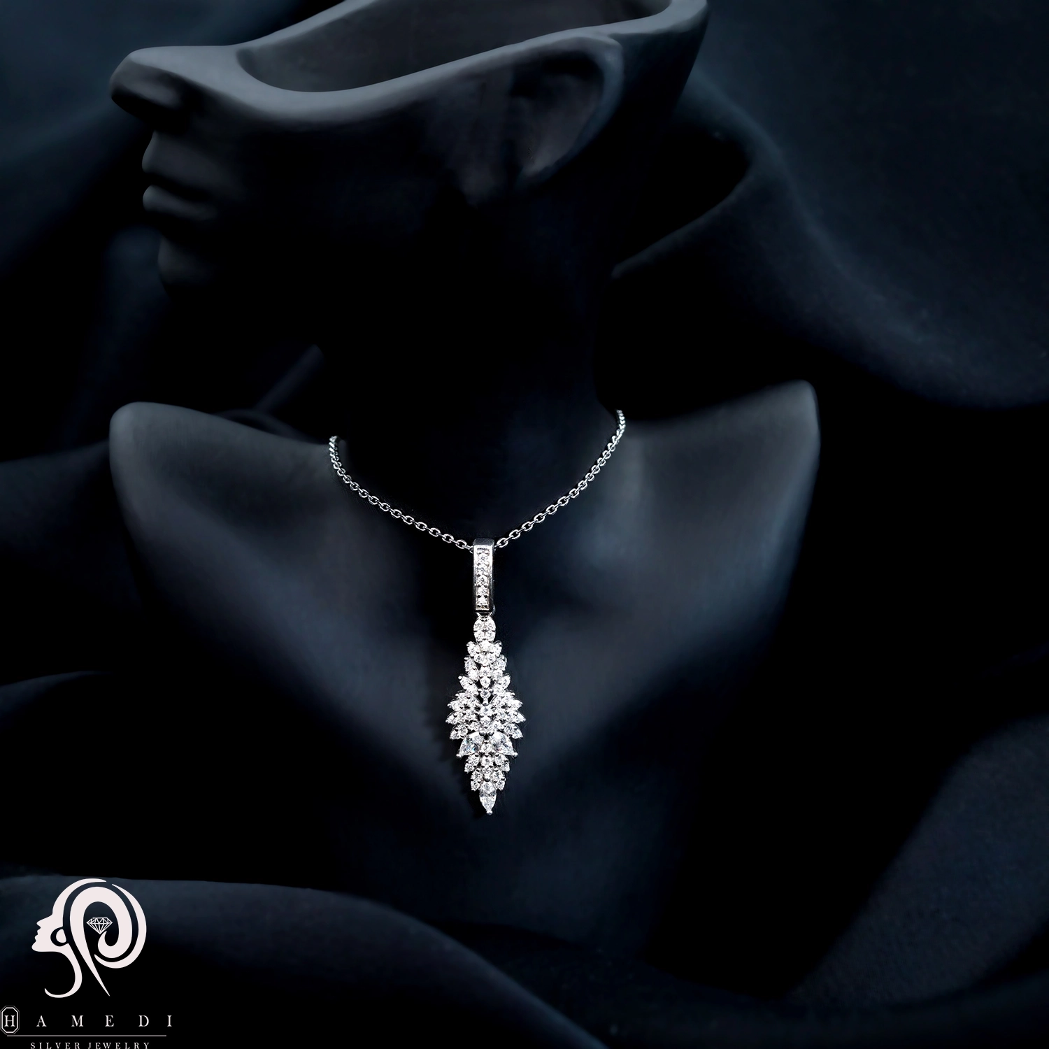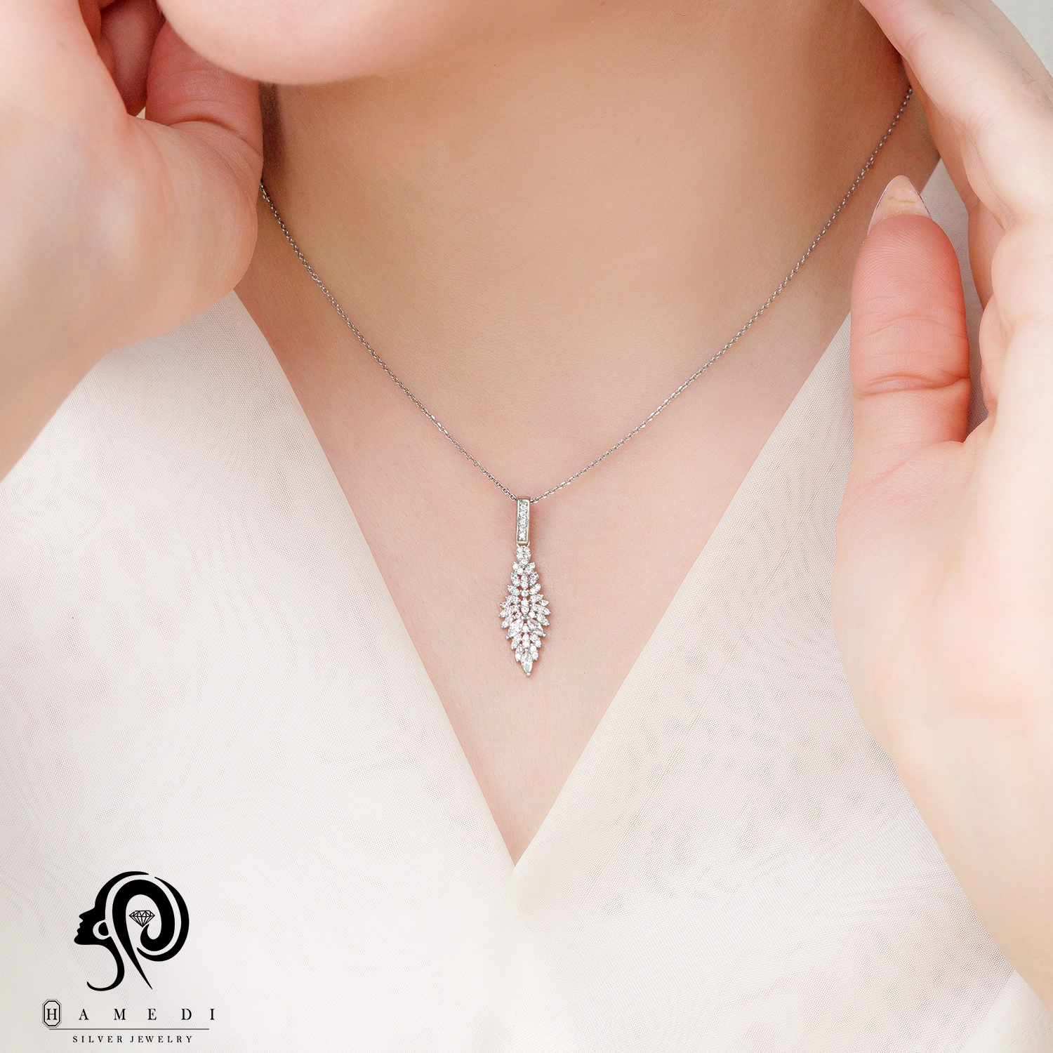مدال نقره زنانه مجلسی جواهری مدل MI K18 یکی از زیباترین و پرطرفدارترین مدال های شیک گالری حامدی است.