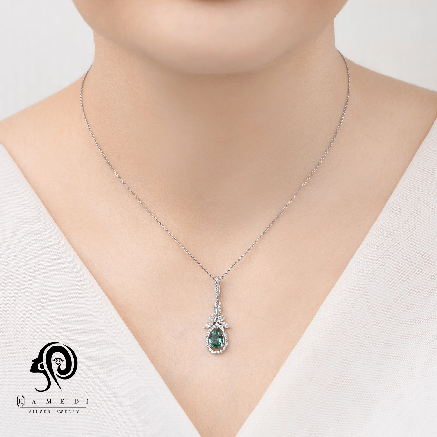 مدال نقره زنانه نگین رنگی مدل MI R26 یکی از زیباترین و پرطرفدارترین نیم ست های مجلسی گالری حامدی است.