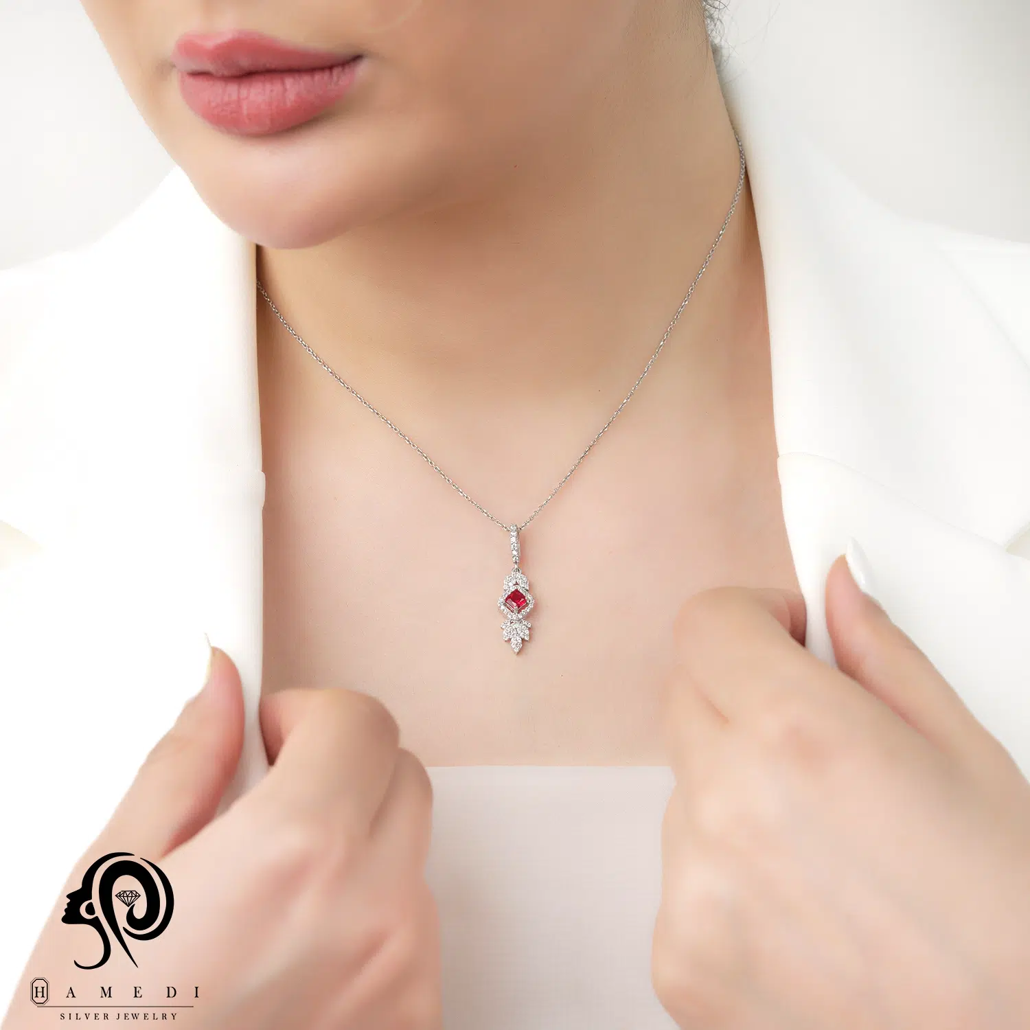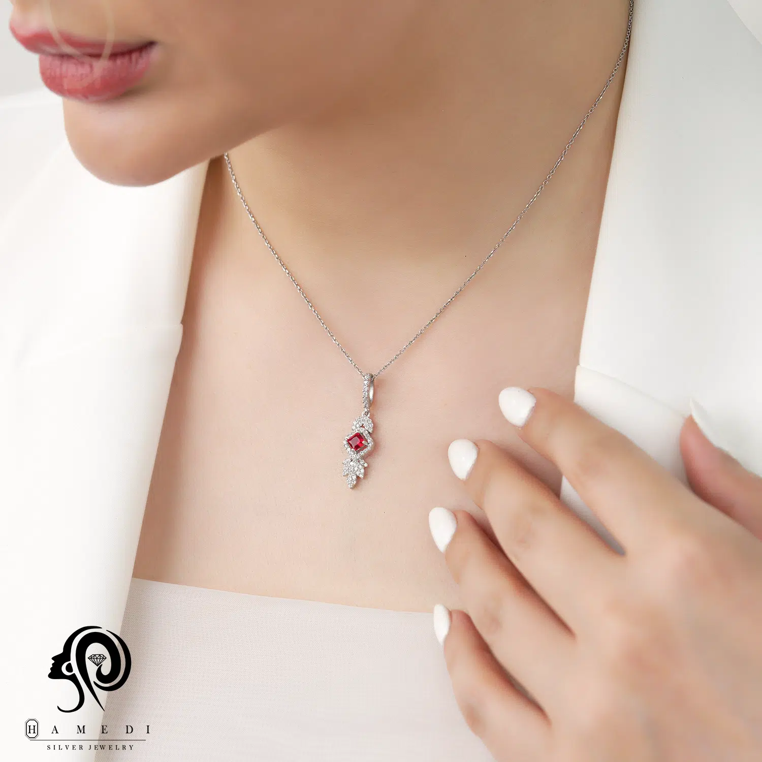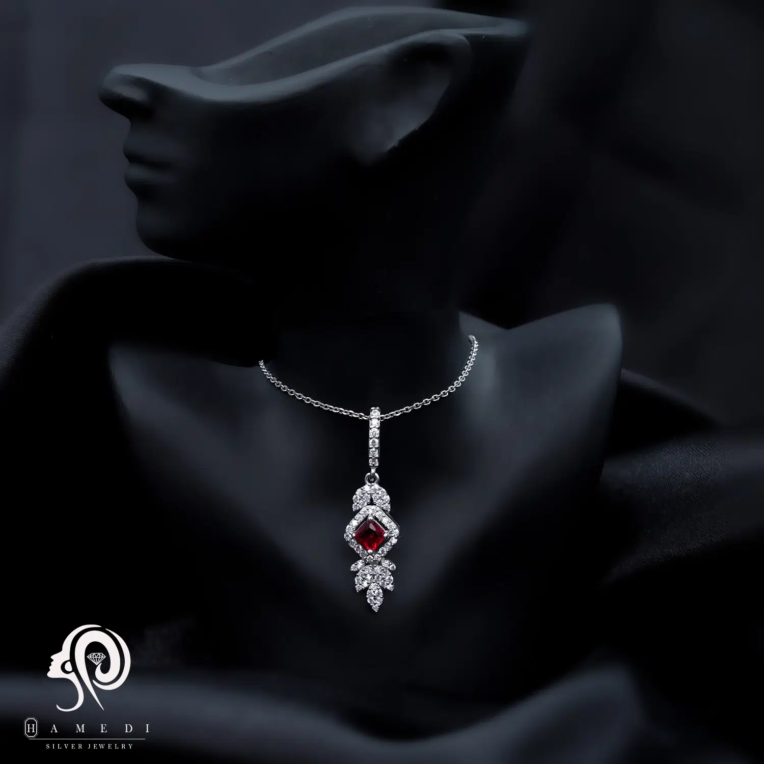 مدال نقره زنانه نگین رنگی مدل MI R36 یکی از زیباترین و پرطرفدارترین مدال های شیک گالری حامدی است.