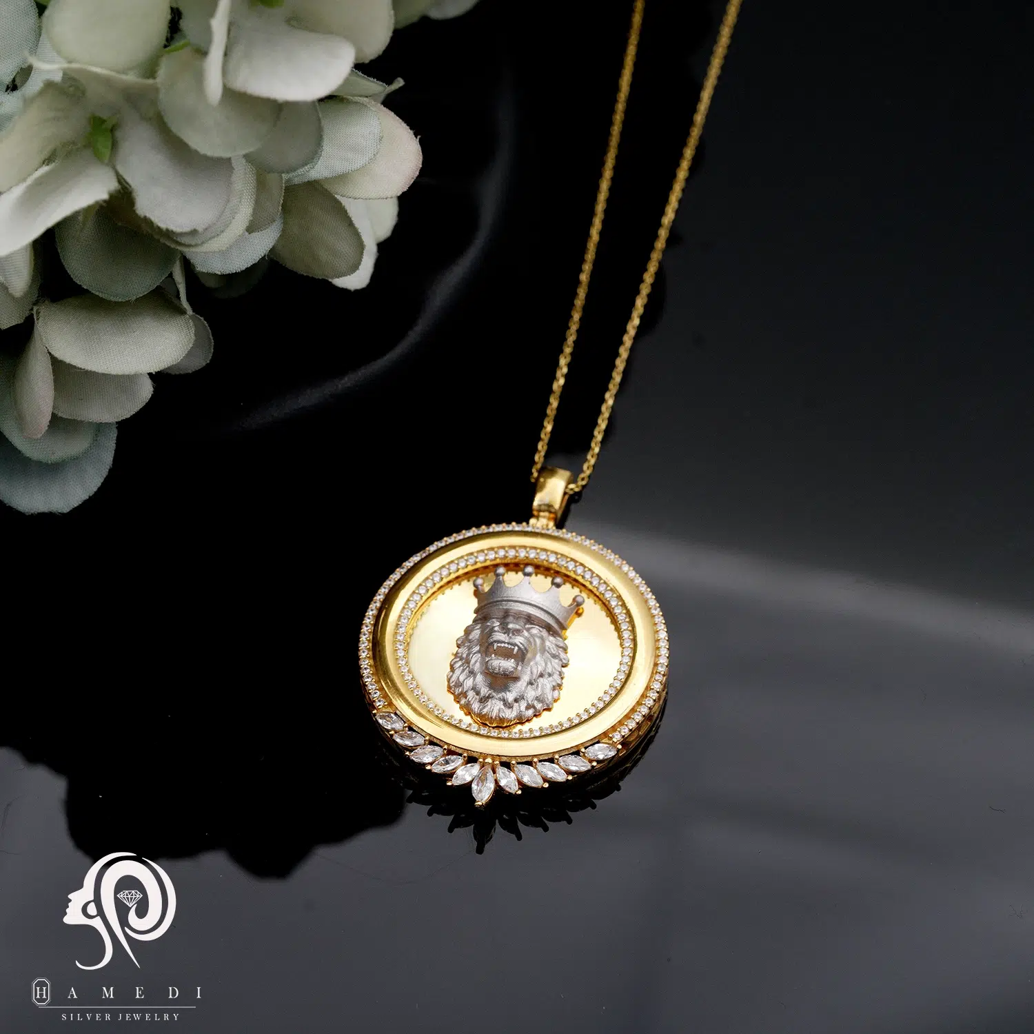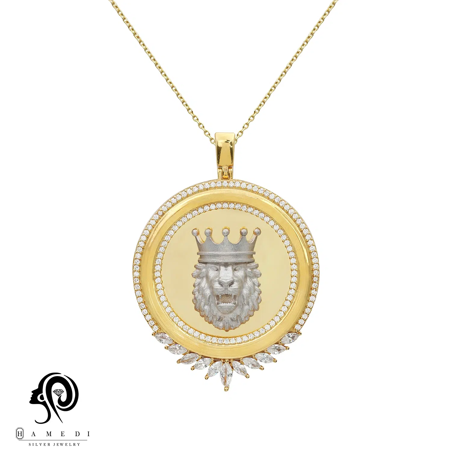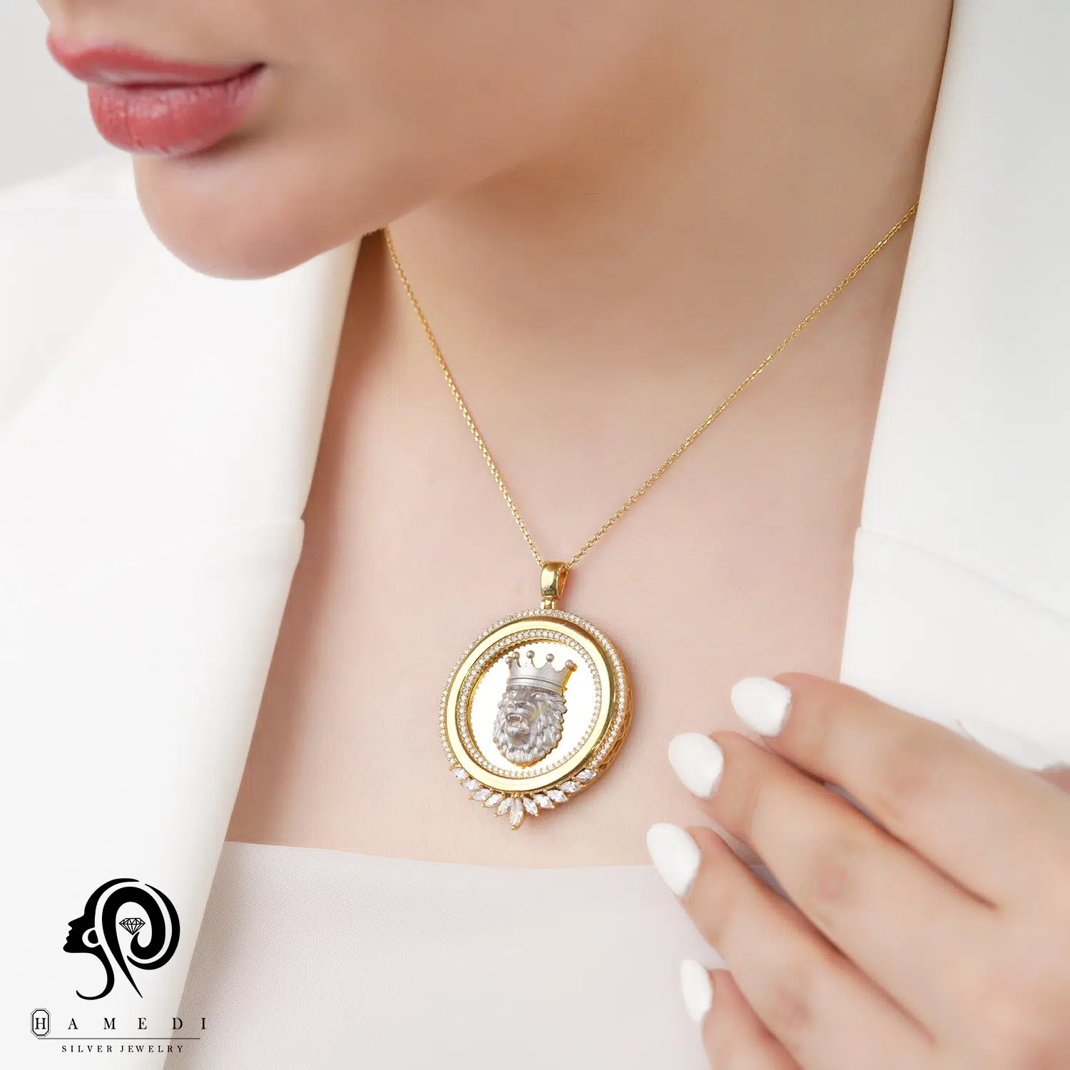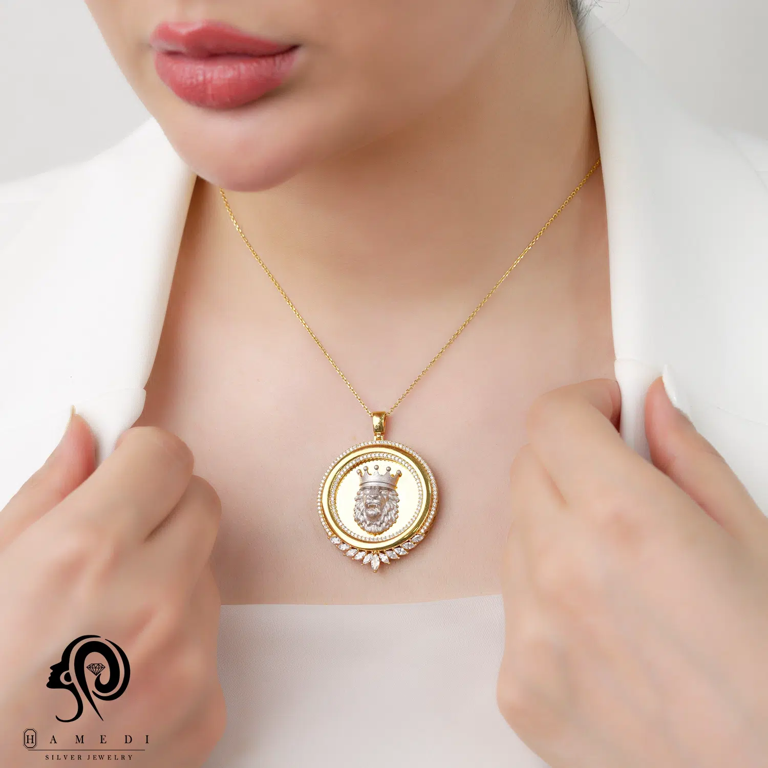مدال نقره زنانه ورساچه طرح شیر MIV K4 T یکی از زیباترین و پرطرفدارترین مدال های شیک گالری حامدی است.