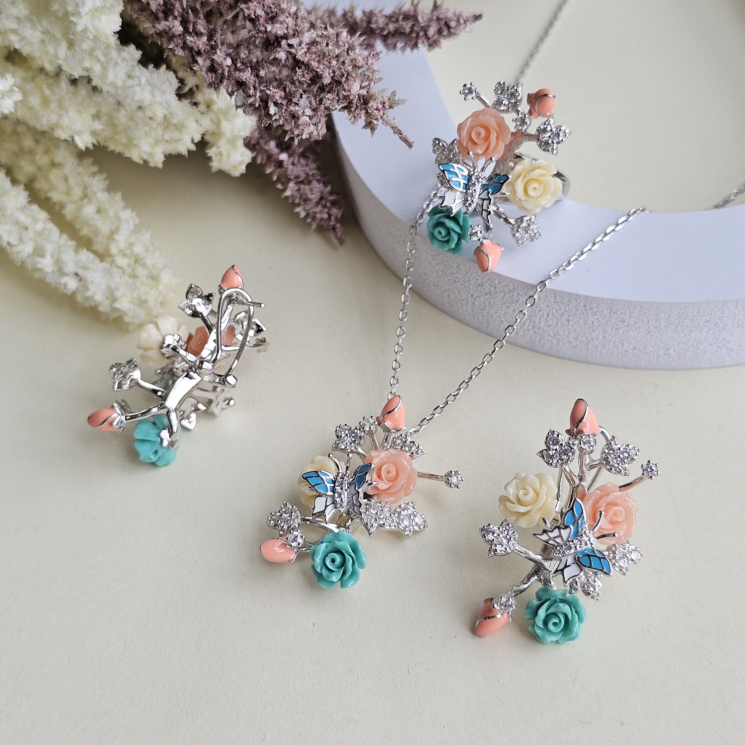 اقلام این ست وارداتی خاص گردنبند و انگشتر و گوشواره هست که شما میتوانید فقط انگشتر این محصول را از دسته زیورالات صدفی خرید نمایید.