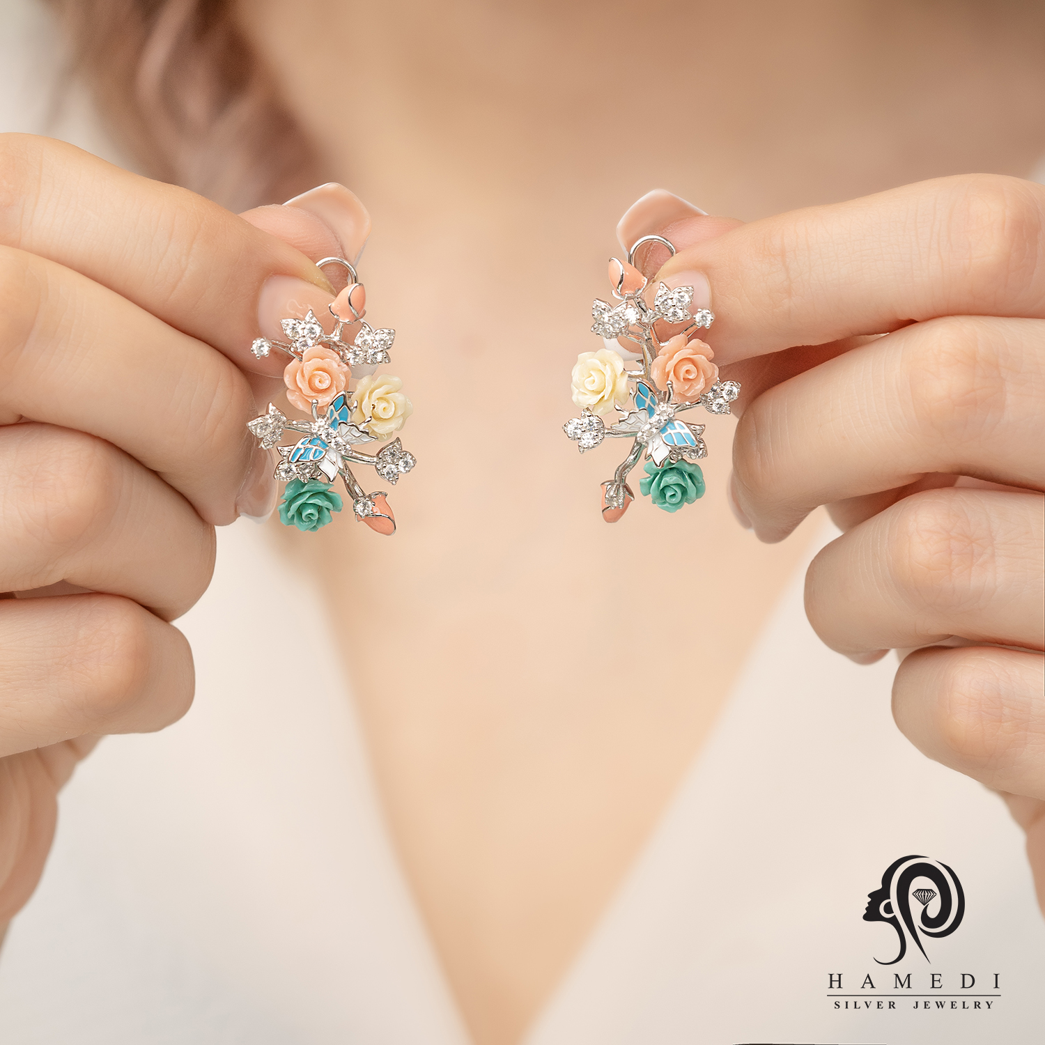 نیم ست صدفی نقره زنانه مدل NE C8 یکی از ست های شیک و زیبا نقره حامدی است.