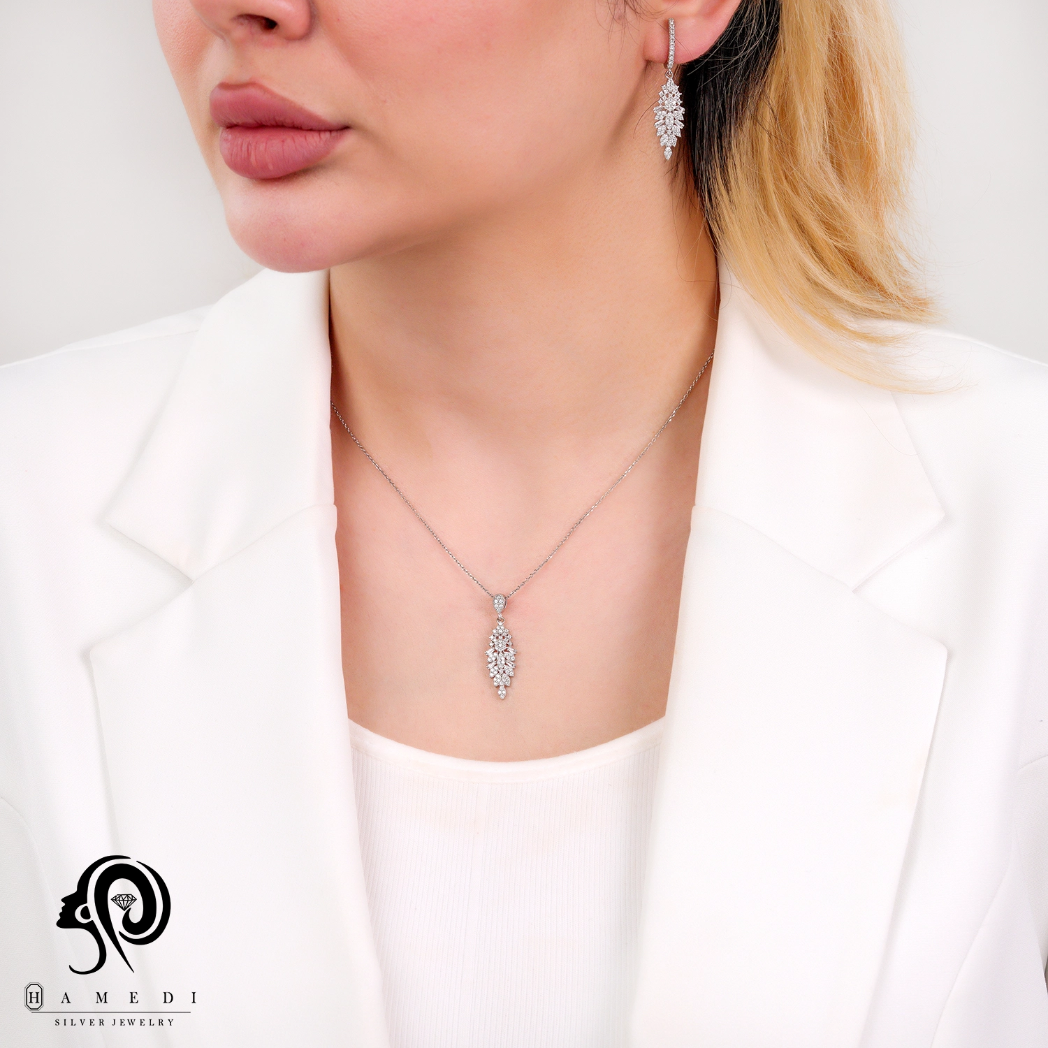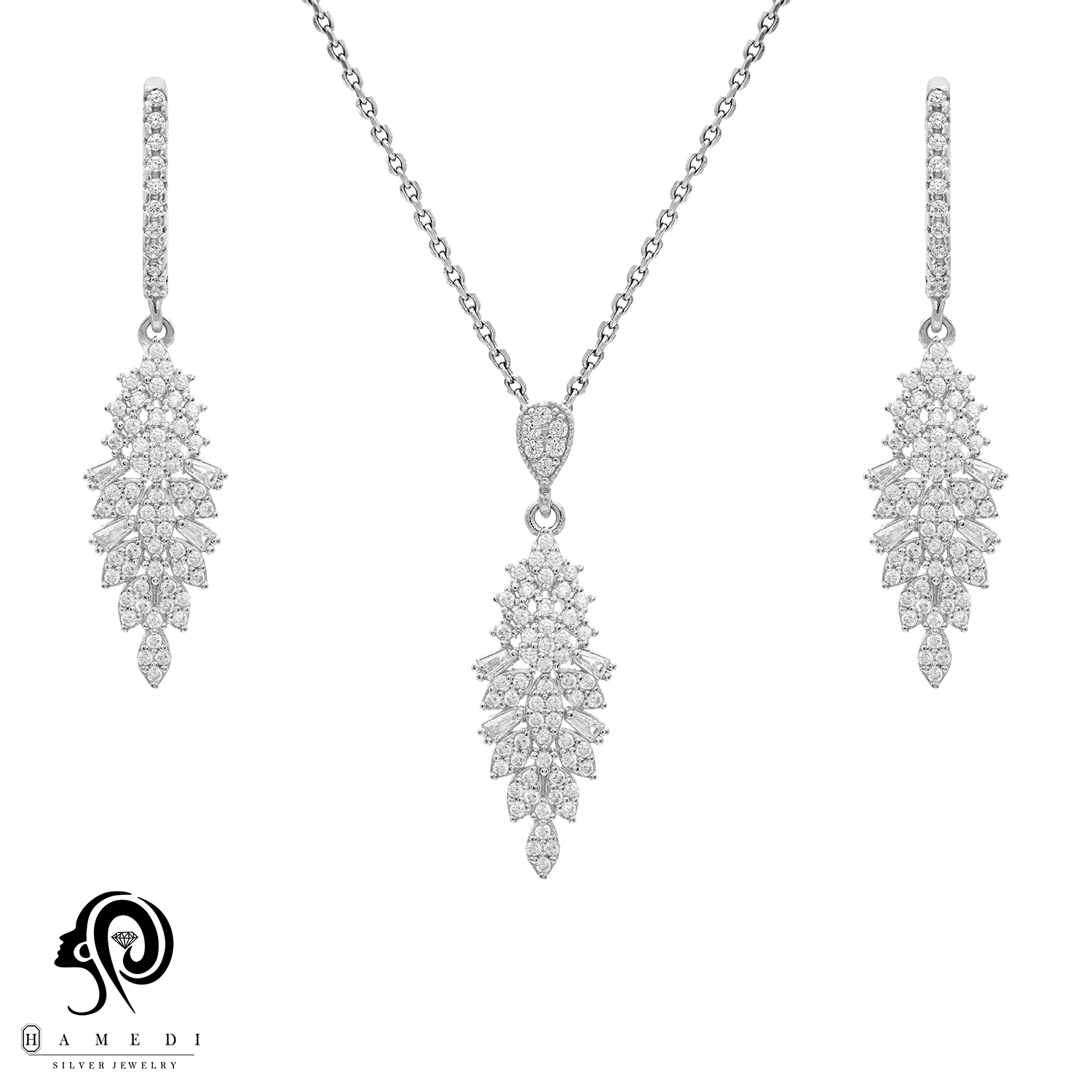 نیم ست نقره زنانه جواهری مجلسی مدل NI F22 یکی از زیباترین و پرطرفدارترین نیم ست های مجلسی گالری حامدی است.