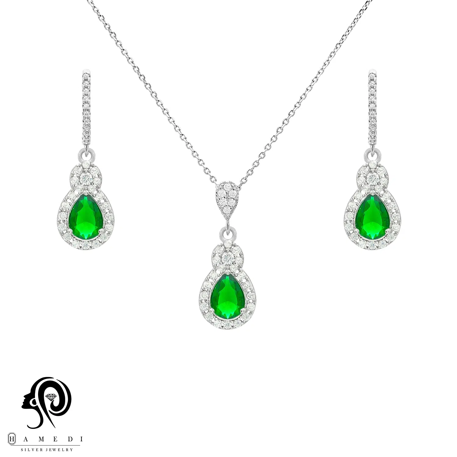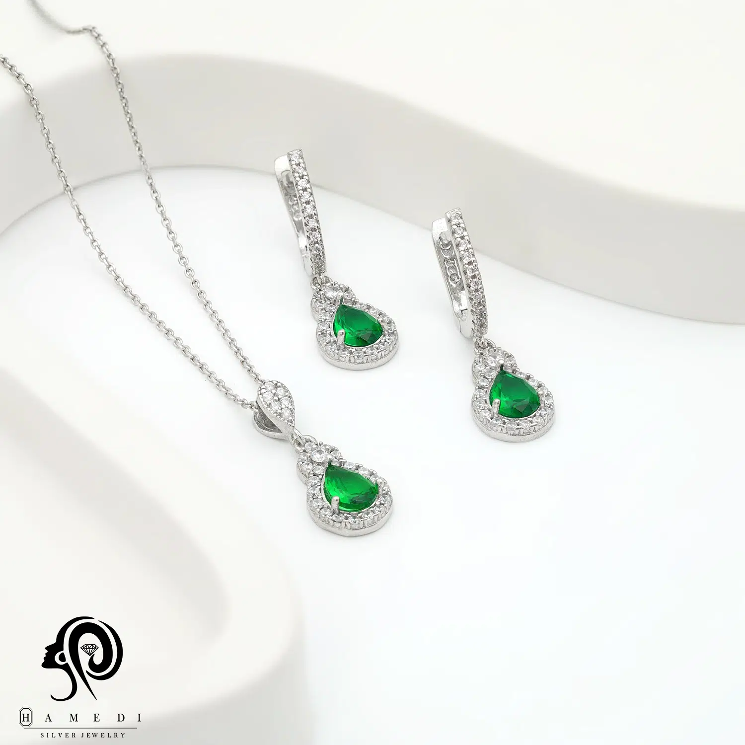 نیم ست نقره زنانه نگین رنگی مدل NI R88 یکی از زیباترین و پرطرفدارترین نیم ست های مجلسی گالری حامدی است.