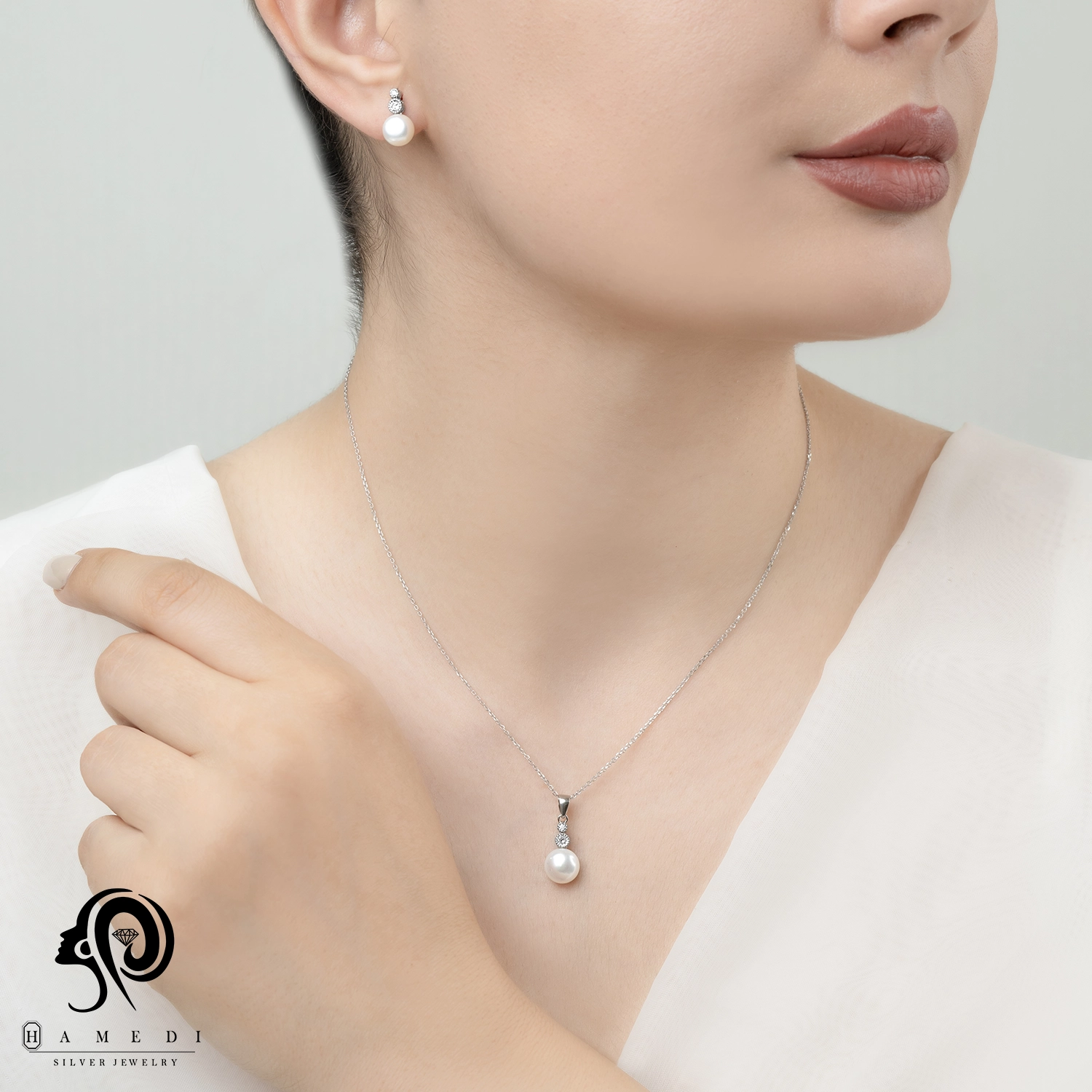 نیم ست نقره زنانه مروارید اسپرتی مدل NI Y7 یکی از زیباترین و پرطرفدارترین نیم ست های مجلسی گالری حامدی است.