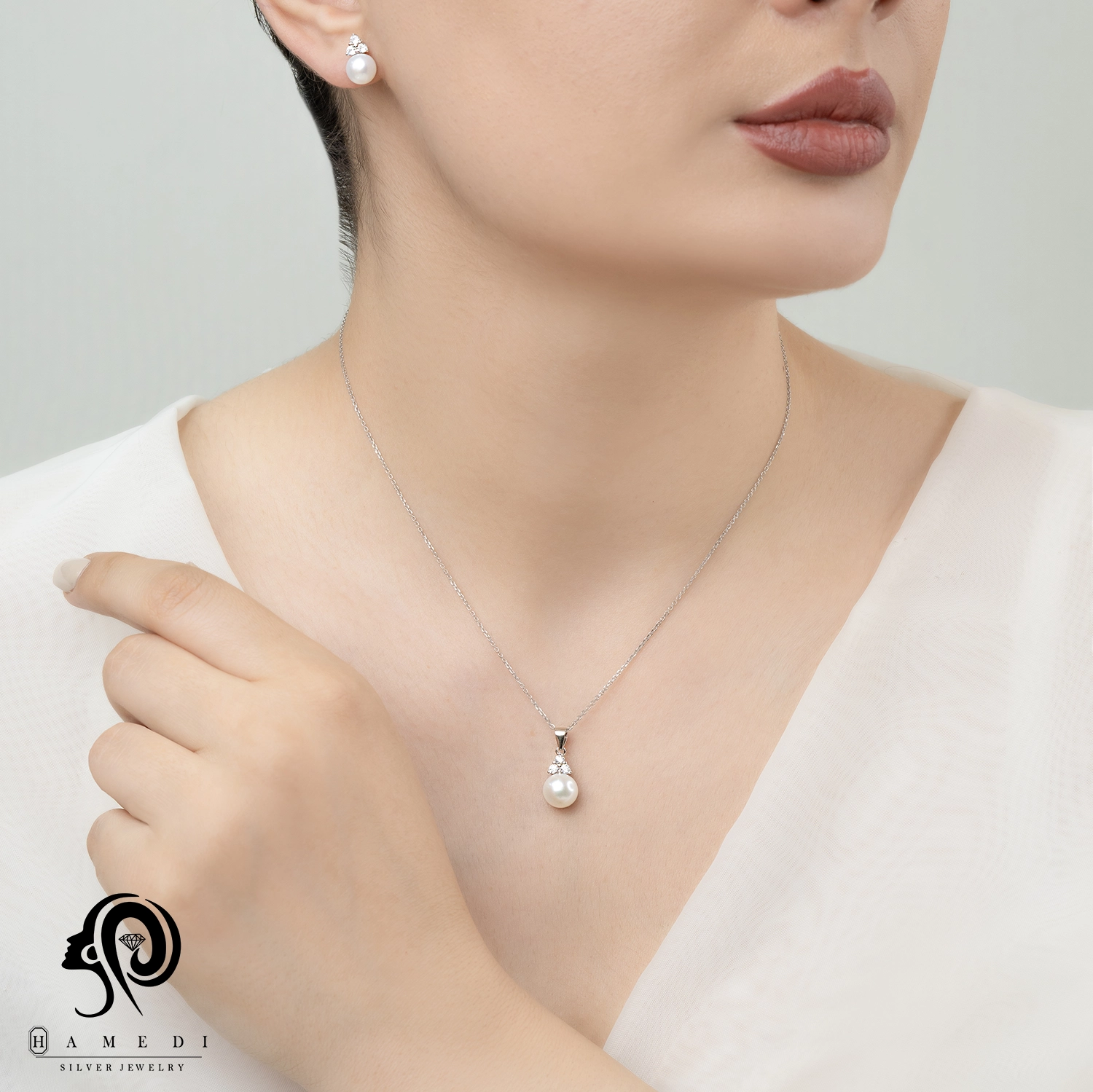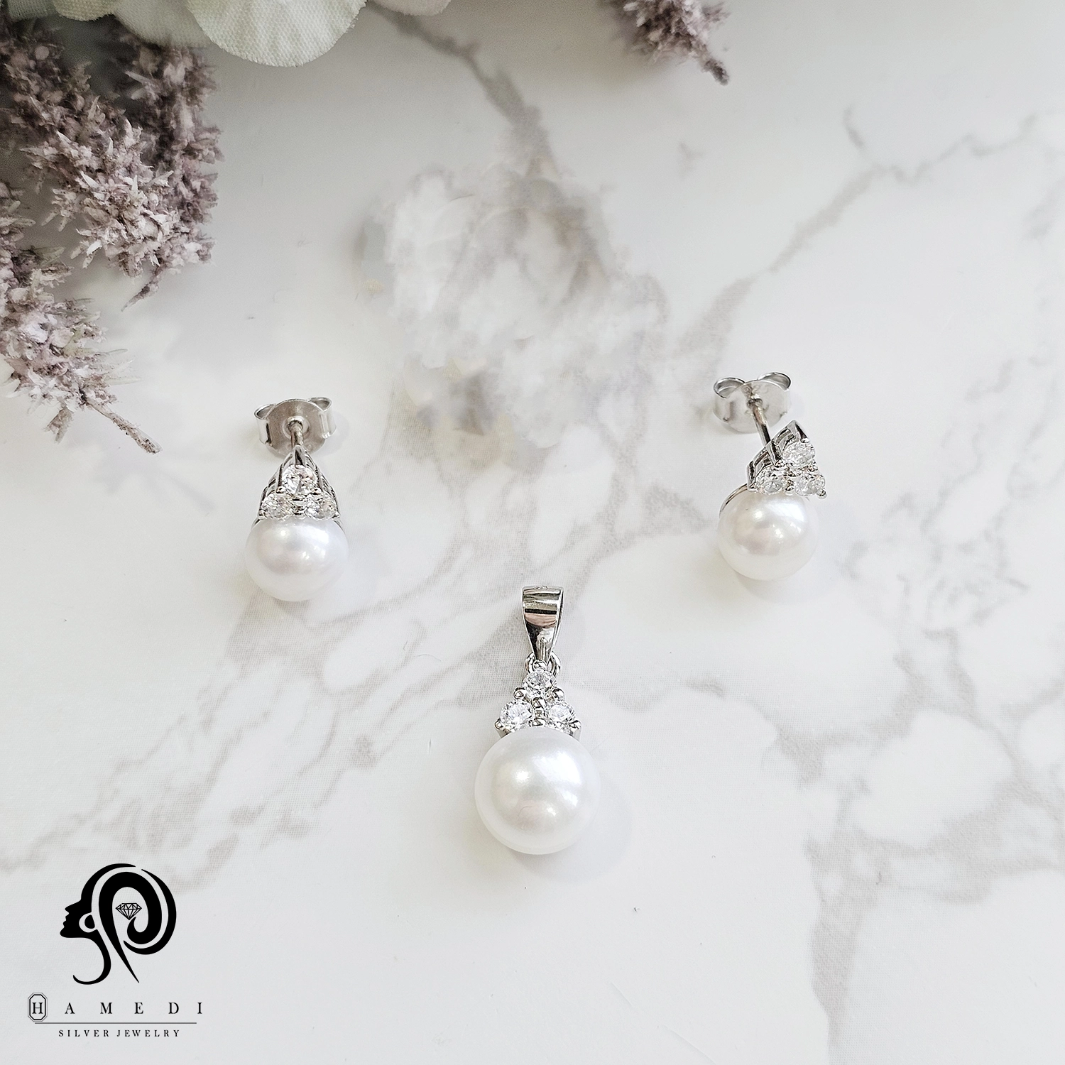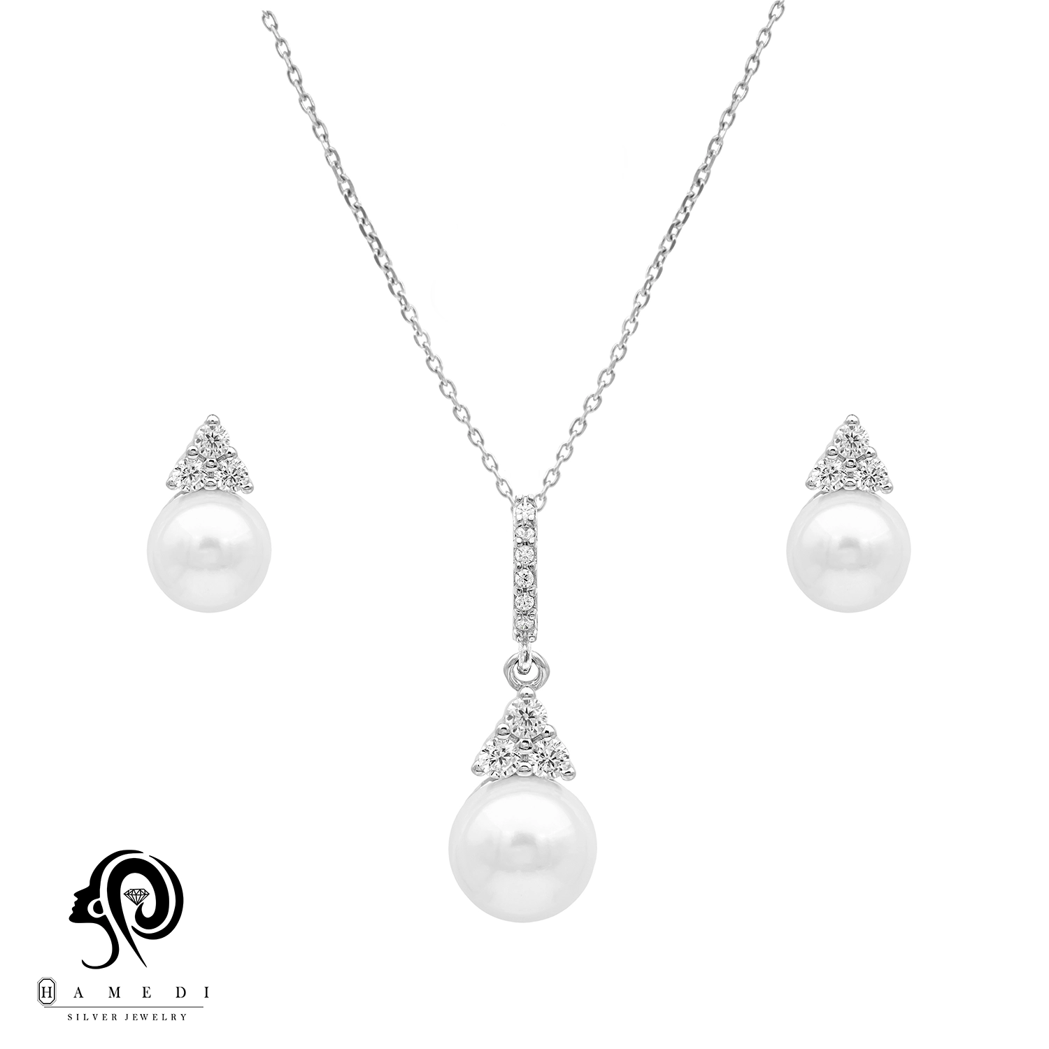 نیم ست نقره زنانه مروارید اسپرتی مدل NI Y8 یکی از زیباترین و پرطرفدارترین نیم ست های مجلسی گالری حامدی است.