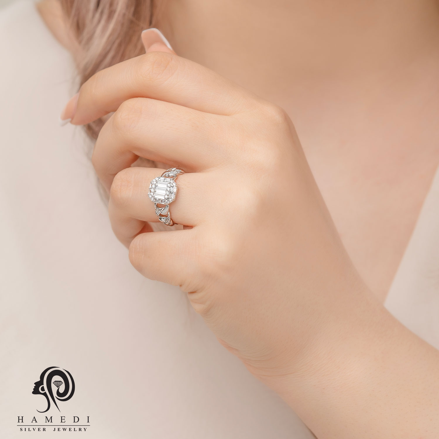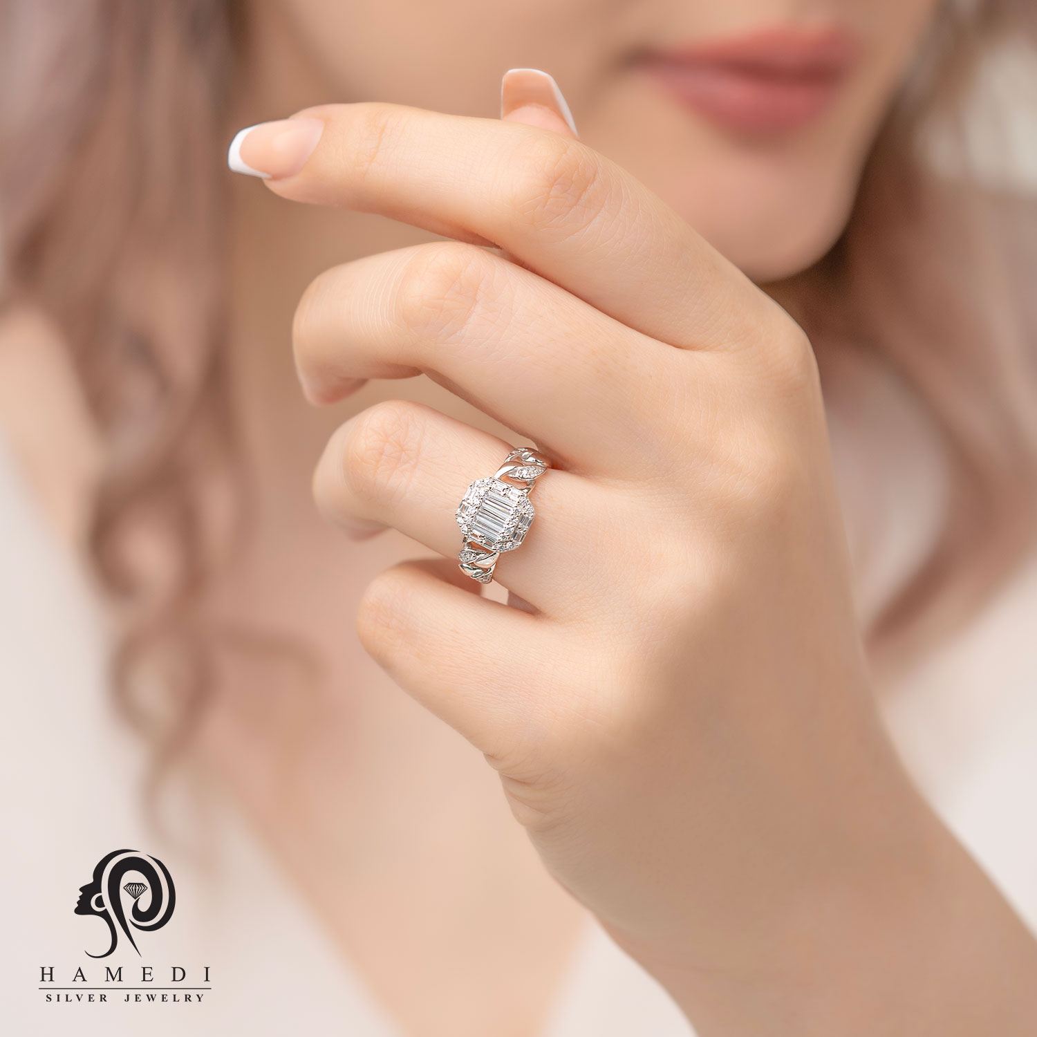 انگشتر نقره زنانه ایتالیایی مدل RE E73 یکی از لوکسترین و پرطرفدارترین انگشتر های مجلسی گالری حامدی است.