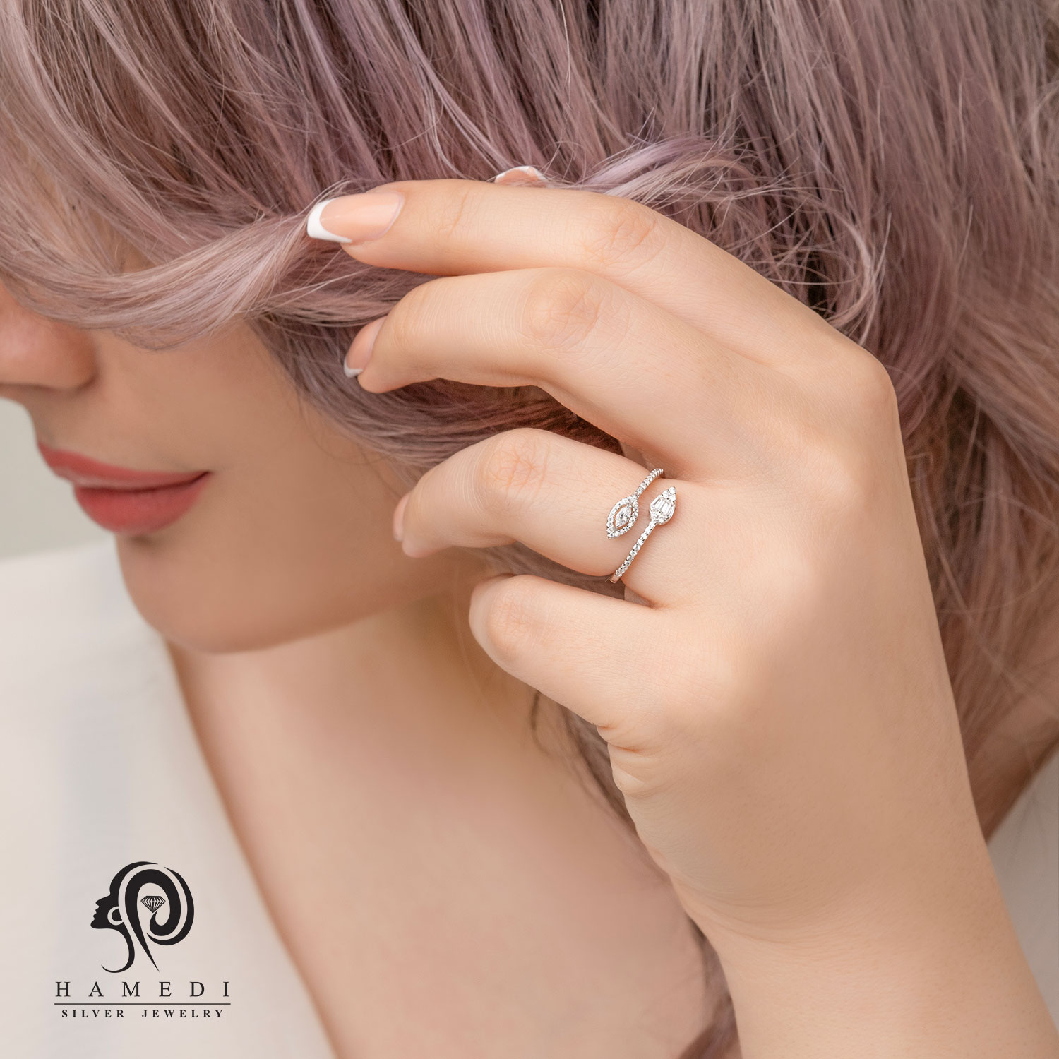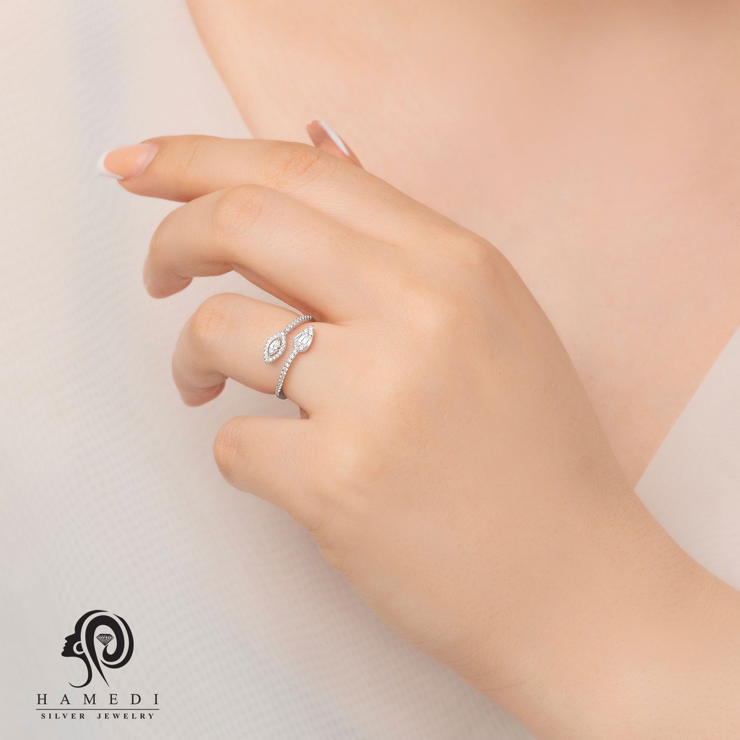 انگشتر نقره زنانه ایتالیایی مدل RE S40 یکی از لوکسترین و پرطرفدارترین انگشتر های مجلسی گالری حامدی است.