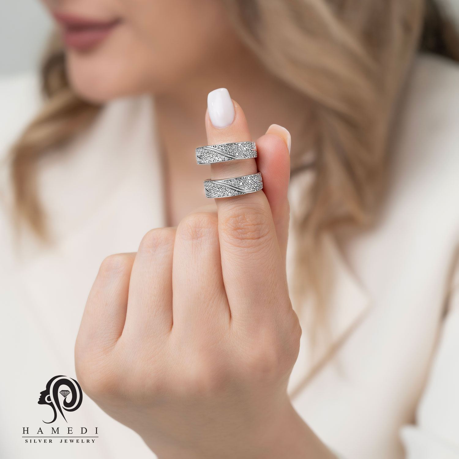 انگشتر نقره ست زنانه و مردانه مدل RI B14 یکی از لوکسترین و پرطرفدارترین انگشتر های مجلسی گالری حامدی است.