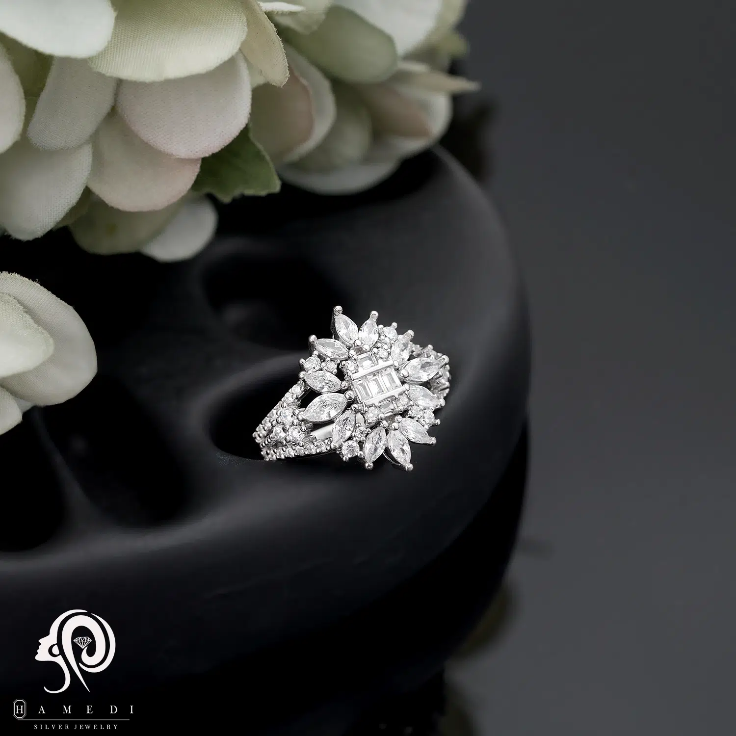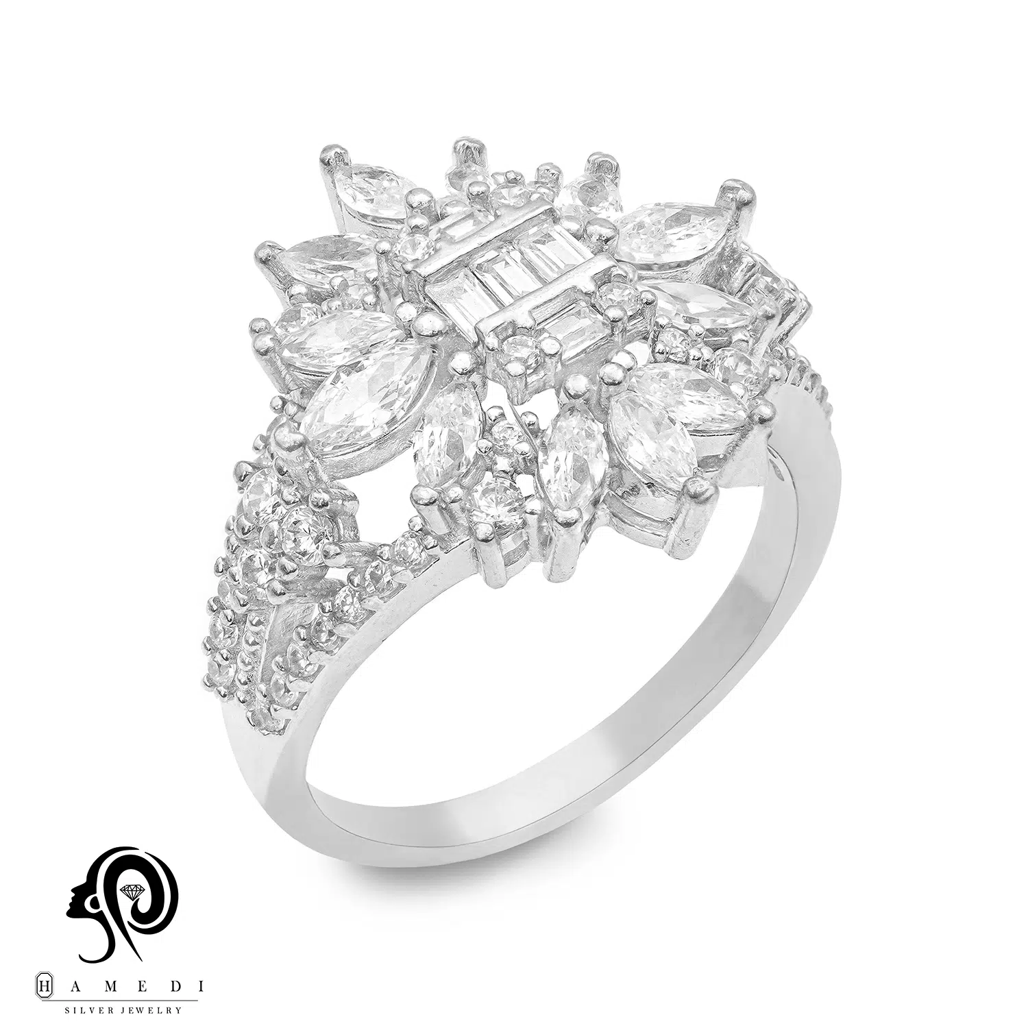 انگشتر نقره زنانه مجلسی جواهری مدل RI D13 یک اکسسوری زیبا و شیک است که در انواع طرح های مختلف تولید و عرضه می شود. این محصول دارای طرحی منحصر به فرد و خاصی می باشند تا مشتریان بتوانند به راحتی طرح مورد نظر خود را خریداری نمایند.