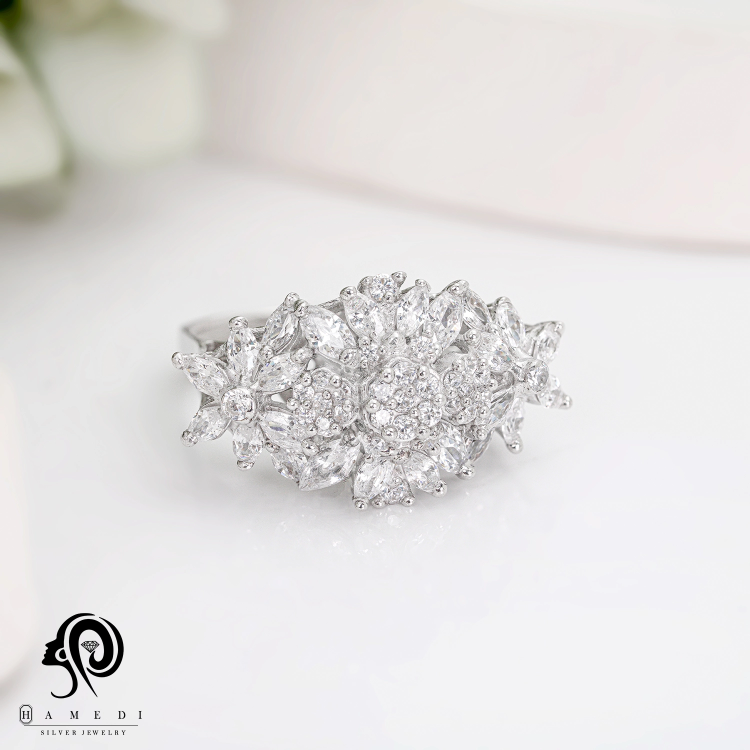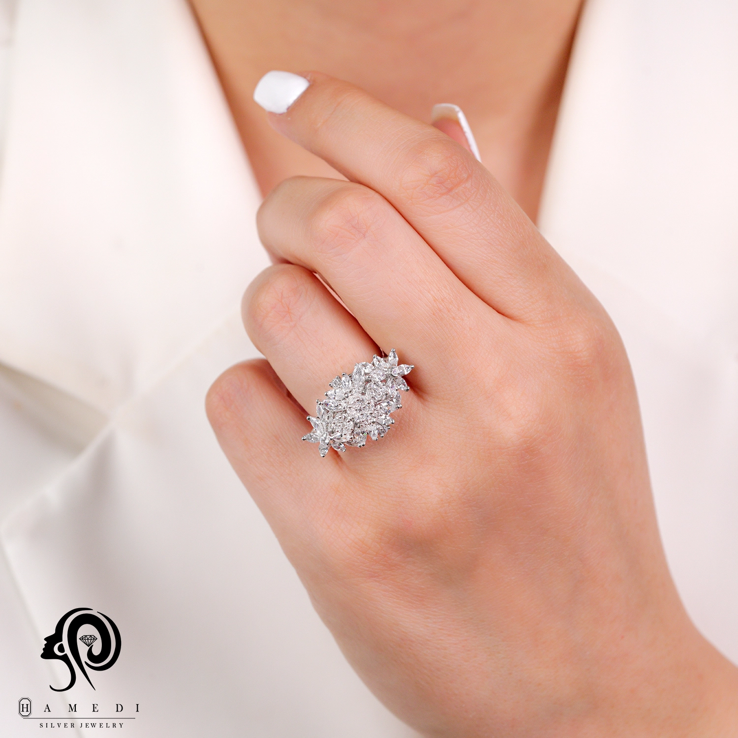 انگشتر نقره زنانه مجلسی جواهری مدل RI F65 یک اکسسوری زیبا و شیک است که در انواع طرح های مختلف تولید و عرضه می شود. این محصول دارای طرحی منحصر به فرد و خاصی می باشند تا مشتریان بتوانند به راحتی طرح مورد نظر خود را خریداری نمایند.
