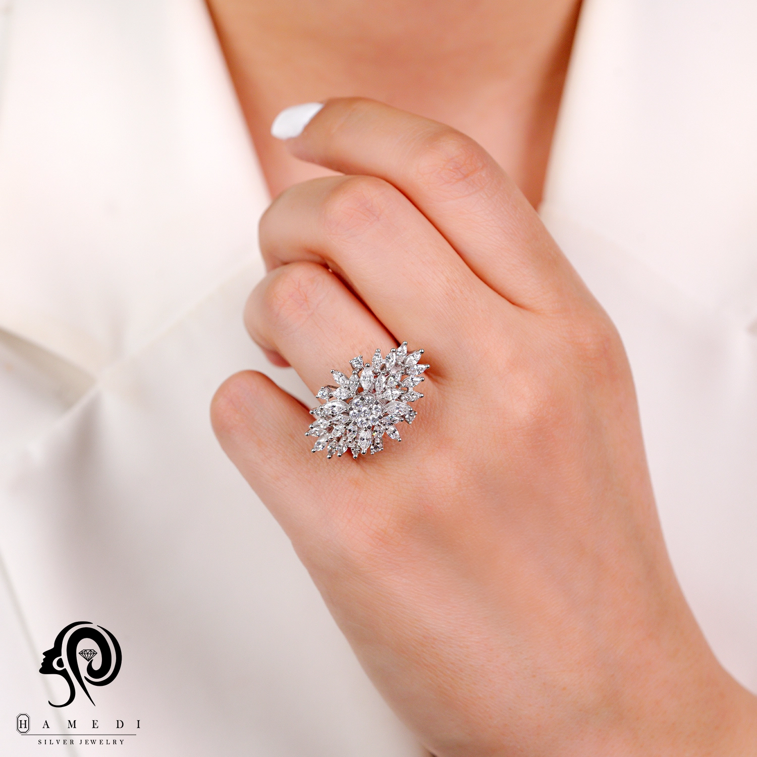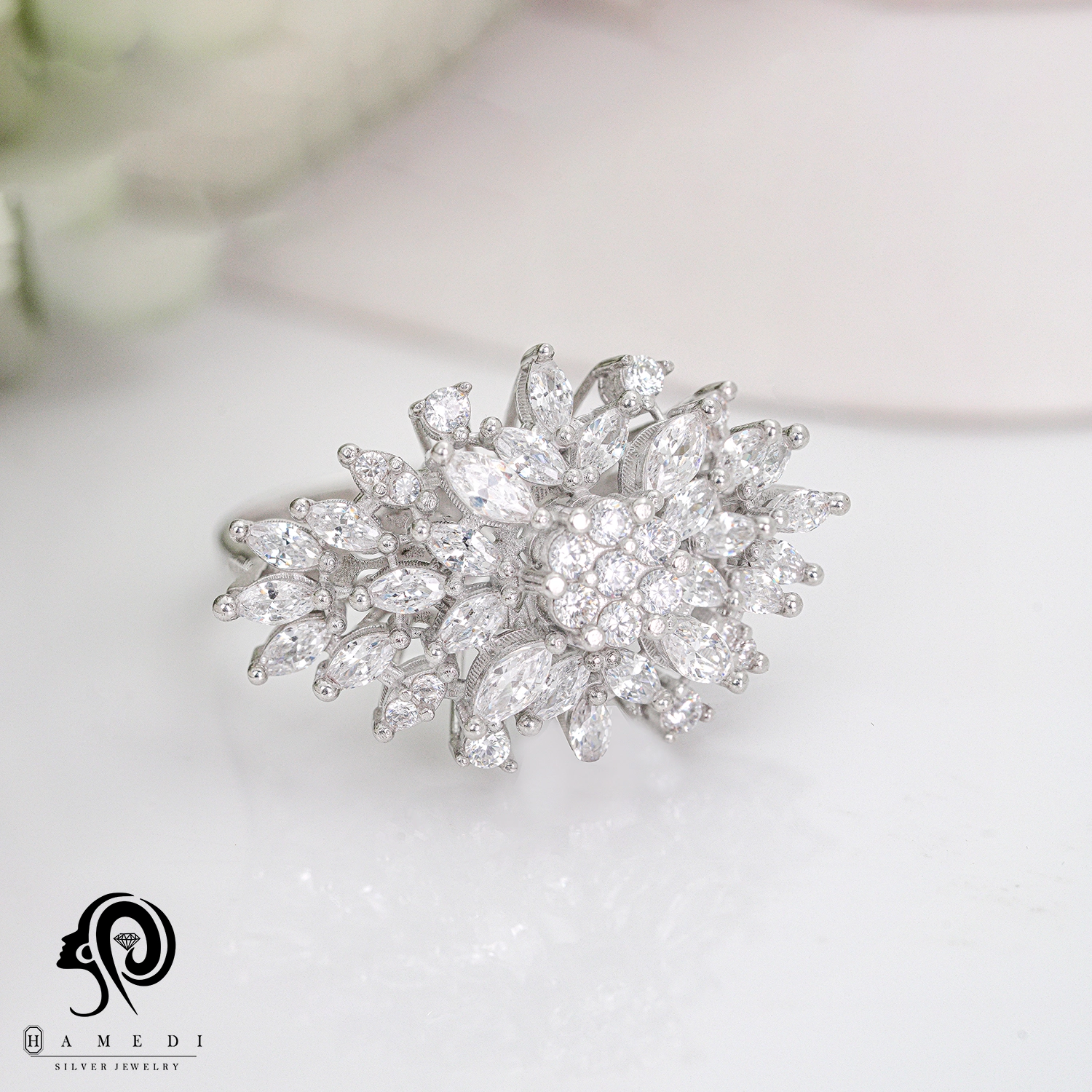 انگشتر نقره زنانه مجلسی جواهری مدل RI F67 یک اکسسوری زیبا و شیک است که در انواع طرح های مختلف تولید و عرضه می شود. این محصول دارای طرحی منحصر به فرد و خاصی می باشند تا مشتریان بتوانند به راحتی طرح مورد نظر خود را خریداری نمایند.