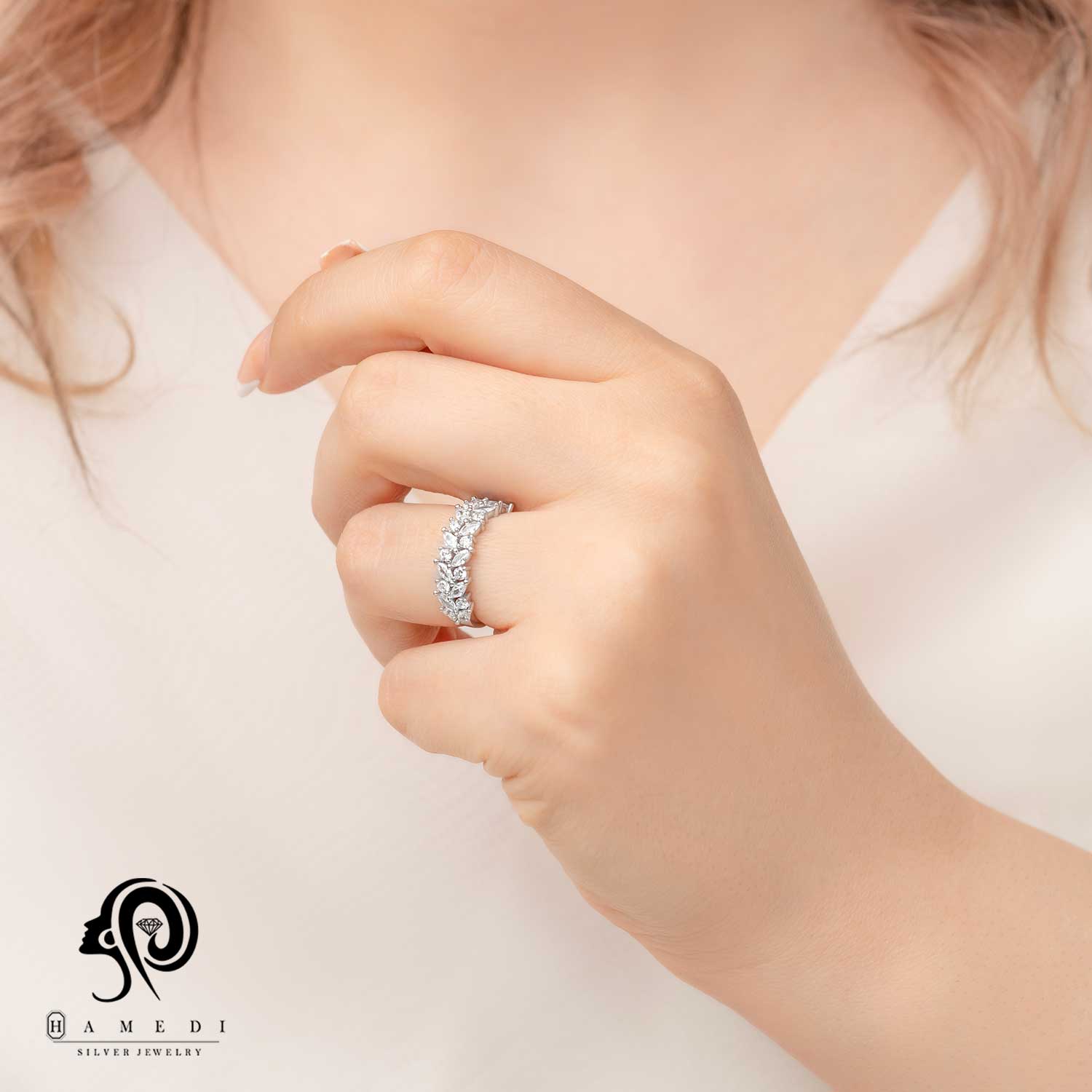انگشتر نقره زنانه مجلسی جواهری مدل RI K47 یکی از لوکسترین و پرطرفدارترین انگشتر های مجلسی گالری حامدی است.
