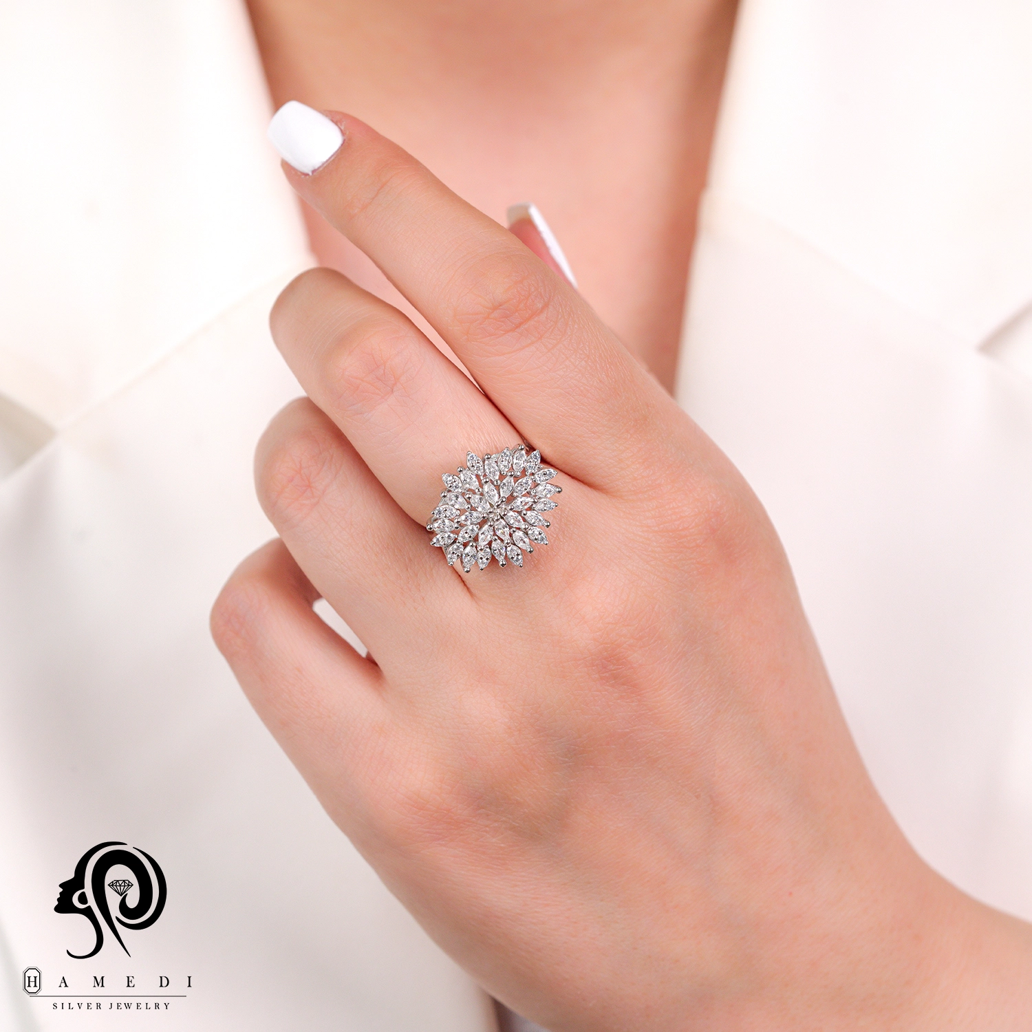 انگشتر نقره زنانه مجلسی جواهری مدل RI K75 یک اکسسوری زیبا و شیک است که در انواع طرح های مختلف تولید و عرضه می شود. این محصول دارای طرحی منحصر به فرد و خاصی می باشند تا مشتریان بتوانند به راحتی طرح مورد نظر خود را خریداری نمایند.