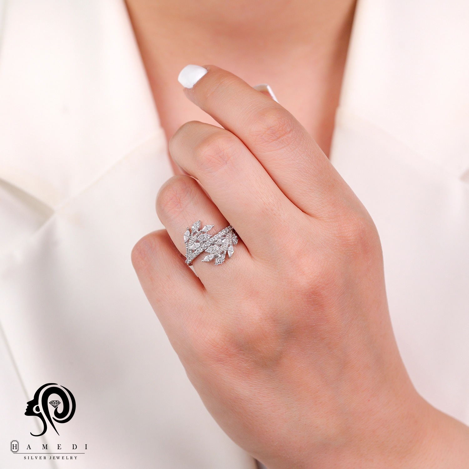 انگشتر نقره زنانه مجلسی جواهری مدل RI K76 یک اکسسوری زیبا و شیک است که در انواع طرح های مختلف تولید و عرضه می شود. این محصول دارای طرحی منحصر به فرد و خاصی می باشند تا مشتریان بتوانند به راحتی طرح مورد نظر خود را خریداری نمایند.