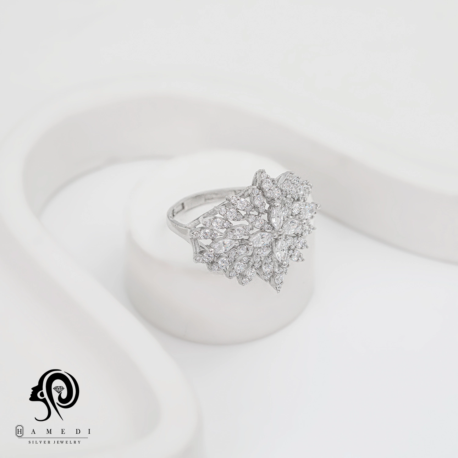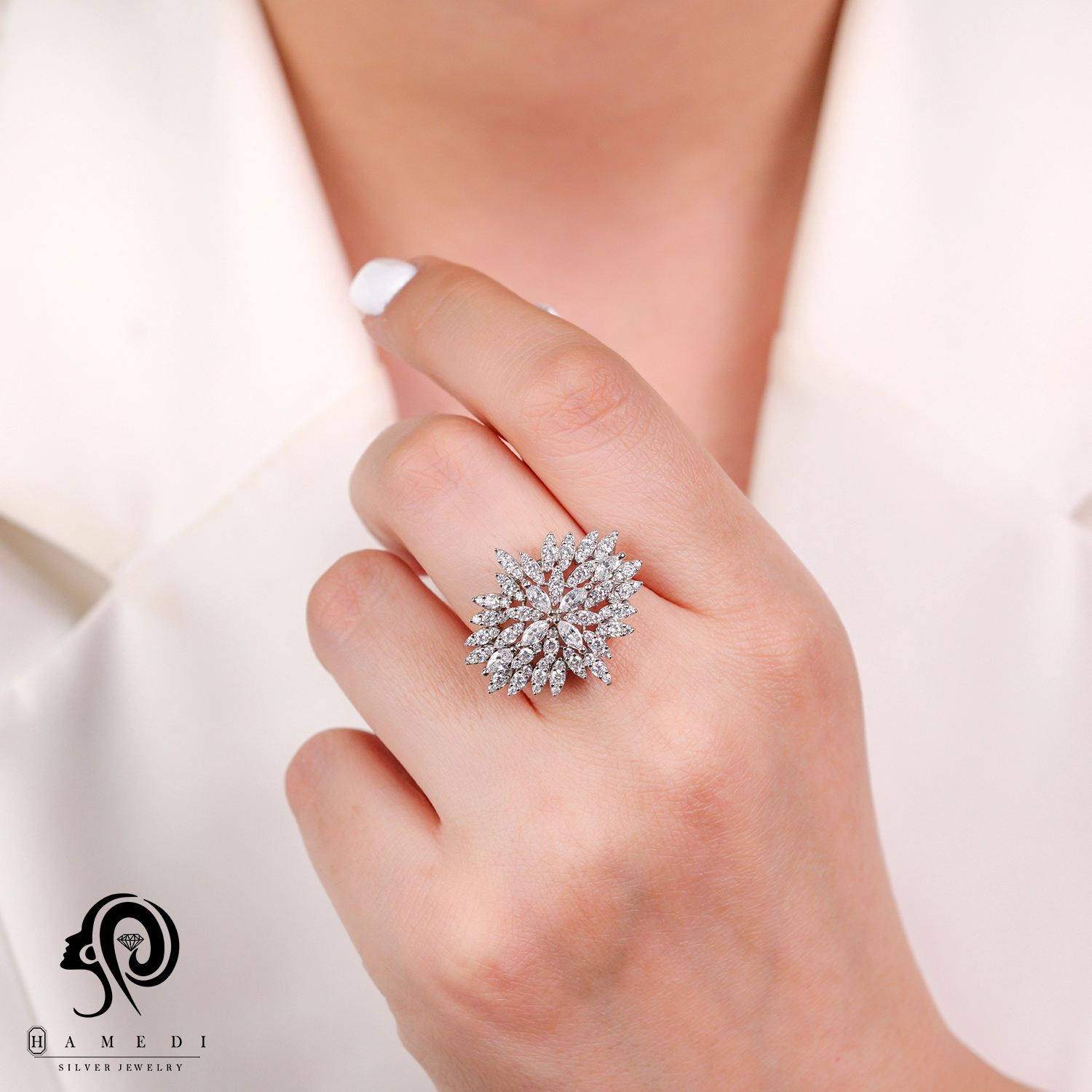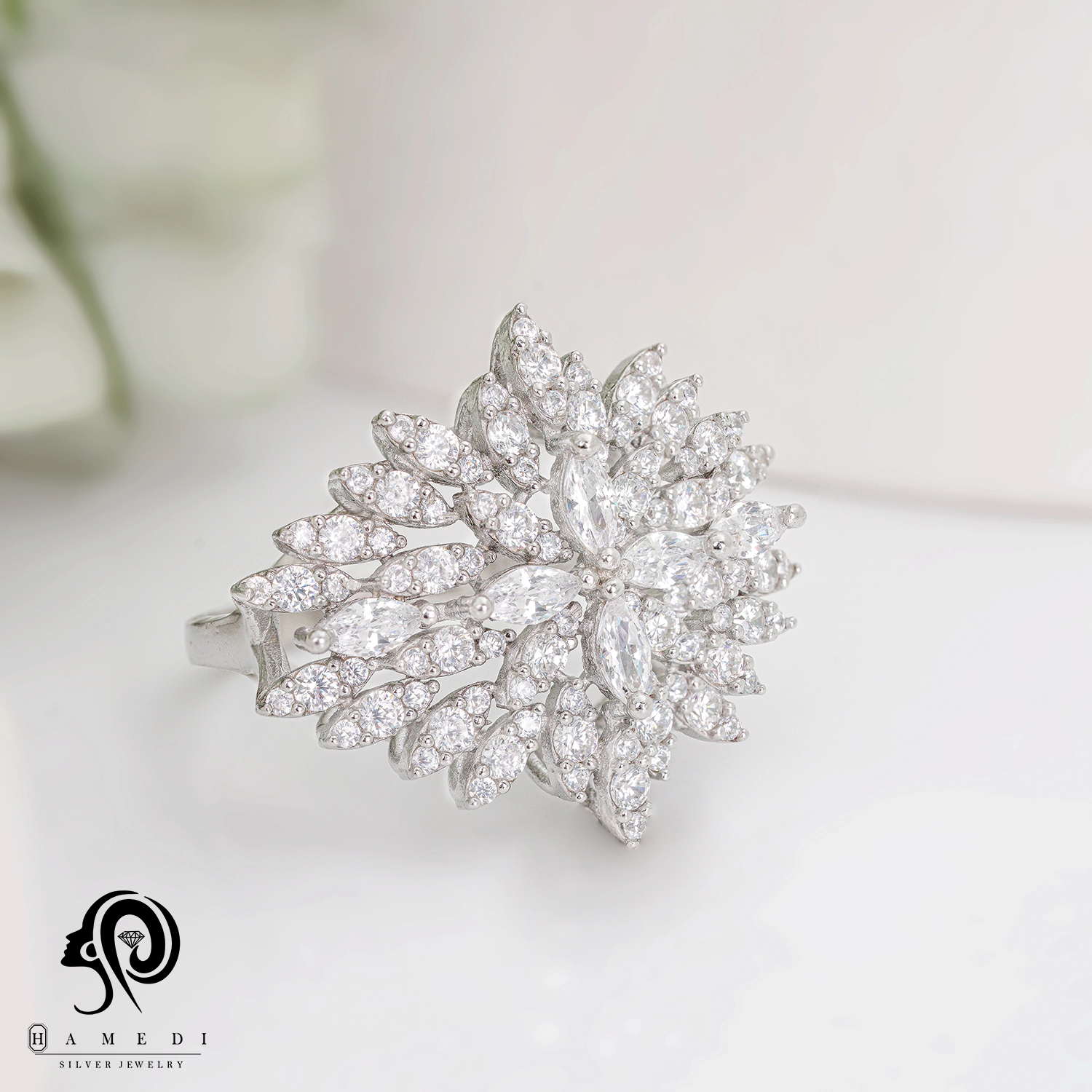 انگشتر نقره زنانه مجلسی جواهری مدل RI K77 یک اکسسوری زیبا و شیک است که در انواع طرح های مختلف تولید و عرضه می شود. این محصول دارای طرحی منحصر به فرد و خاصی می باشند تا مشتریان بتوانند به راحتی طرح مورد نظر خود را خریداری نمایند.