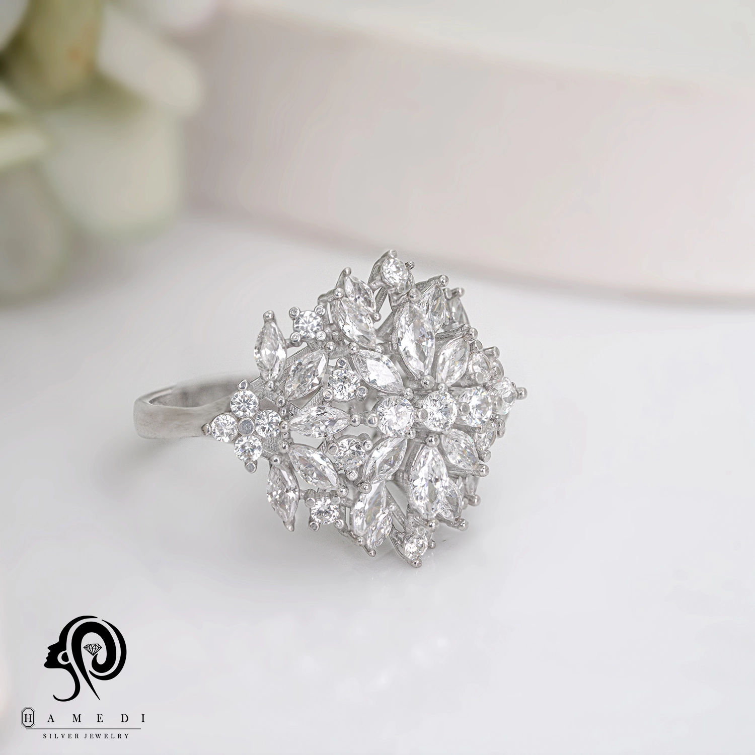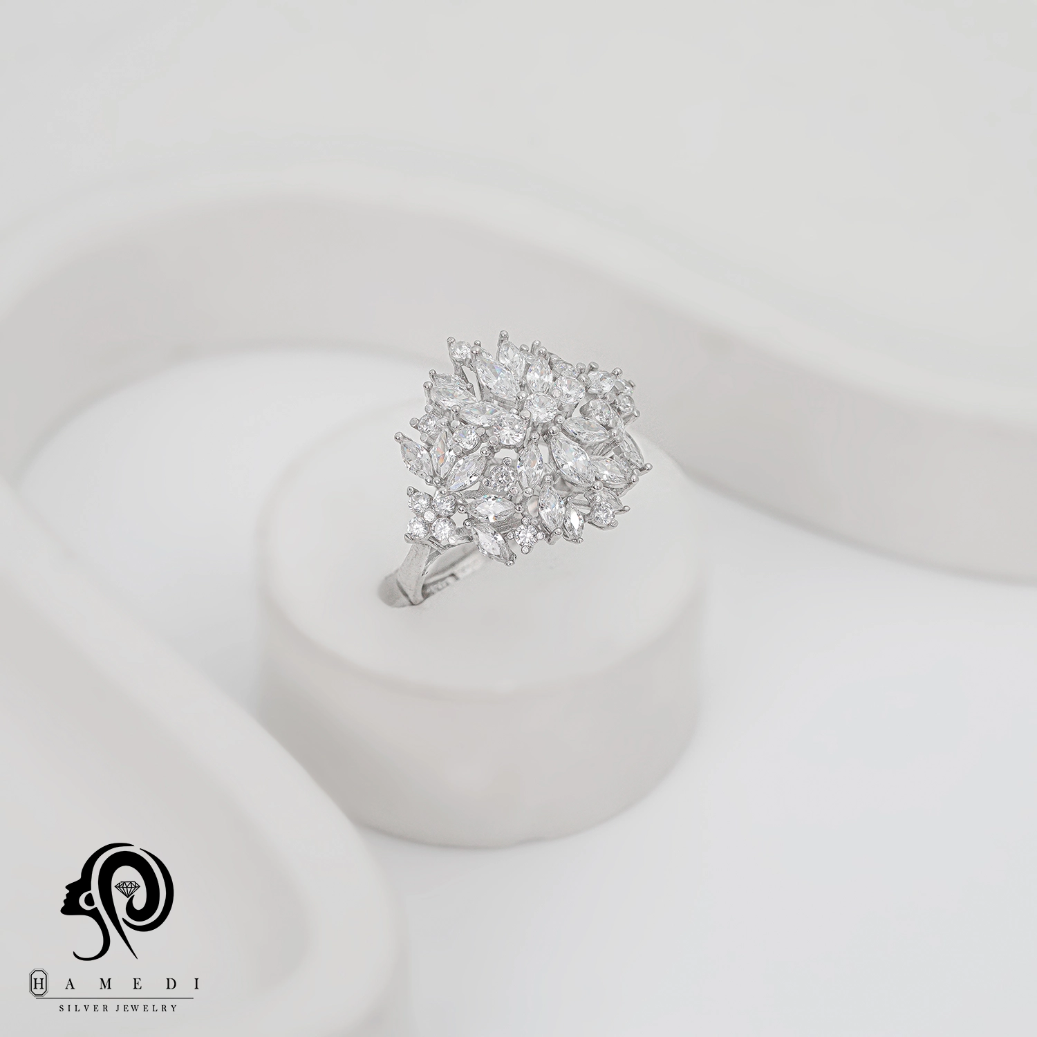 انگشتر نقره زنانه مجلسی جواهری مدل RI K80 یک اکسسوری زیبا و شیک است که در انواع طرح های مختلف تولید و عرضه می شود. این محصول دارای طرحی منحصر به فرد و خاصی می باشند تا مشتریان بتوانند به راحتی طرح مورد نظر خود را خریداری نمایند.