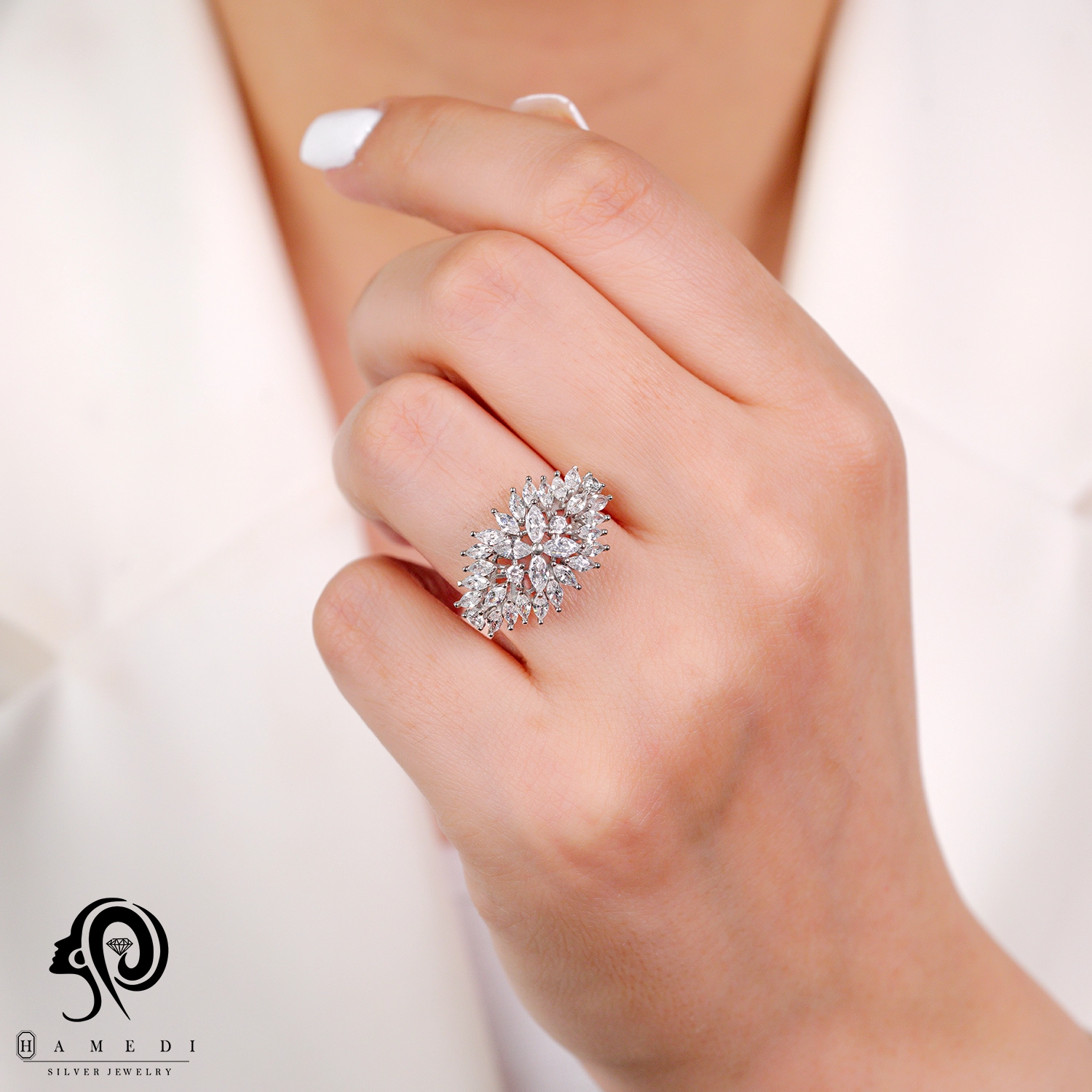 انگشتر نقره زنانه مجلسی جواهری مدل RI K81 یک اکسسوری زیبا و شیک است که در انواع طرح های مختلف تولید و عرضه می شود. این محصول دارای طرحی منحصر به فرد و خاصی می باشند تا مشتریان بتوانند به راحتی طرح مورد نظر خود را خریداری نمایند.