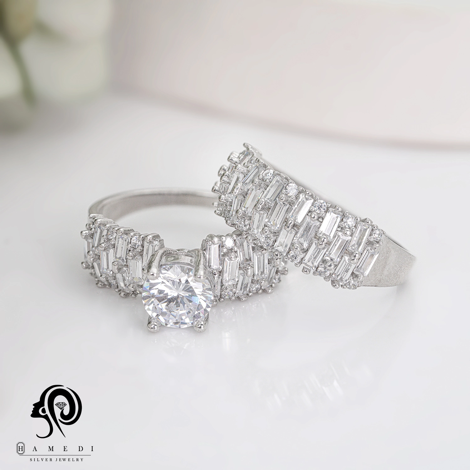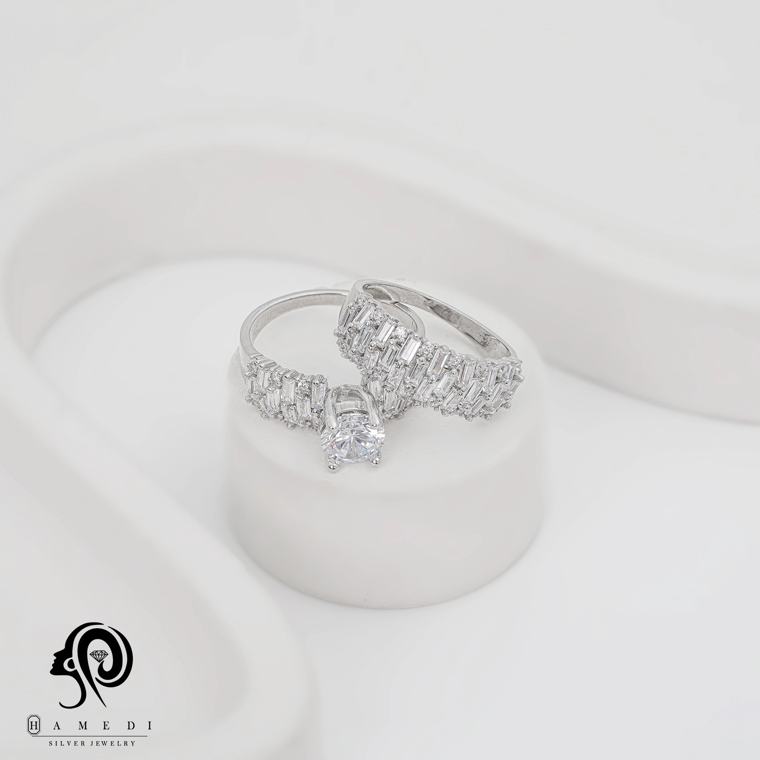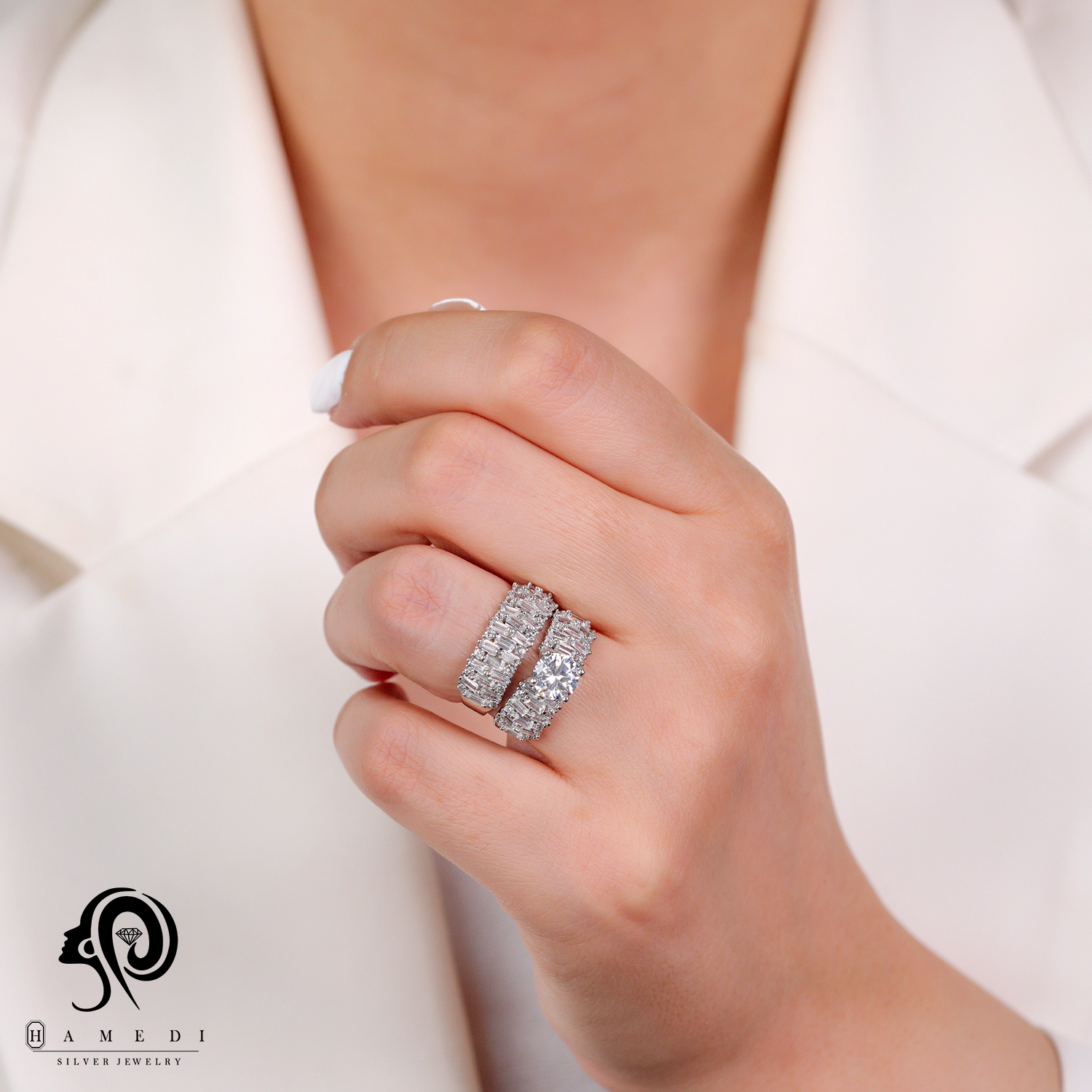 انگشتر نقره زنانه حلقه پشت حلقه مدل RI R184 یکی از لوکس و زیباترین انگشترهای مجلسی گالری حامدی است.