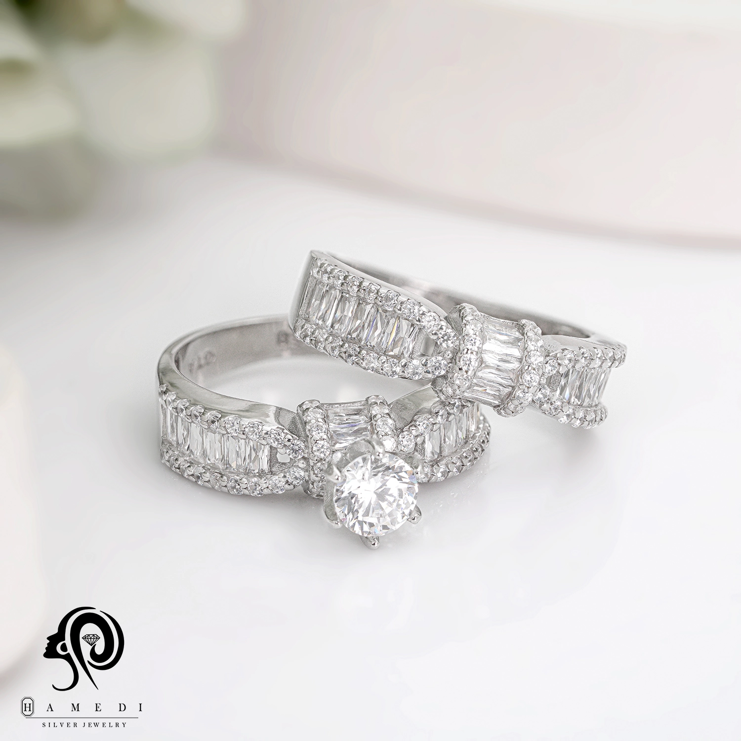 انگشتر نقره زنانه حلقه پشت حلقه مدل RI R208 یکی از لوکس و زیباترین انگشترهای مجلسی گالری حامدی است.