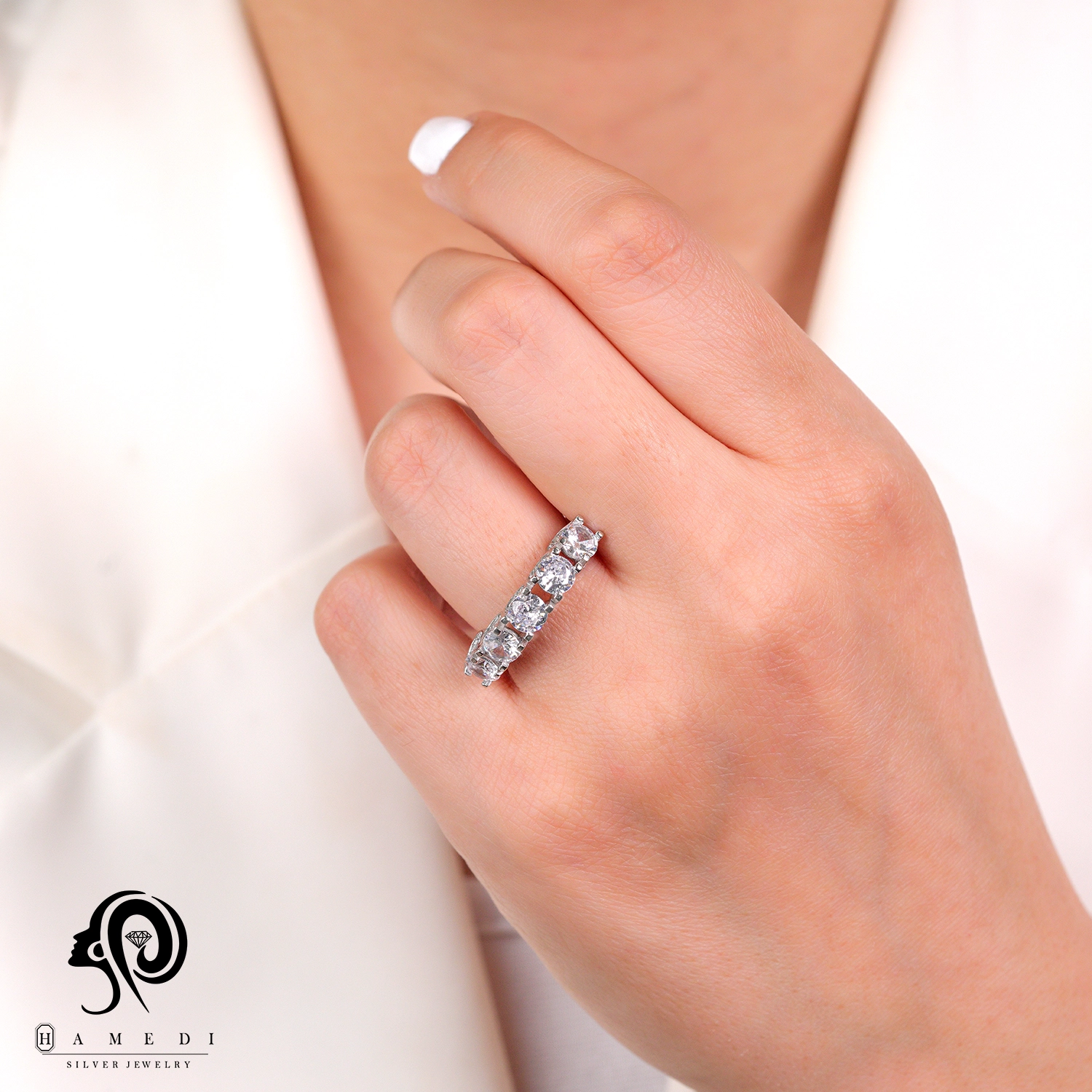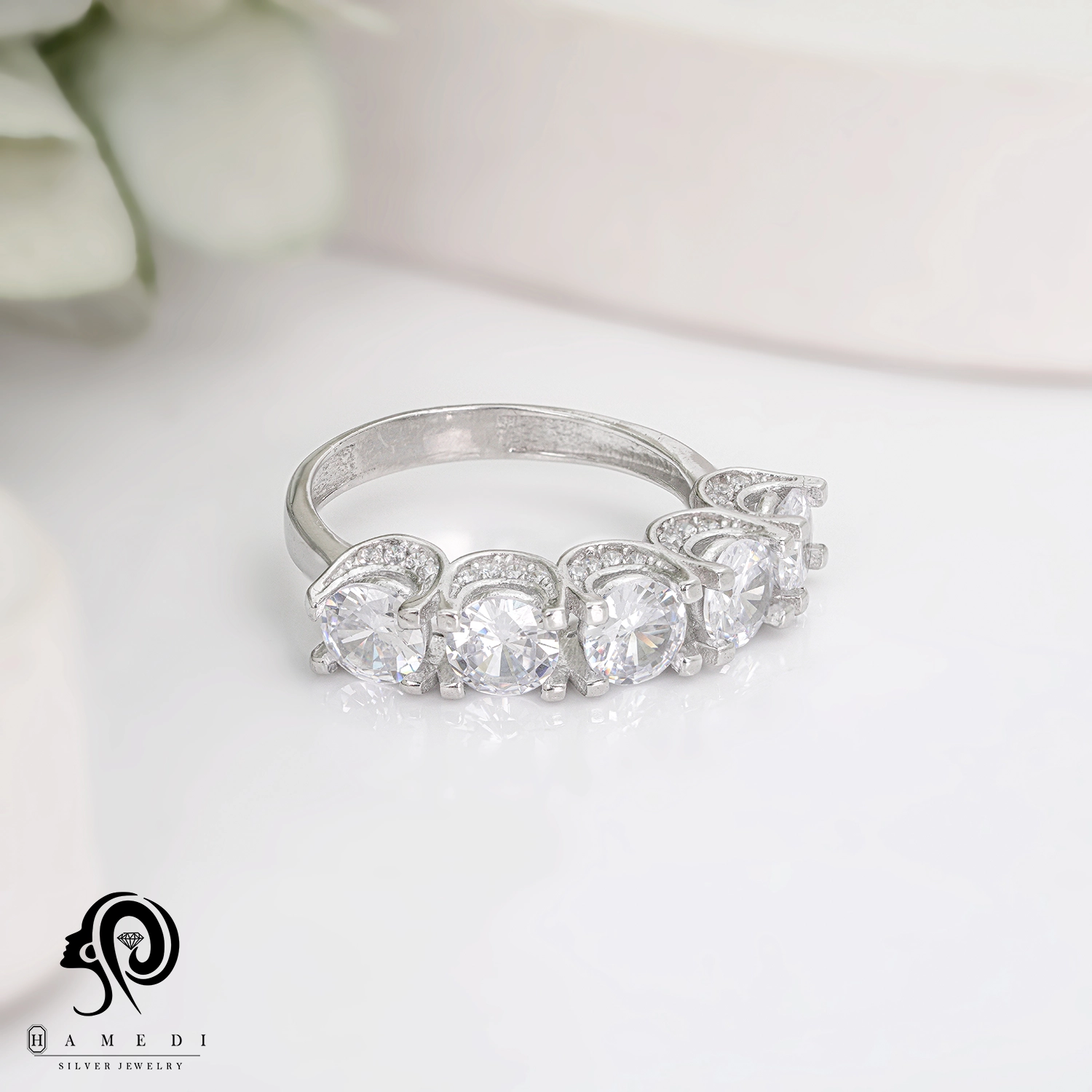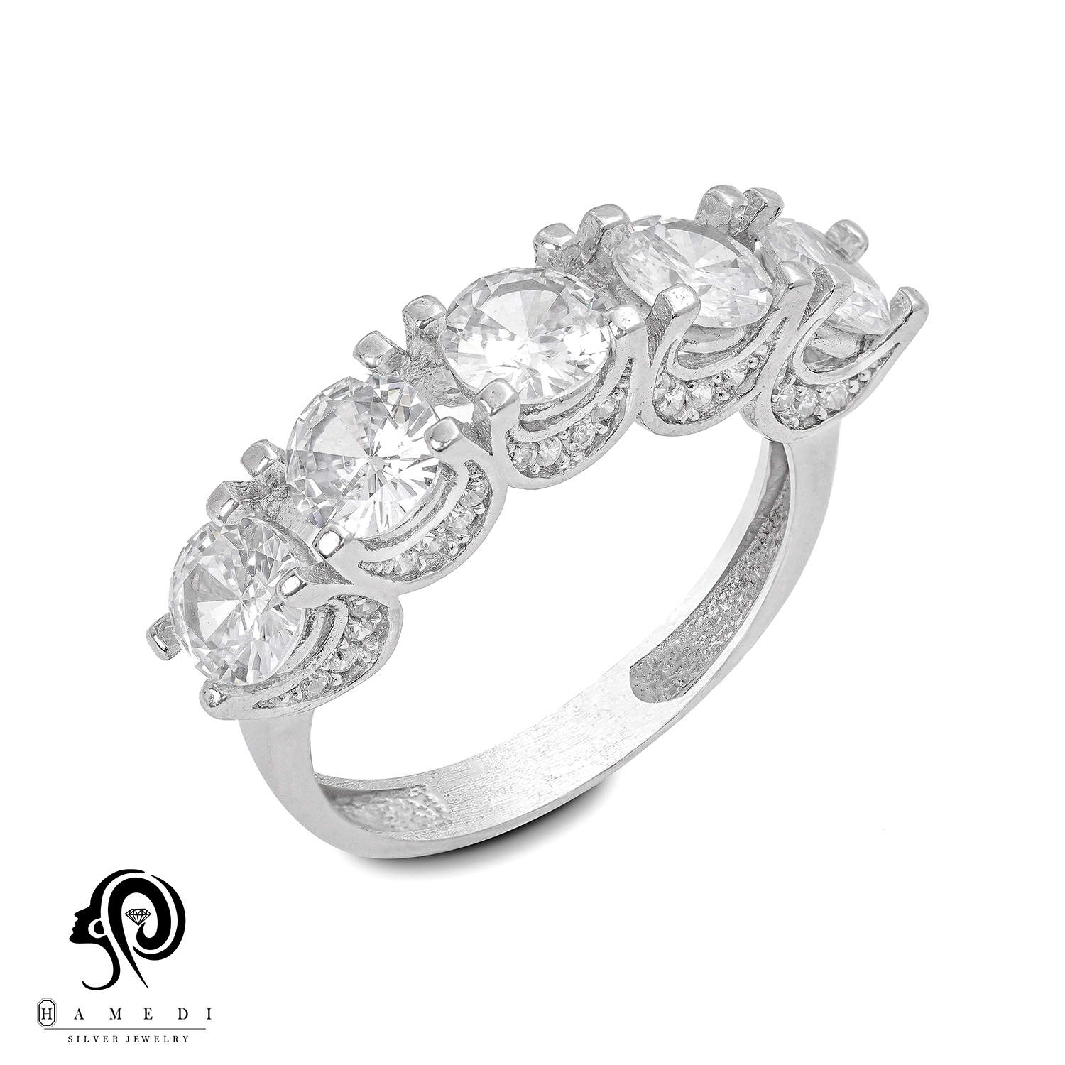 انگشتر نقره زنانه پنج تخمه مدل RI R210 یک اکسسوری زیبا و شیک است که در انواع طرح های مختلف تولید و عرضه می شود. این محصول دارای طرحی منحصر به فرد و خاصی می باشند تا مشتریان بتوانند به راحتی طرح مورد نظر خود را خریداری نمایند.