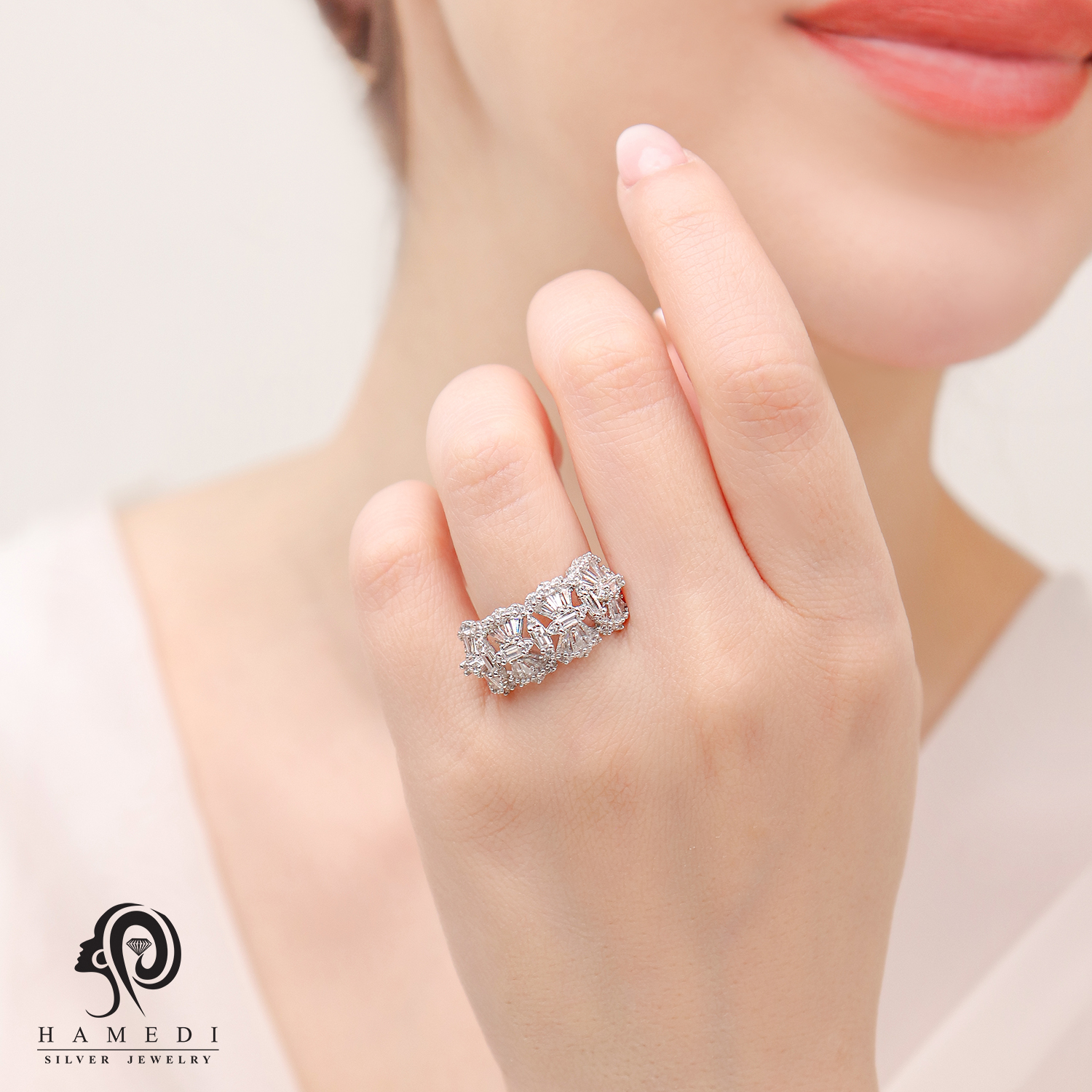 انگشتر نقره زنانه جواهری مجلسی مدل RI S11 یکی از لوکس و زیباترین انگشترهای مجلسی گالری حامدی است.